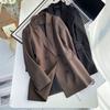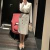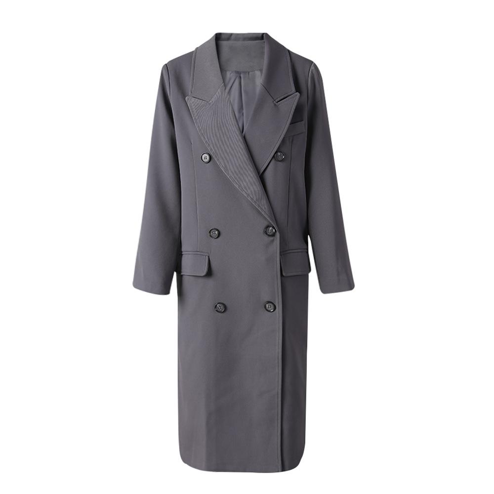 Abrigo de Traje Elegante para Viajero de Estilo Coreano por Encima de la Rodilla con Doble Botonadura para Mujer, Abrigo Largo Holgado Adelgazante de Otoño Nuevo de Trabajo Pesado