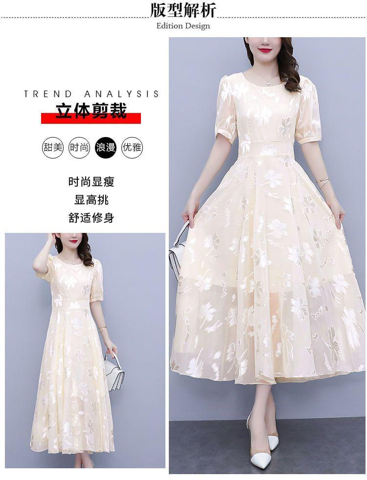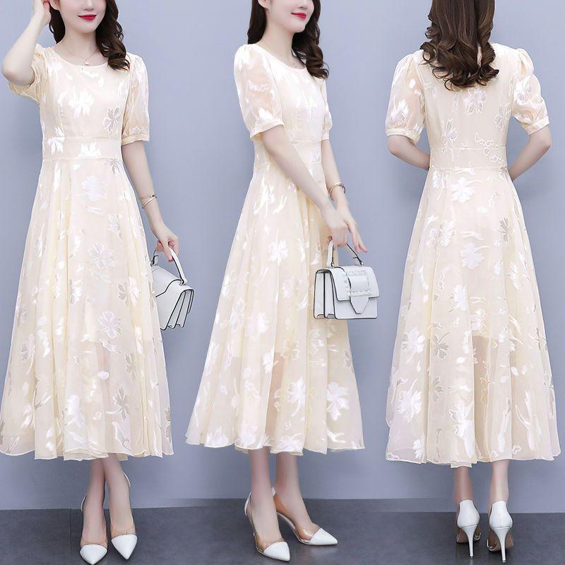 Vestido de Gasa de Verano Vestido de Verano para Mujer 2025 Nuevo Primavera y Verano Entallado Elegante Falda Larga a la Moda y Versátil