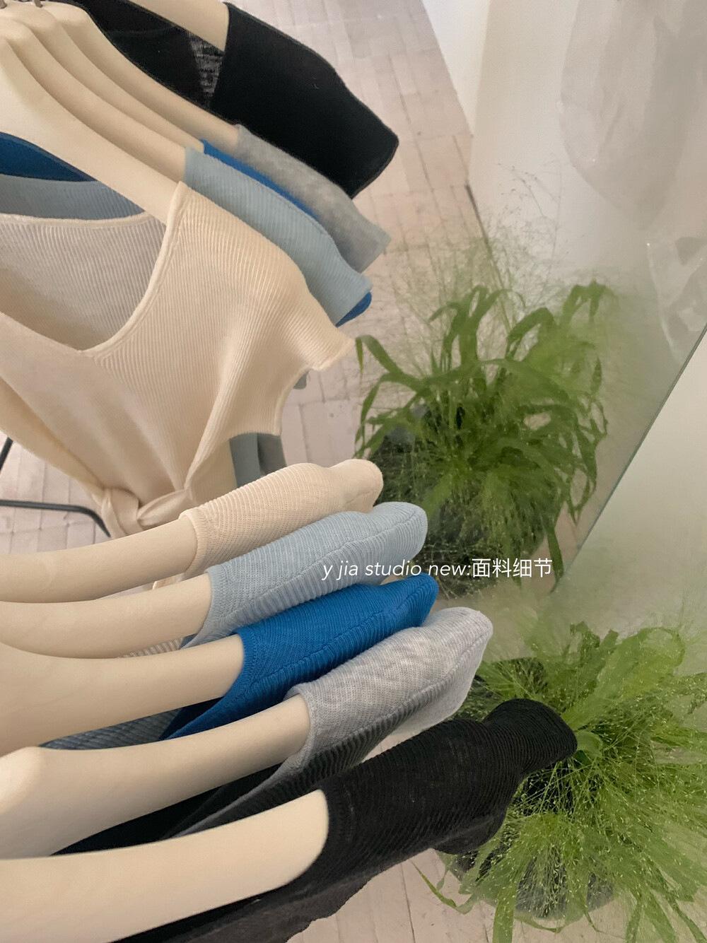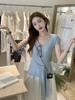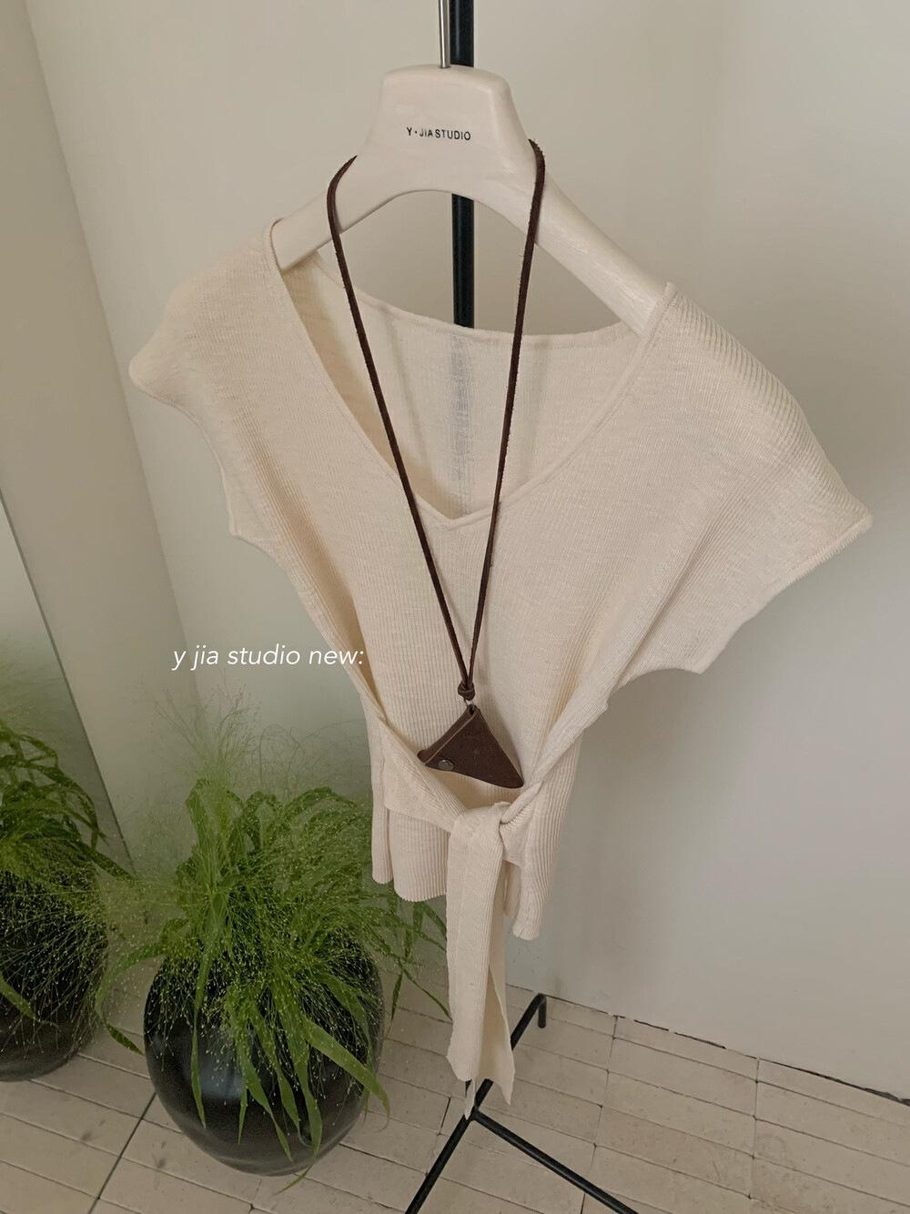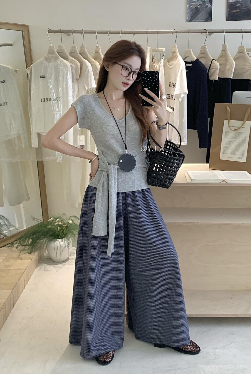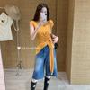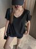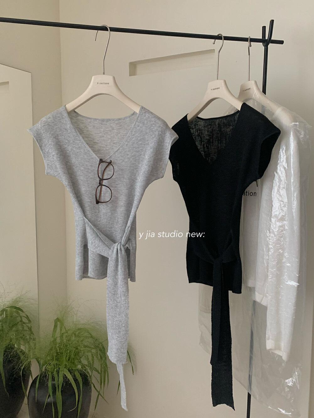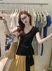 Gran Venta No Retornable Verano de Alta Gama Simple Cuello en V Tirantes Cintura Adelgazante Look Tejido de Punto Camiseta de Manga Corta para Mujer Top 210