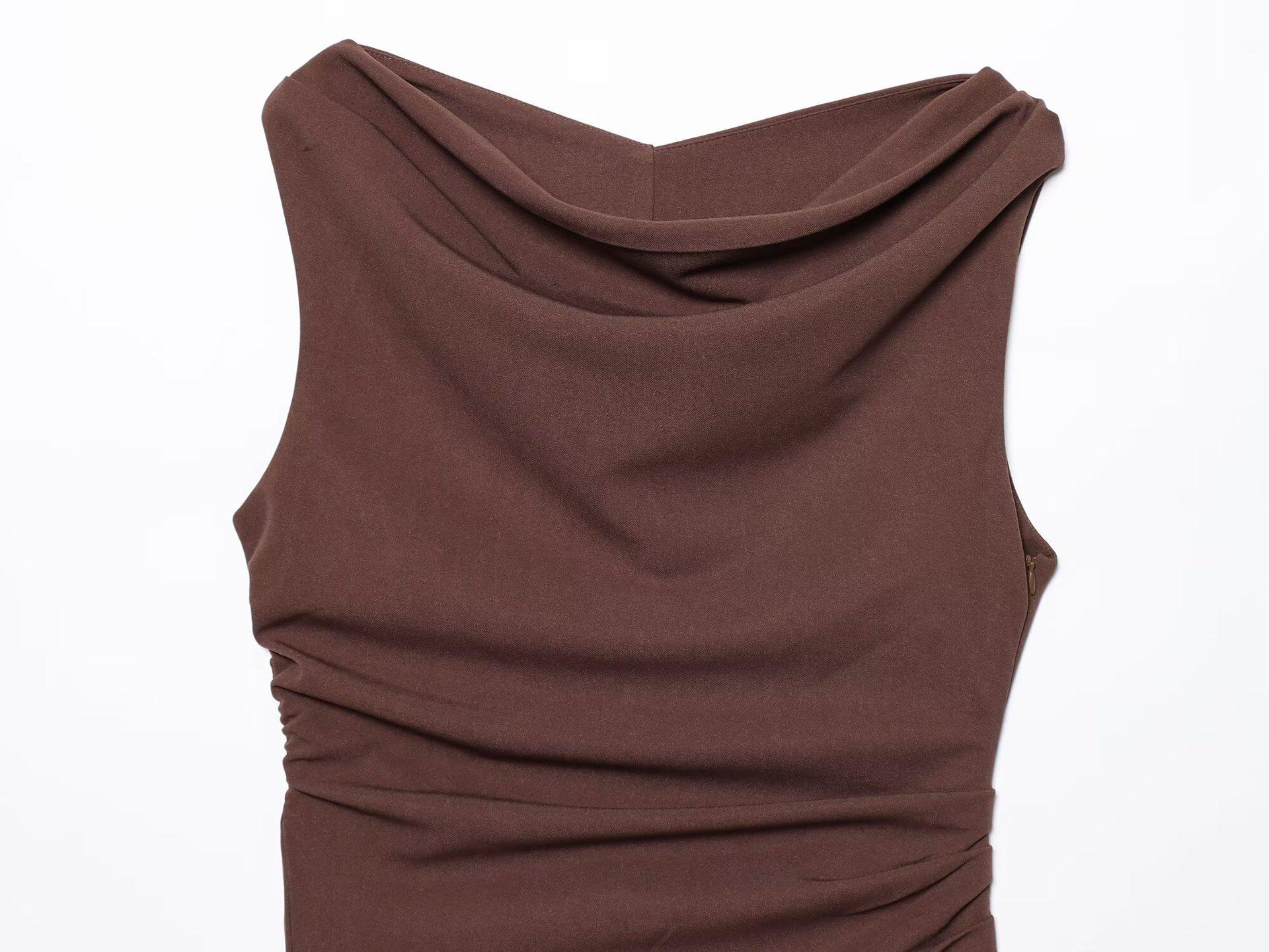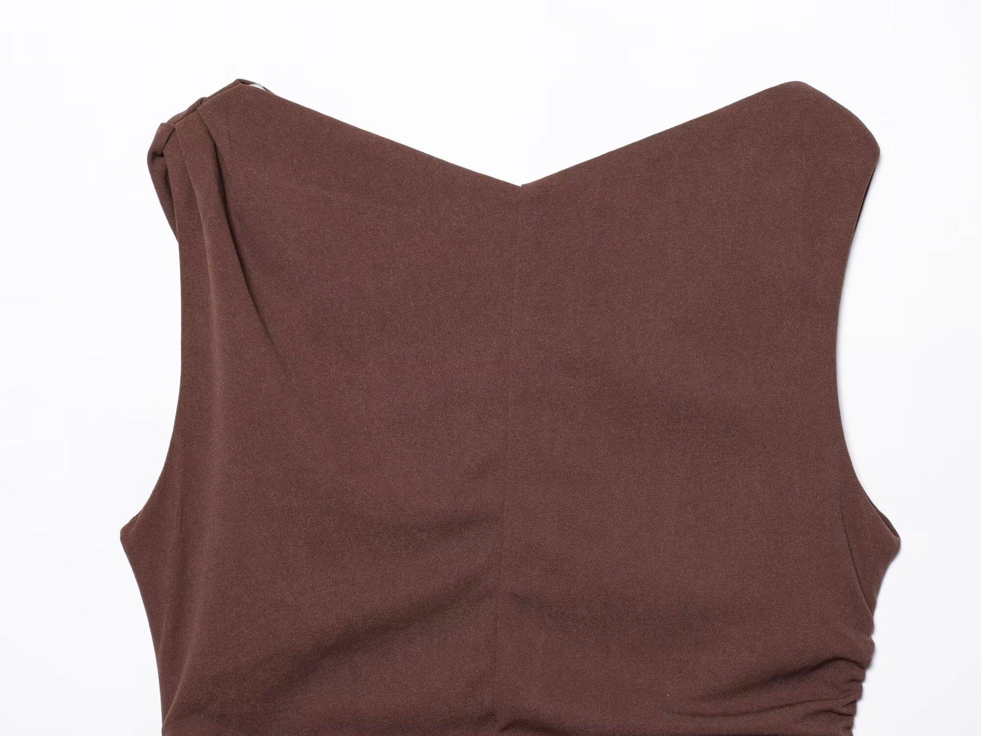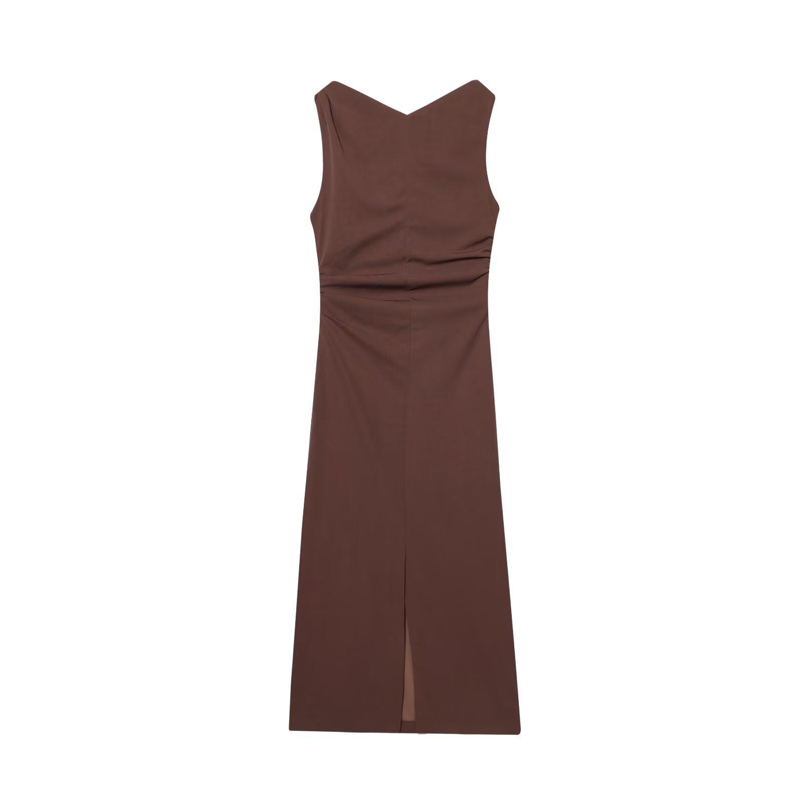 Vestido plisado sin mangas, de color puro, sencillo y ajustado, de moda europea y americana, para mujer, verano 2025