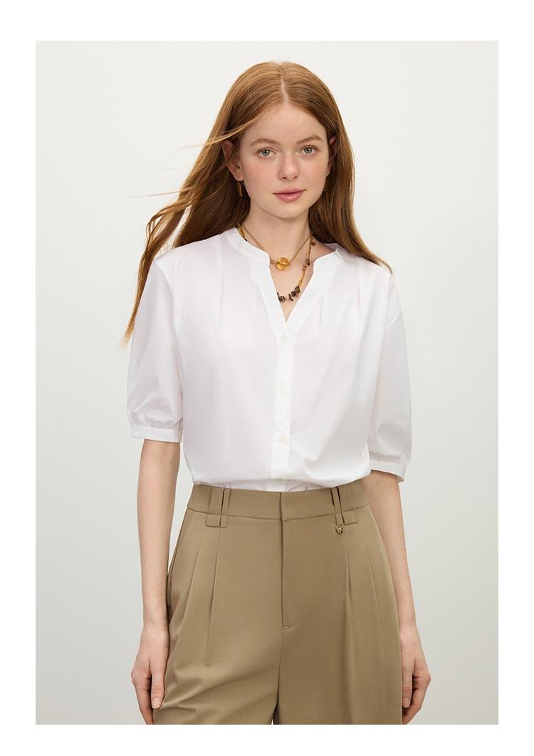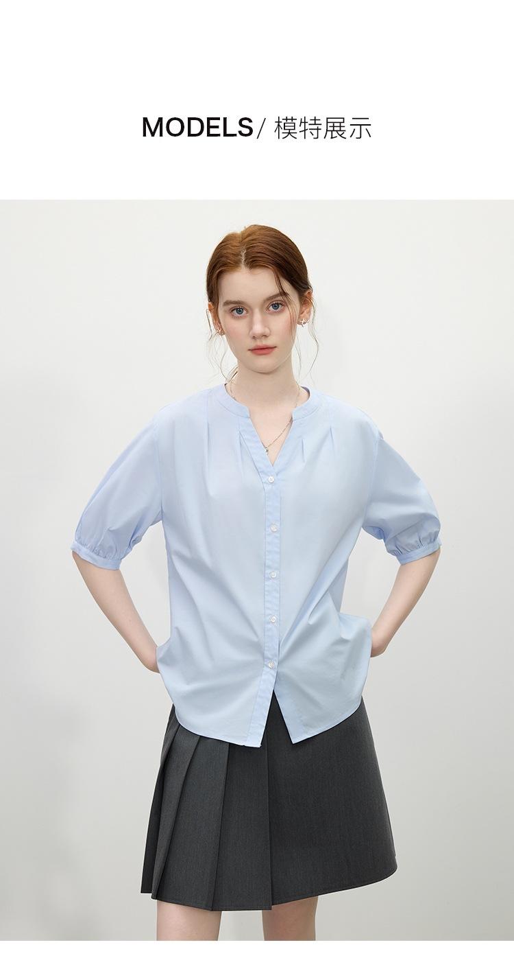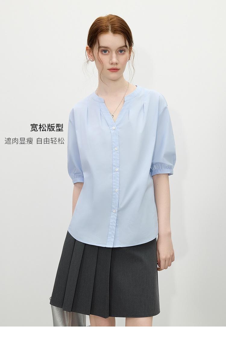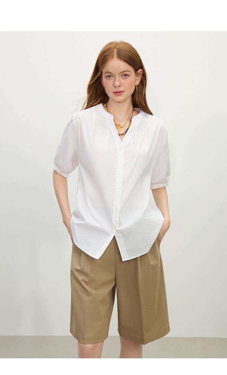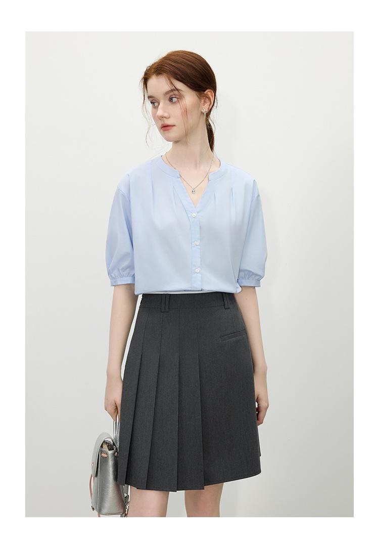 Elegante Ropa de Trabajo con Cuello en V Camisa Plisada de Cuello Redondo para Mujer Verano 2025 Nuevo Top de Aspecto Holgado y Adelgazante