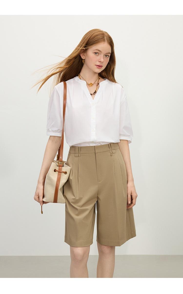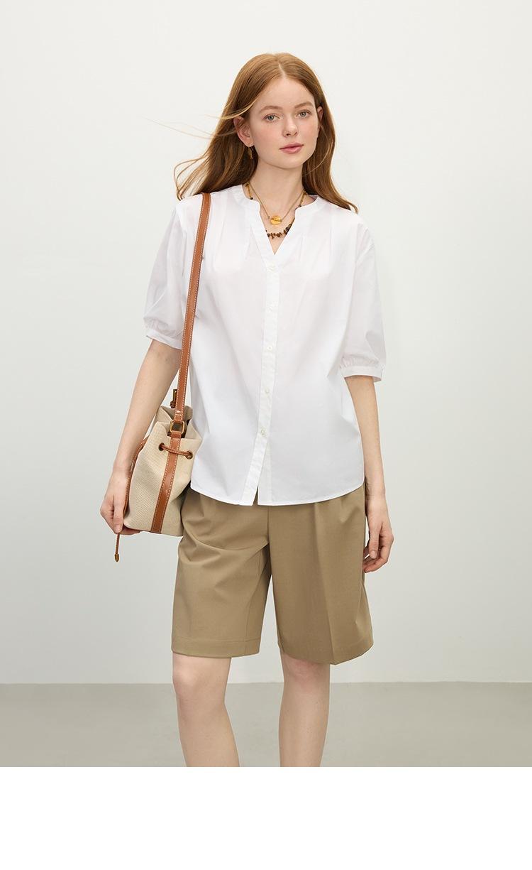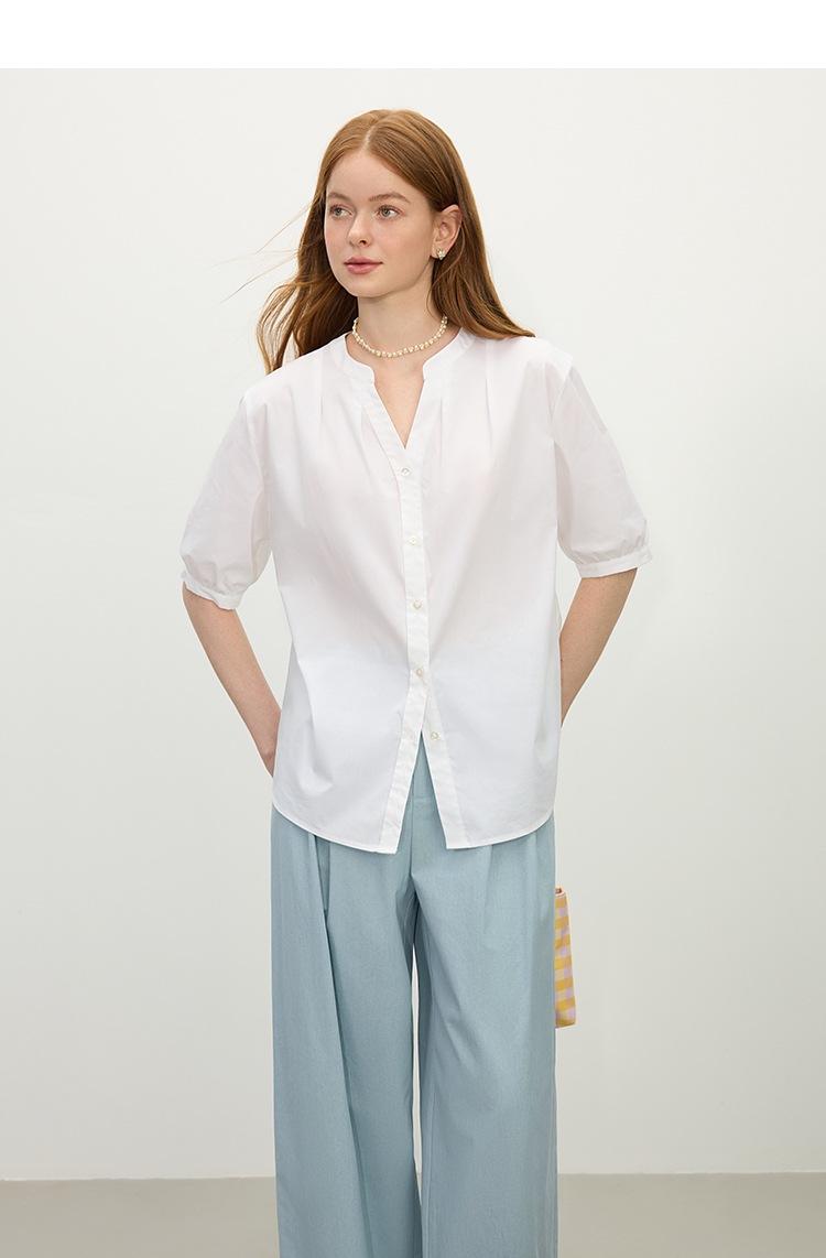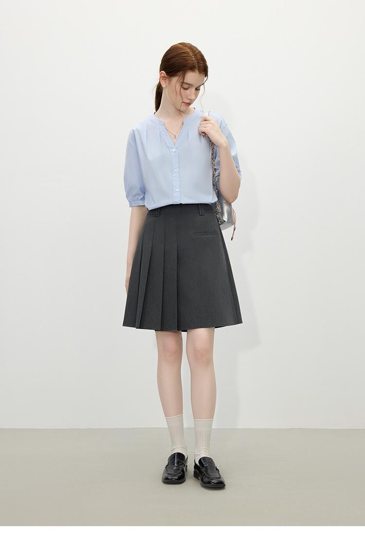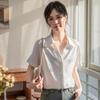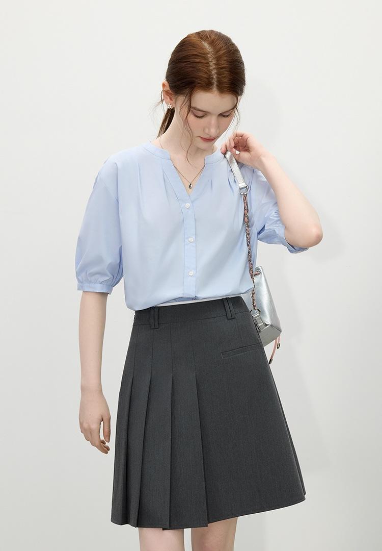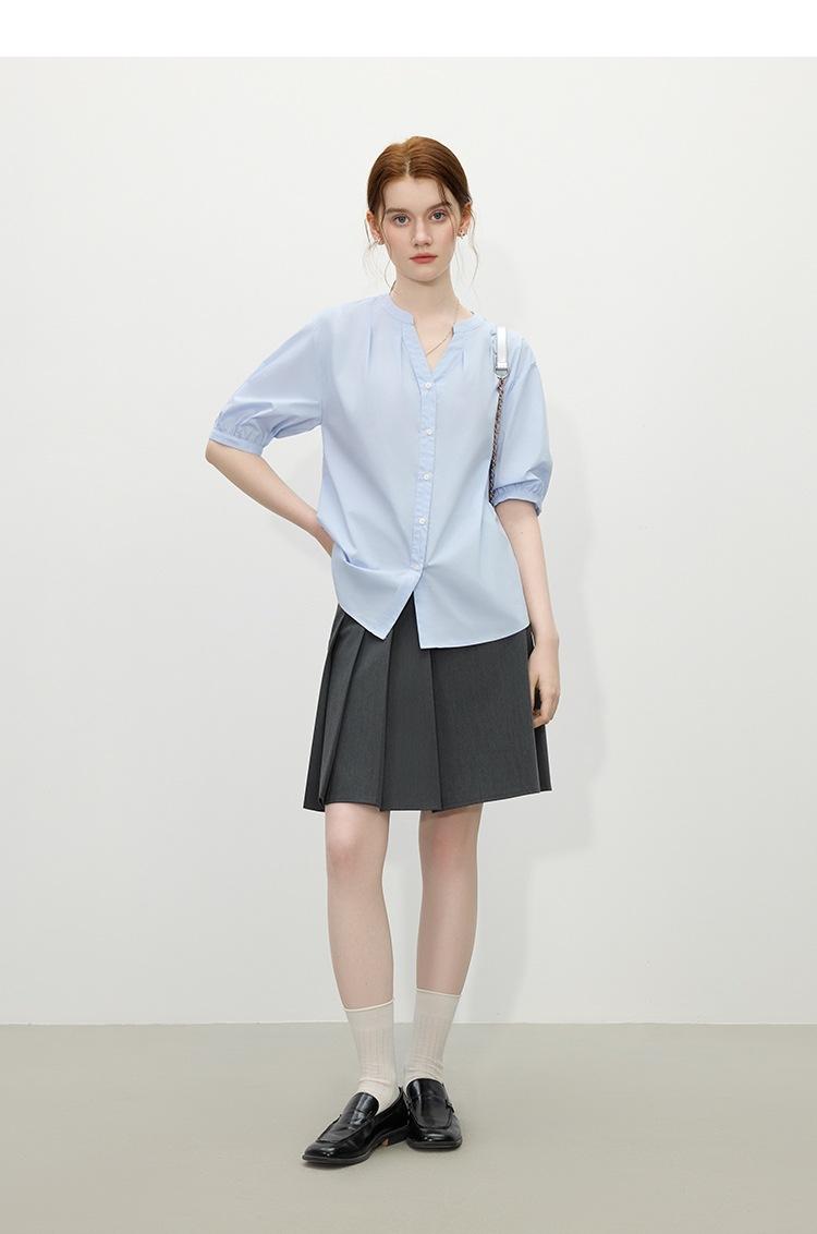 Elegante Ropa de Trabajo con Cuello en V Camisa Plisada de Cuello Redondo para Mujer Verano 2025 Nuevo Top de Aspecto Holgado y Adelgazante