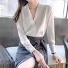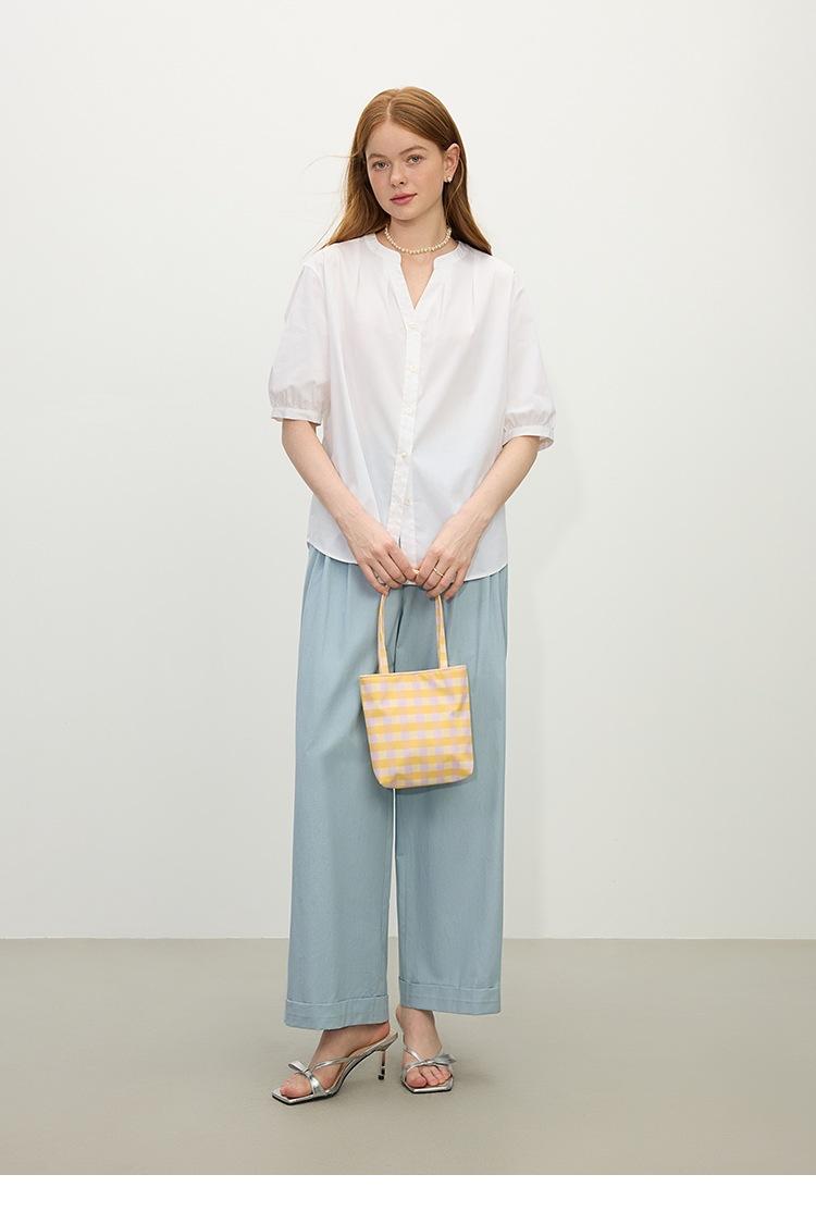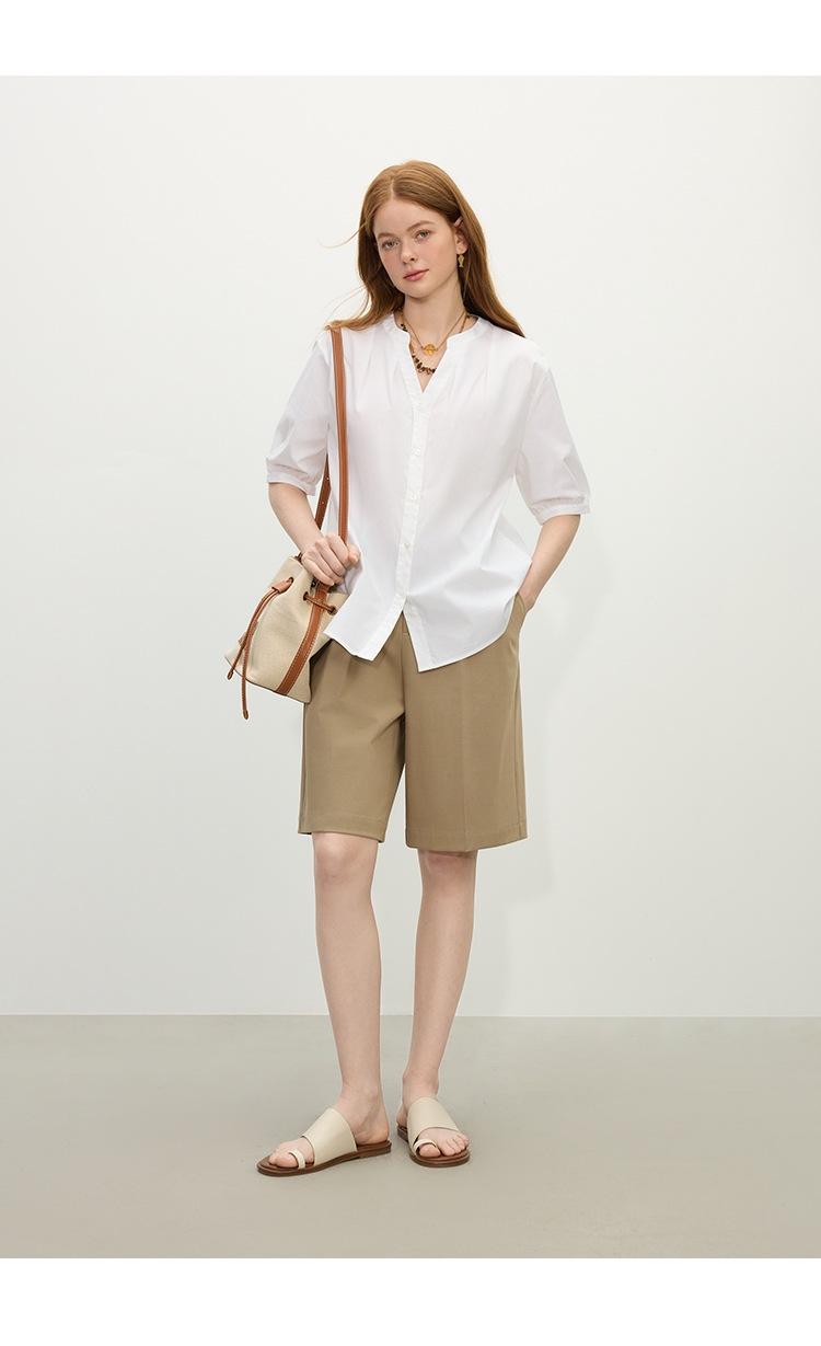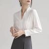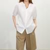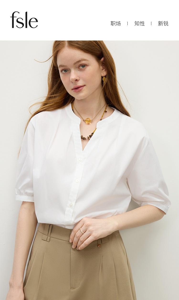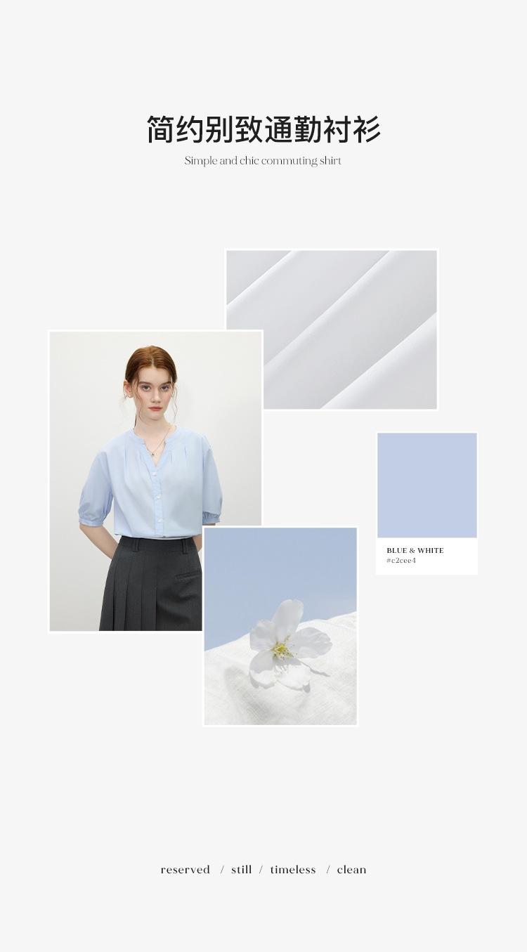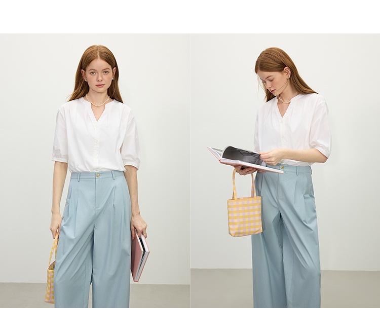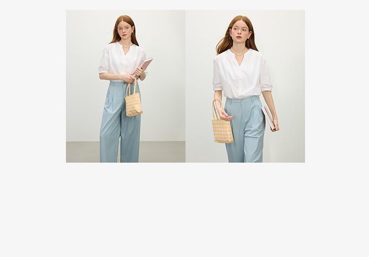 Elegante Ropa de Trabajo con Cuello en V Camisa Plisada de Cuello Redondo para Mujer Verano 2025 Nuevo Top de Aspecto Holgado y Adelgazante