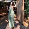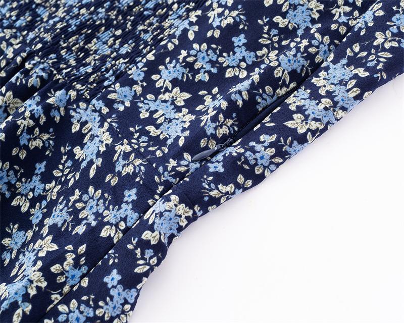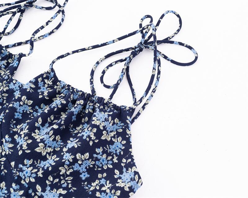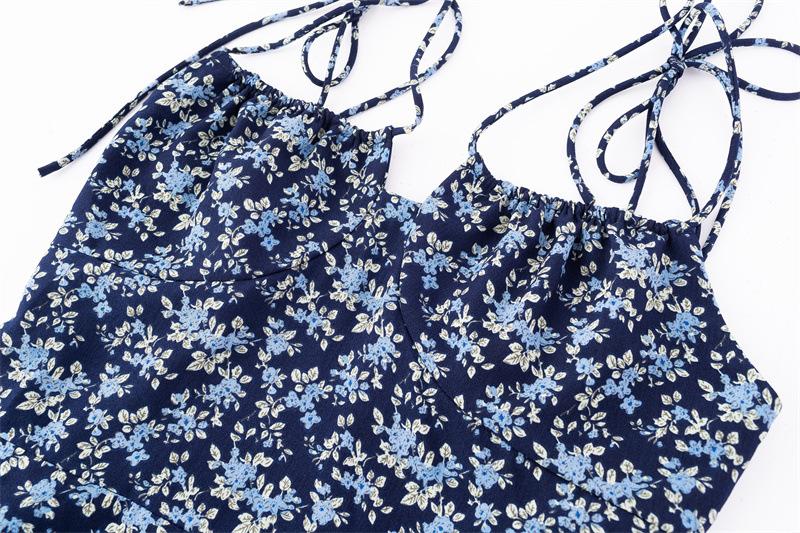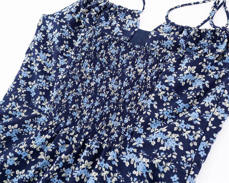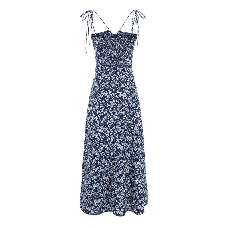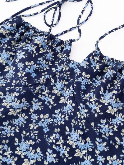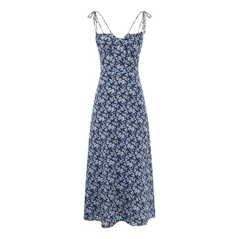 Diseño de Estilo Pastoral Francés Vestido Floral con Tirantes Verano Nuevo Adelgazante de Cintura Vacaciones Vestido Largo Falda con Tirantes