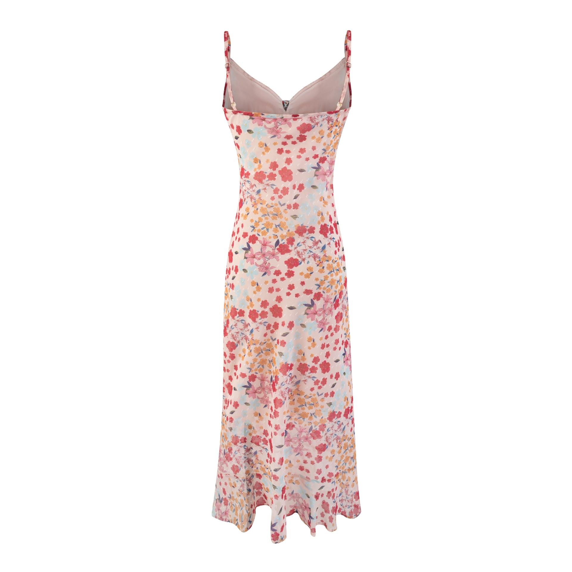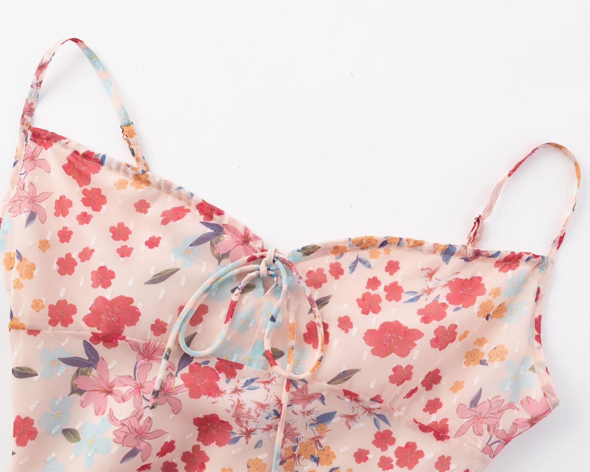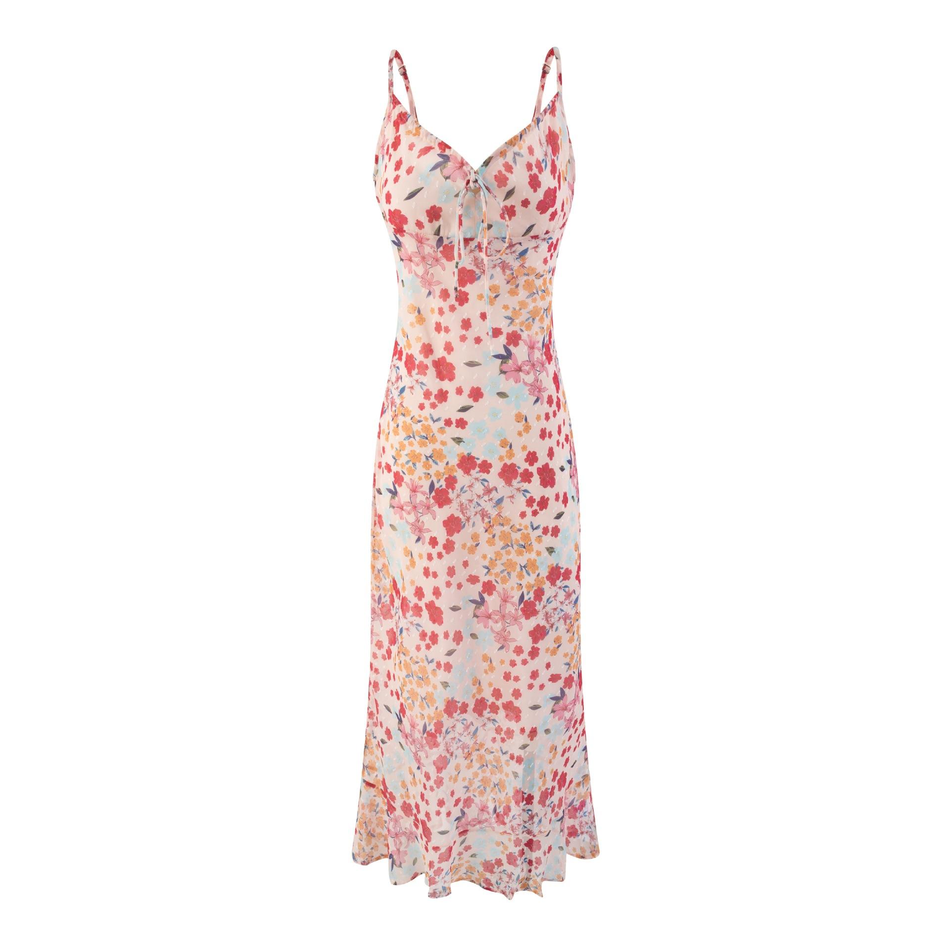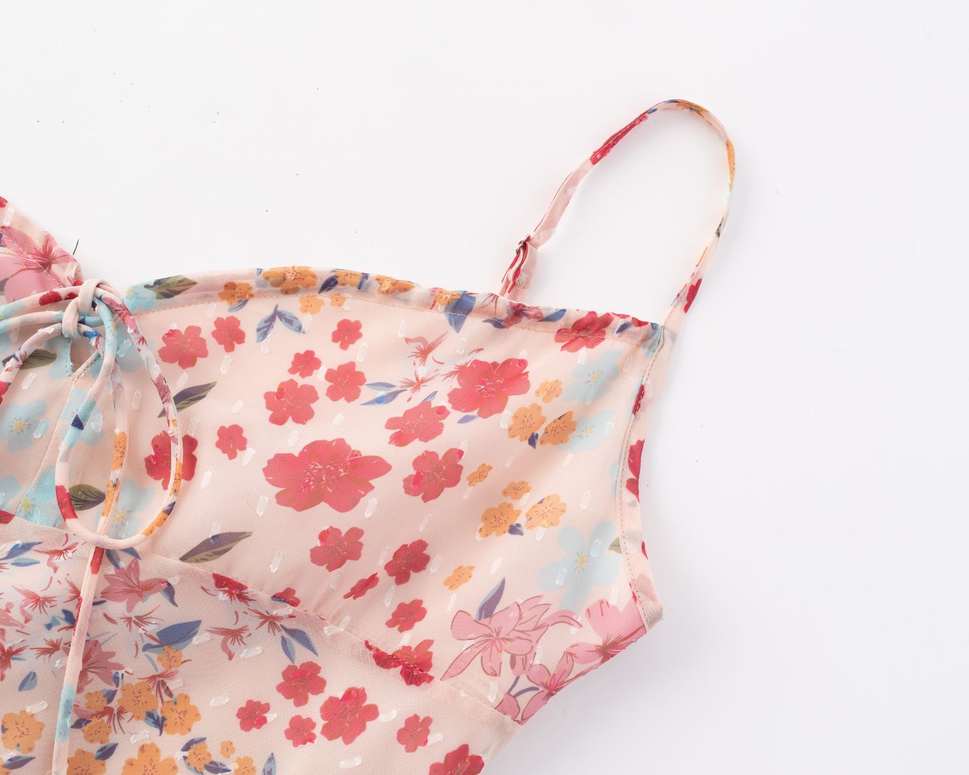 Compra Vacaciones Junto al Mar Cuello en V Cordón Encaje Falda de Tirantes Estampada Falda Cola de Pez Verano Cintura Adelgazante Elegante Vestido Largo al por mayor en Joom.pro