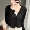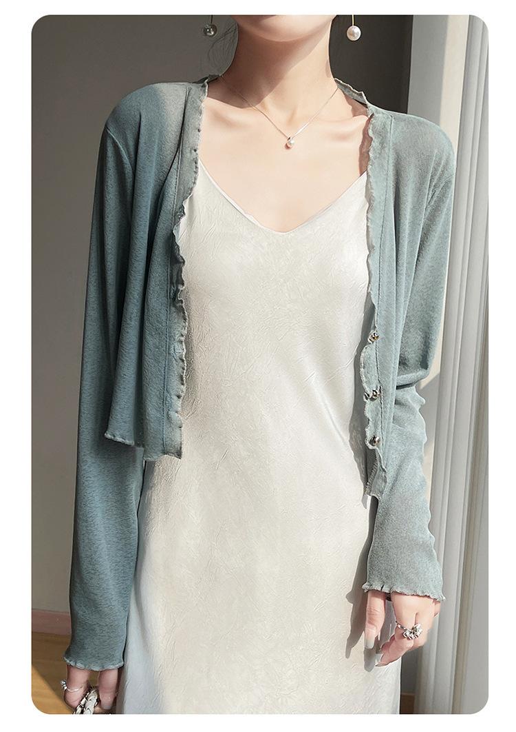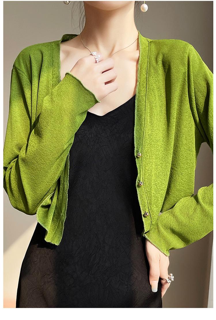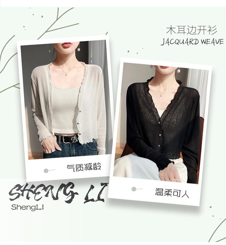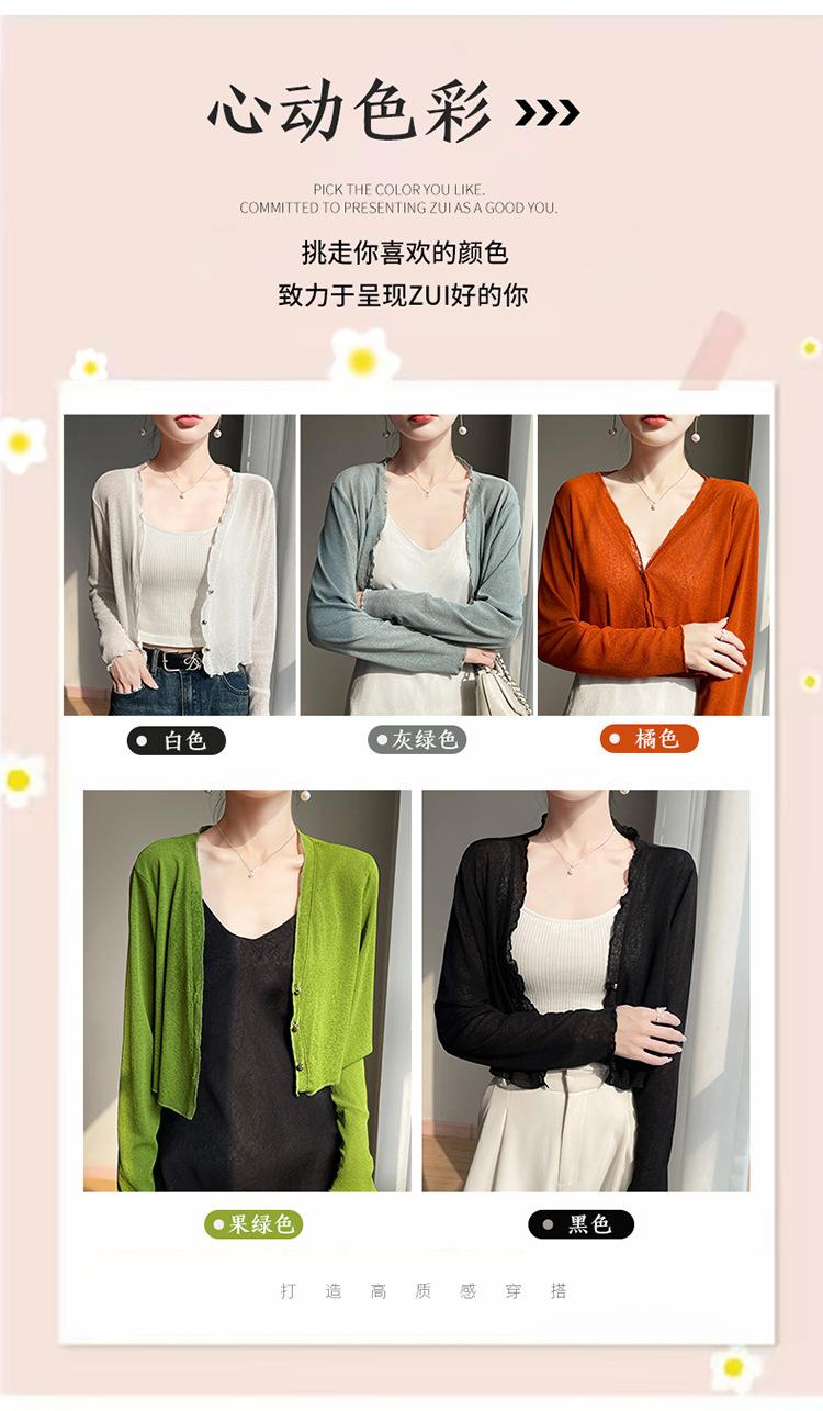 25 Verano Nuevo Cárdigan de Malla con Cuello en V para Mujer Corto Color Sólido Diseño Delgado Blusa Ropa Protectora Solar