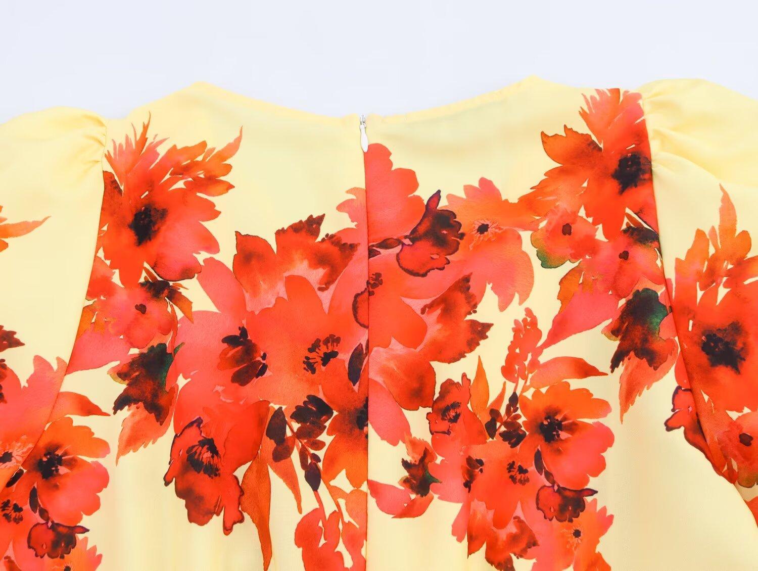 Ropa de Mujer Verano 2025 Nueva Moda Estilo Europeo y Americano Sencillo Cuello en V Estampado Posicionado Cintura Vestido Largo