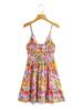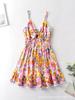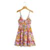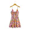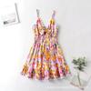 Vestido Vintage de Estilo Francés 2022 Verano Nuevo para Mujer Cuello en V Encaje Puntadas Nudo en el Pecho Estampado Cintura Alta Tirantes
