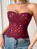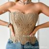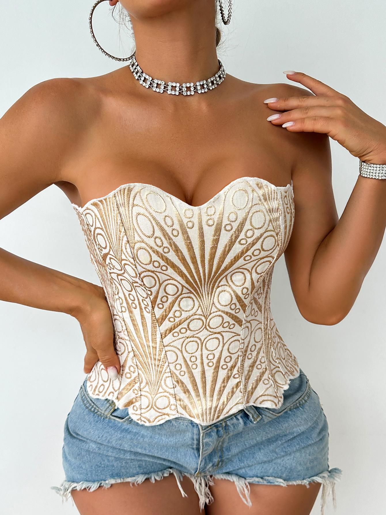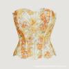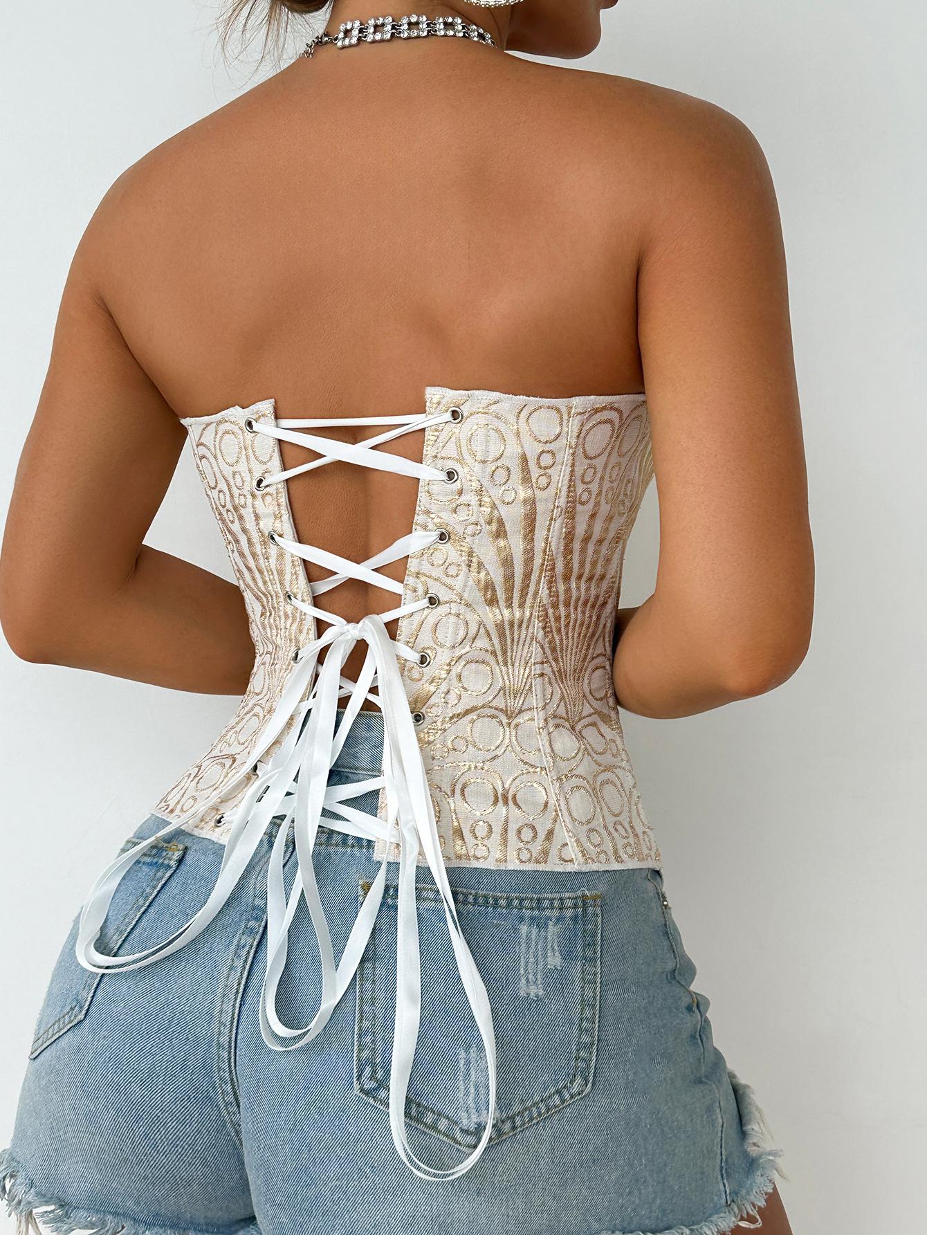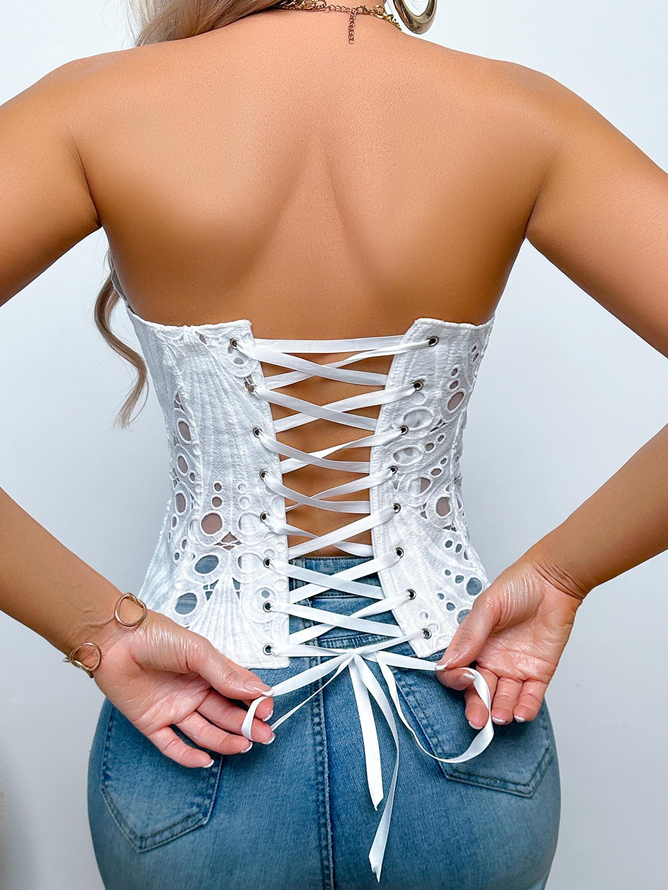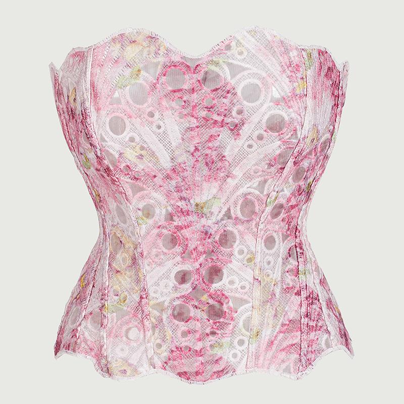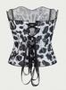 Corsé Palacio Europeo y Americano Malla Transpirable Sexy Moldeador de Cuerpo Top Recortado Asimétrico Encaje Doble Capa Corsé