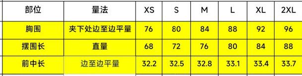XS, S, M, L, XL, XXL