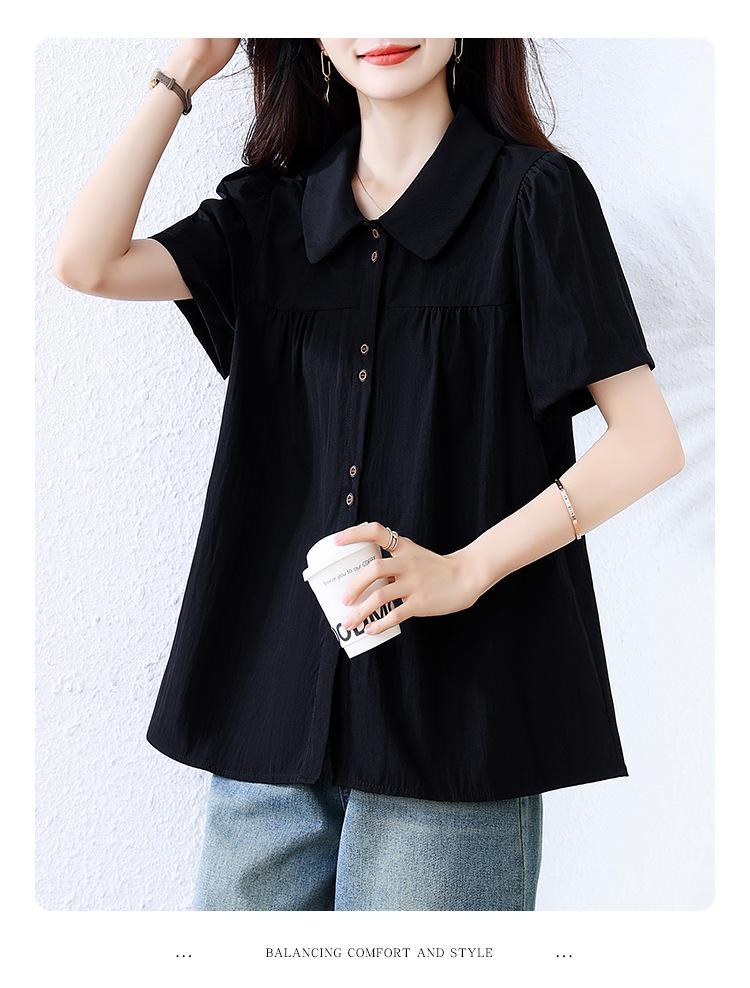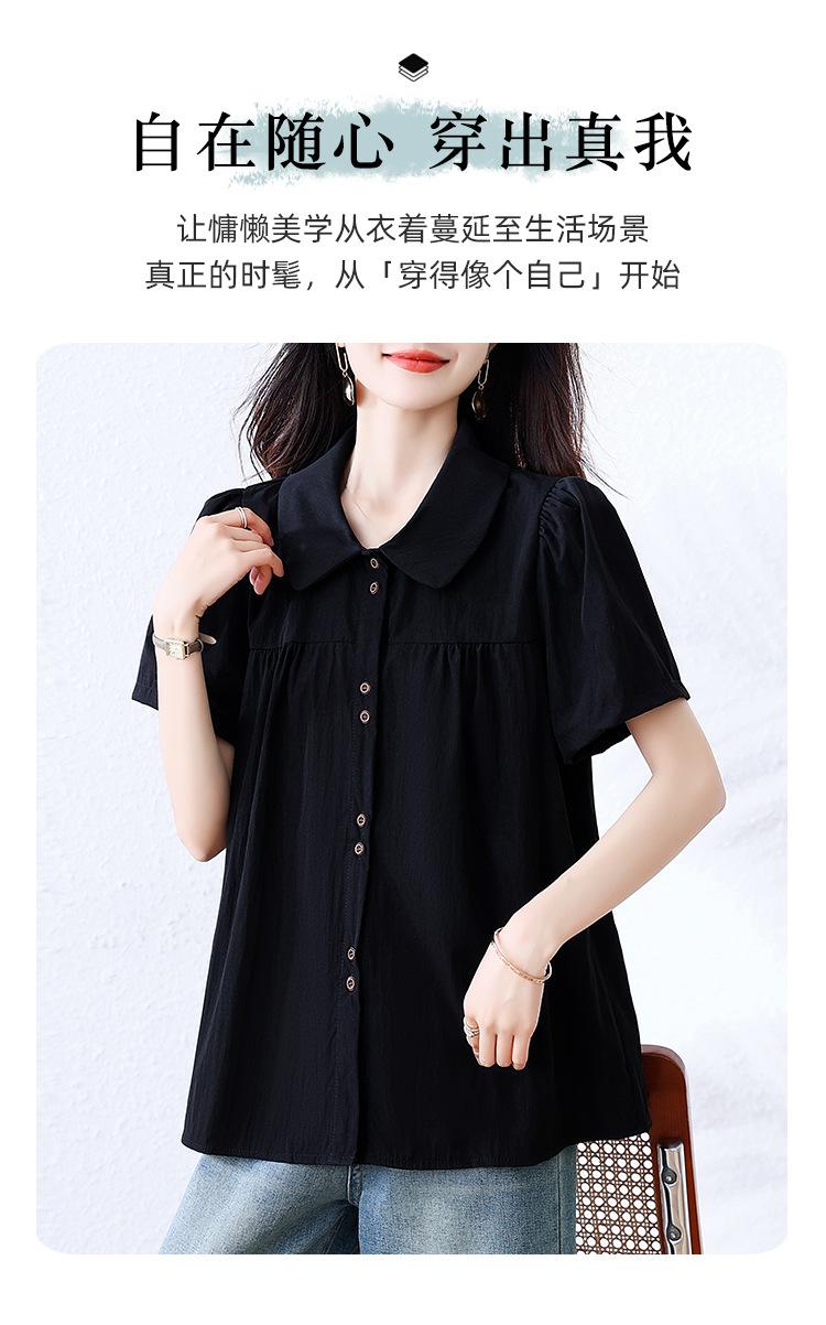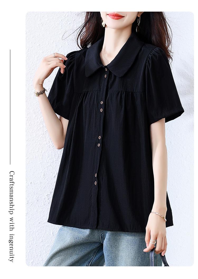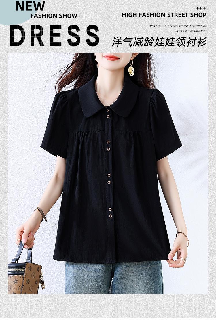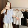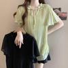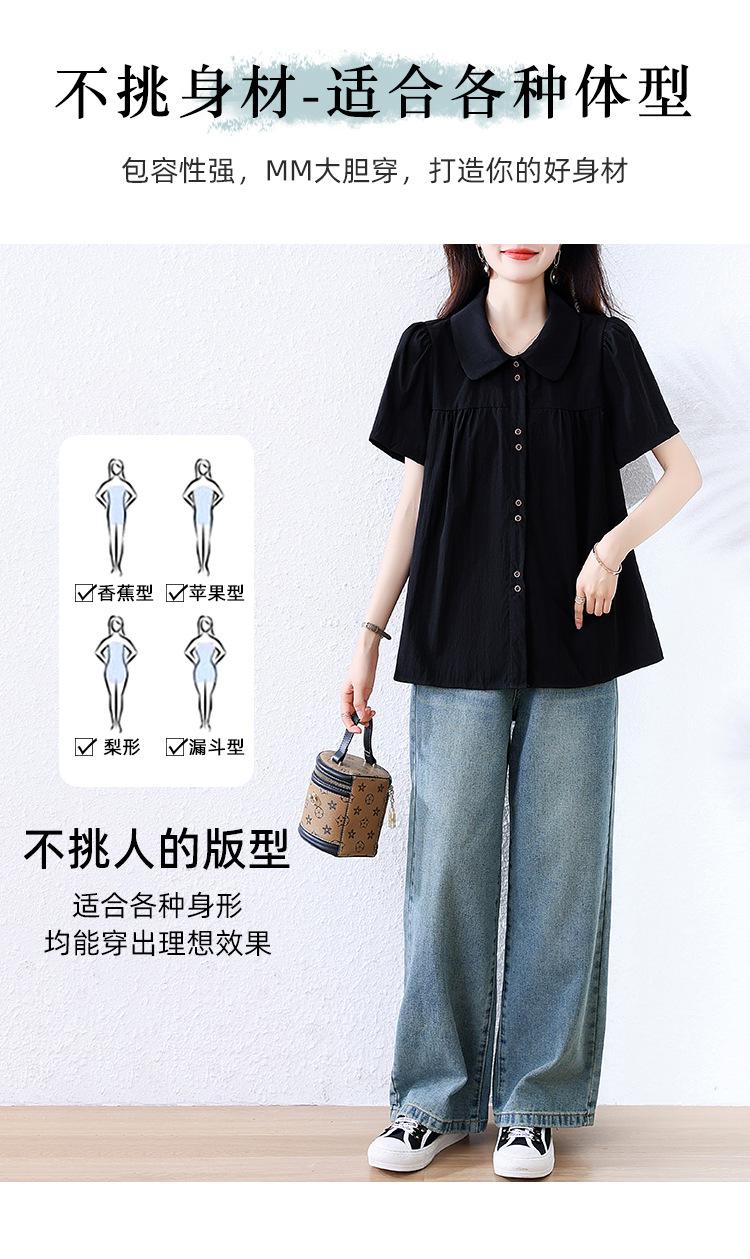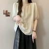 Camiseta Francesa de Manga Corta con Hombro Derecho Descubierto Verano 2025 Nuevo Talla Grande para Mujer Gorda mm Cubre Vientre Adelgazante Look Top Baby Doll