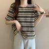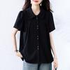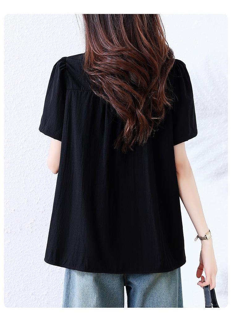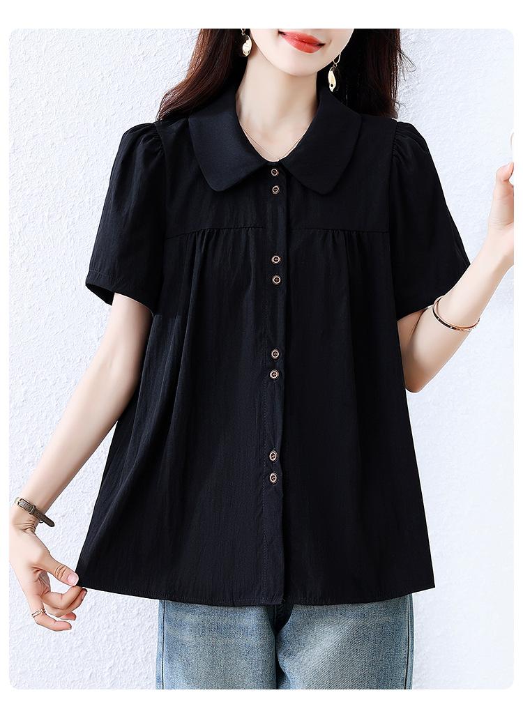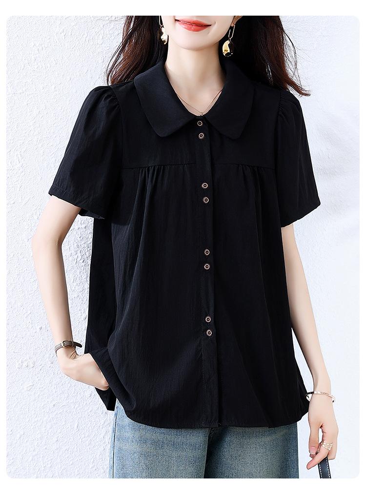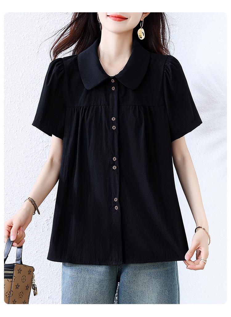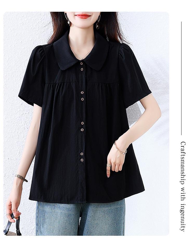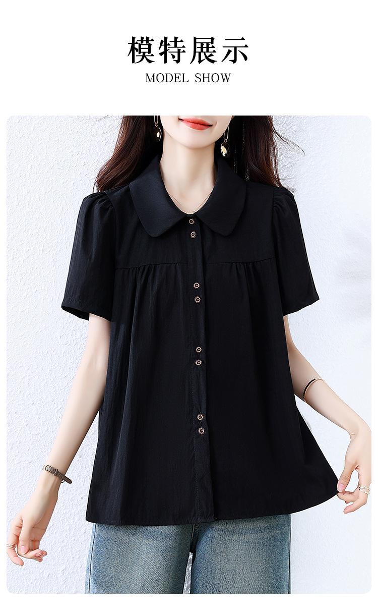 Camiseta Francesa de Manga Corta con Hombro Derecho Descubierto Verano 2025 Nuevo Talla Grande para Mujer Gorda mm Cubre Vientre Adelgazante Look Top Baby Doll