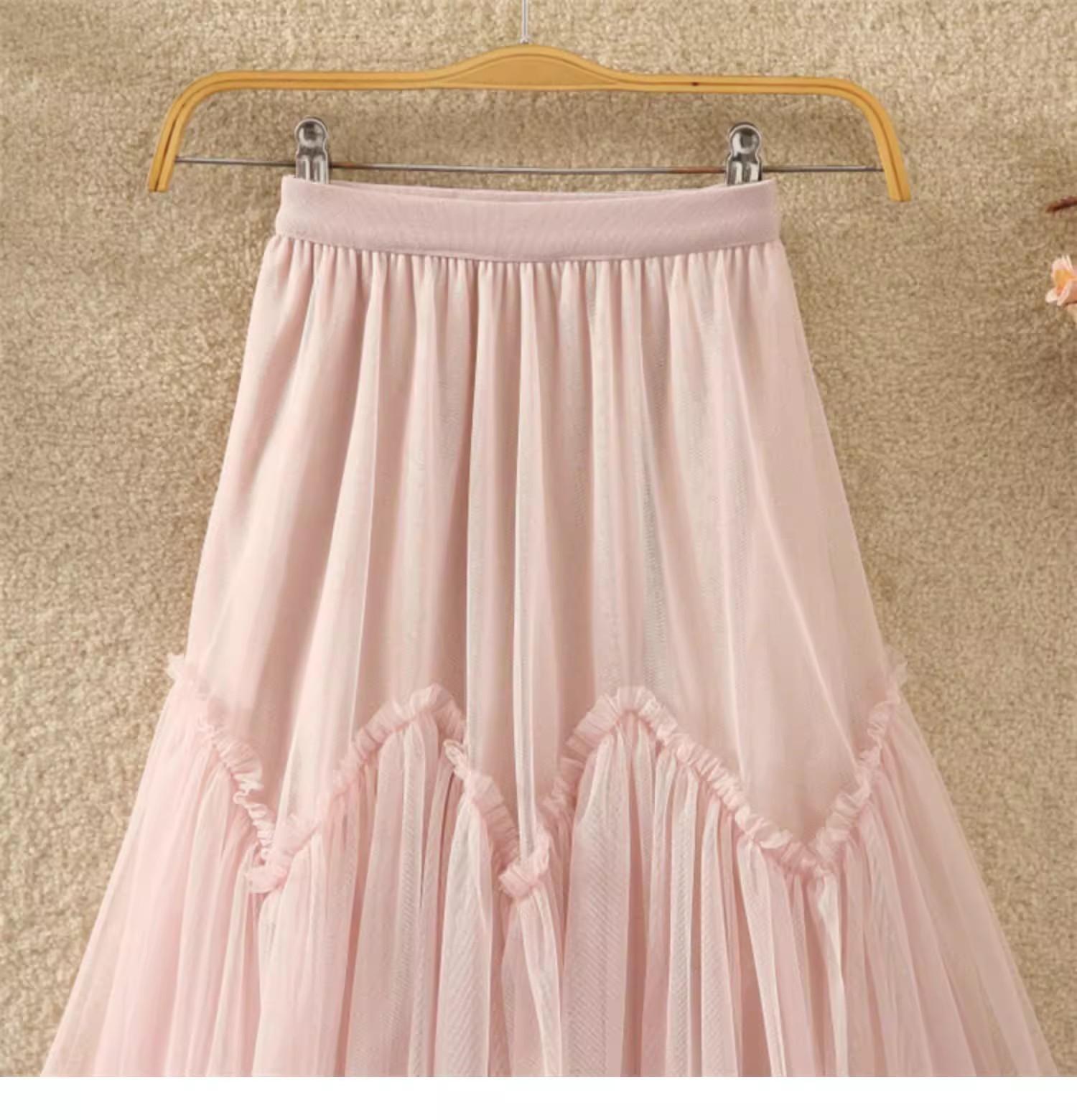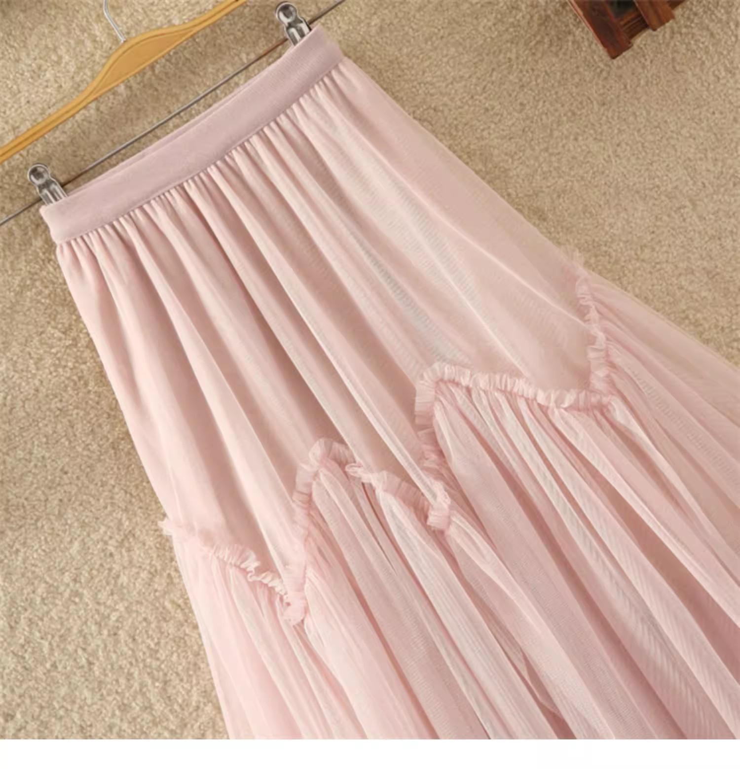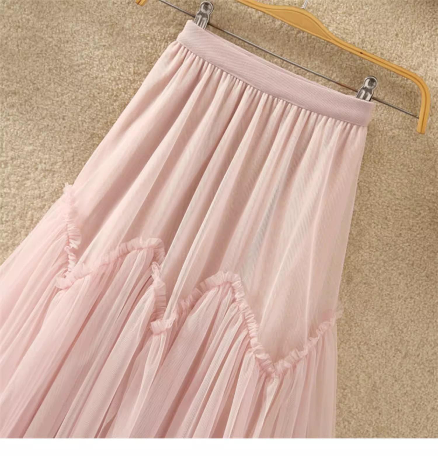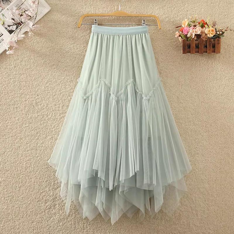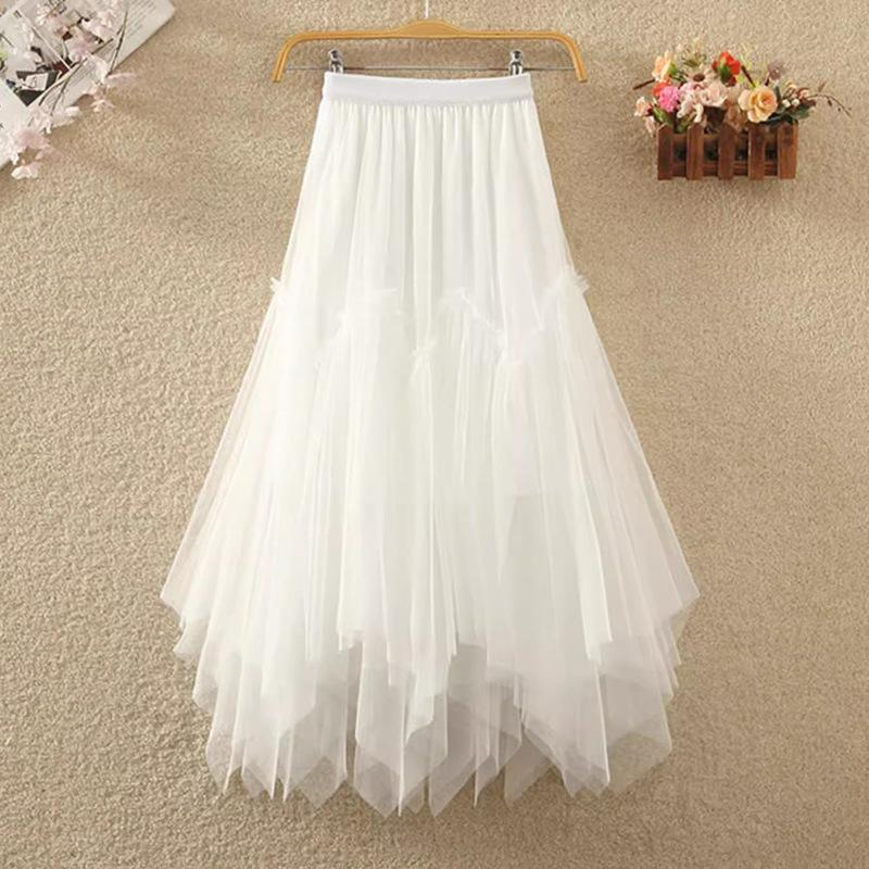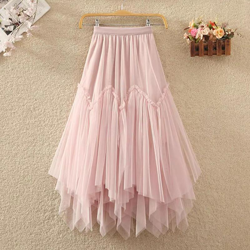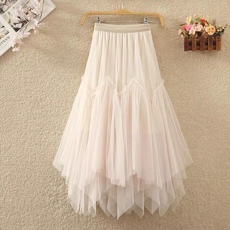 Falda de Malla con Costuras Irregulares Talla Grande para Mujer Largo Medio Cintura Alta Elástica Línea A Falda Súper Hada