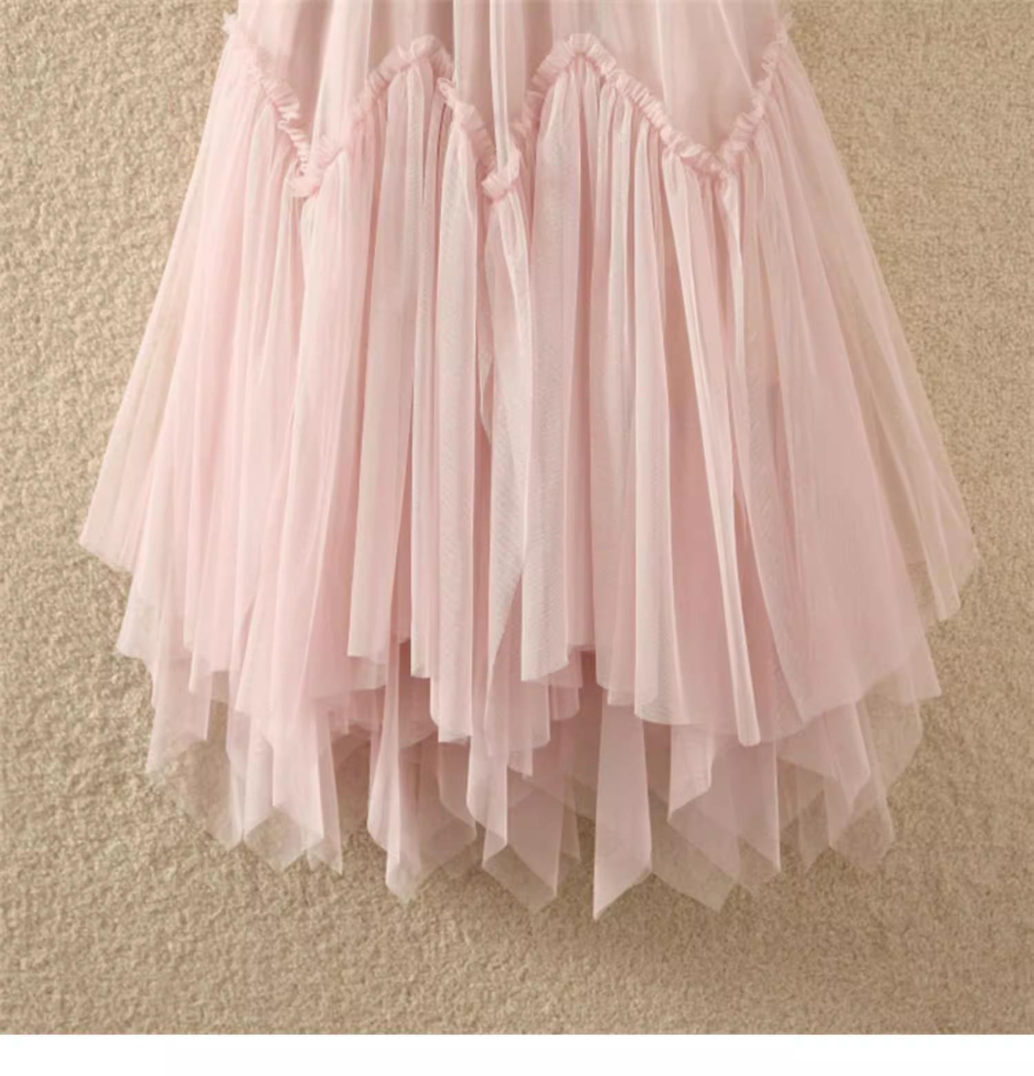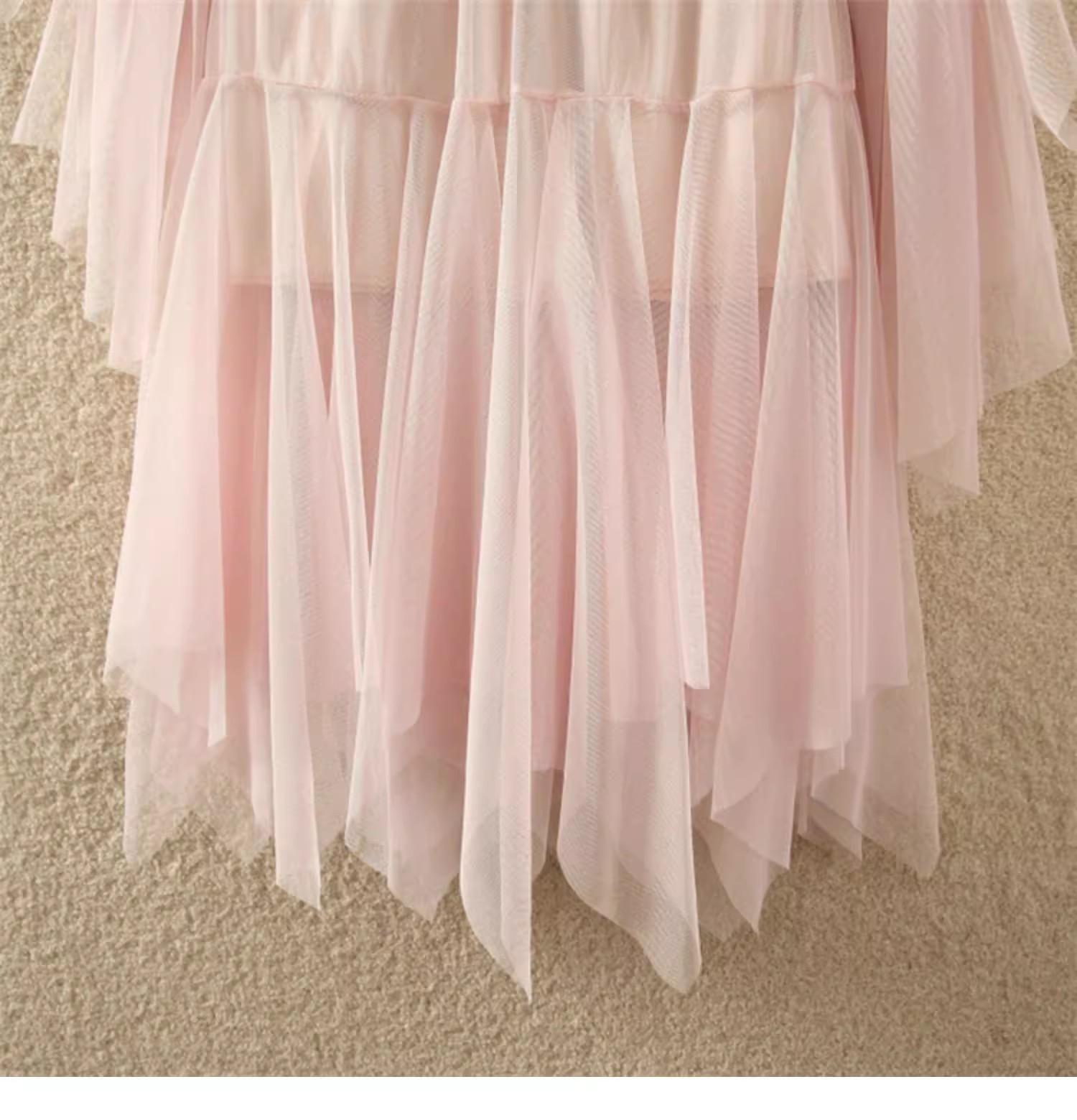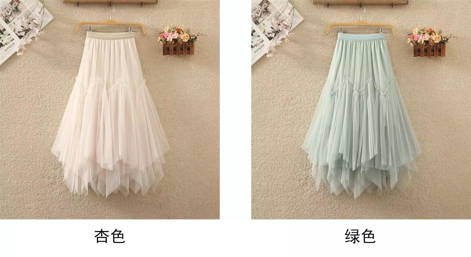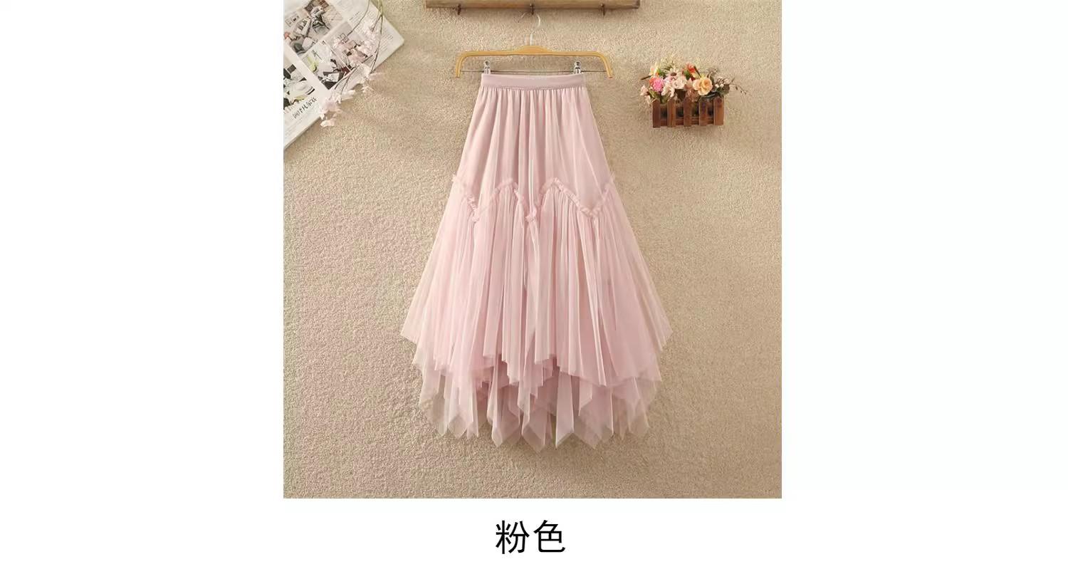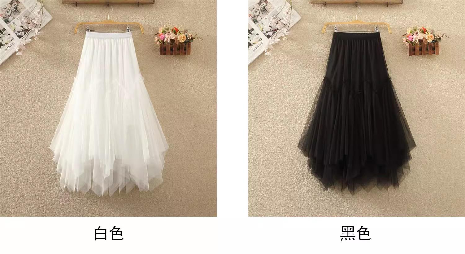 Falda de Malla con Costuras Irregulares Talla Grande para Mujer Largo Medio Cintura Alta Elástica Línea A Falda Súper Hada