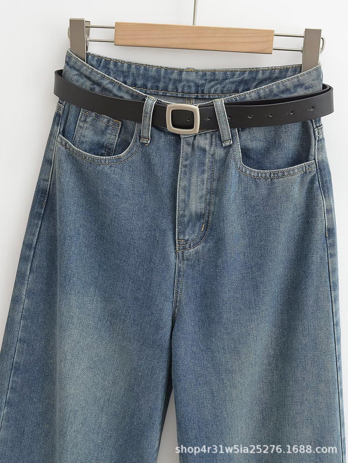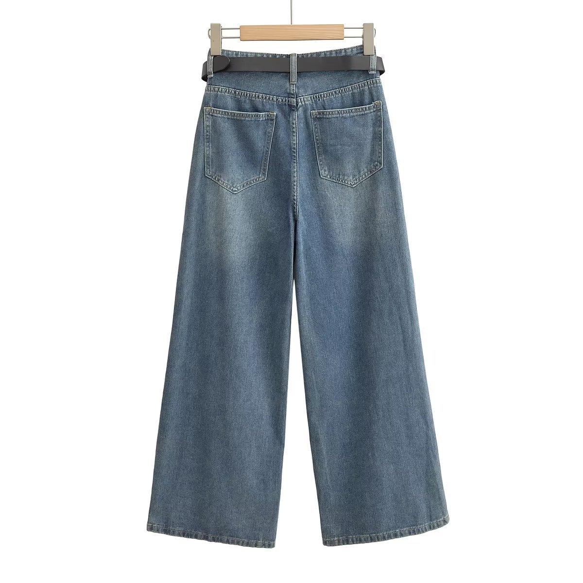 Venta al por mayor estilo europeo y americano Comercio exterior Pantalones vaqueros de pierna ancha con cinturón retro nuevo para mujer 2023