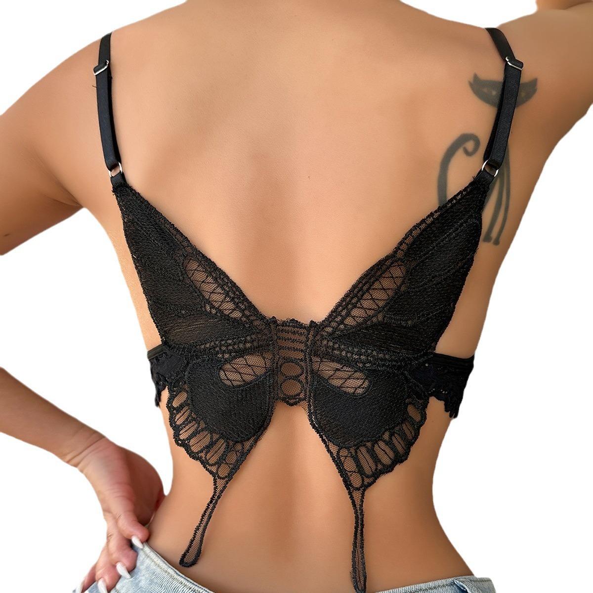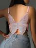 Camisola sexy de verano europea y americana con escote en V, encaje, espalda descubierta, mariposa, sin tirantes, elegante, ajustada, para mujer