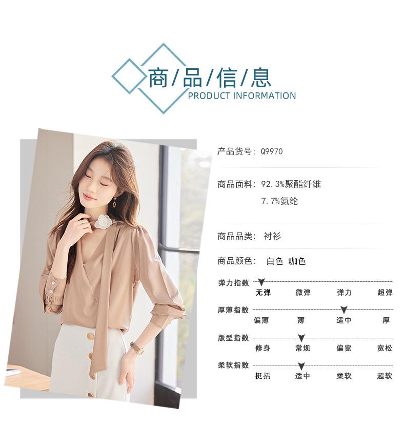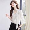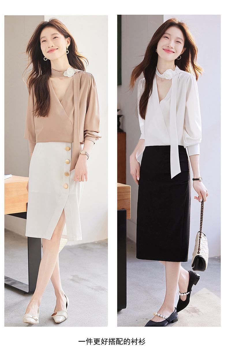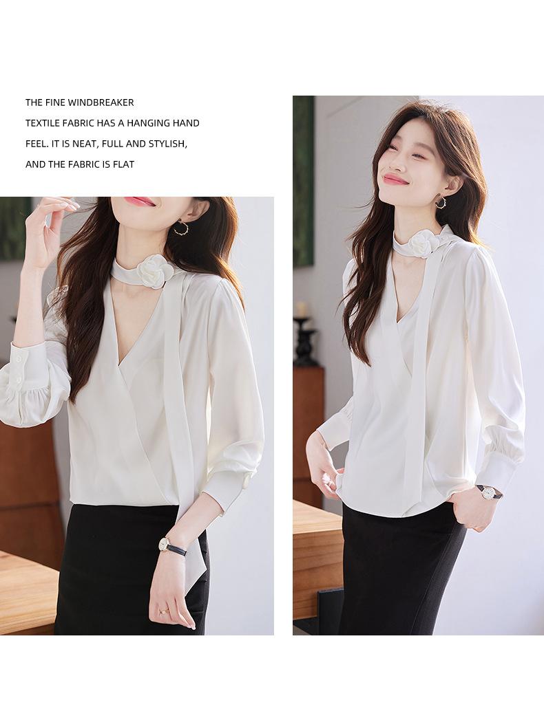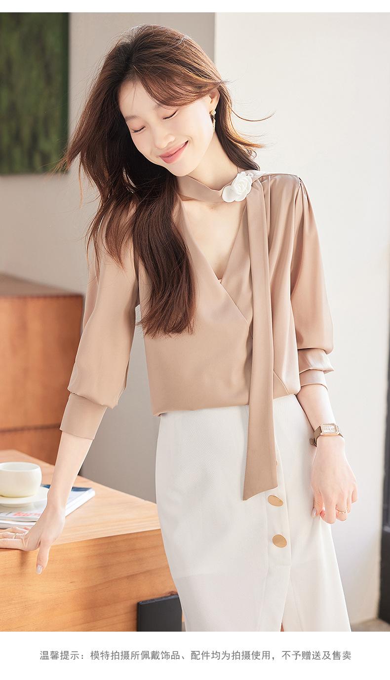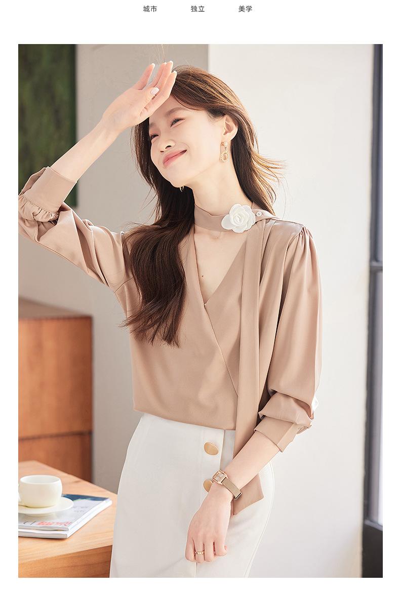 Camisa Francesa de Cuello en V y Manga Larga para Mujer para Primavera y Otoño, Elegante de Alta Gama, Camisa Holgada para Ropa de Trabajo, Top Profesional con Lazo de Hermana Real