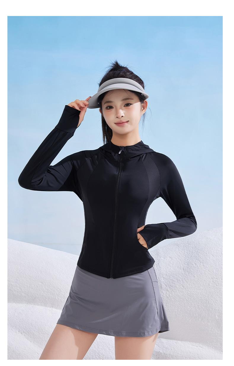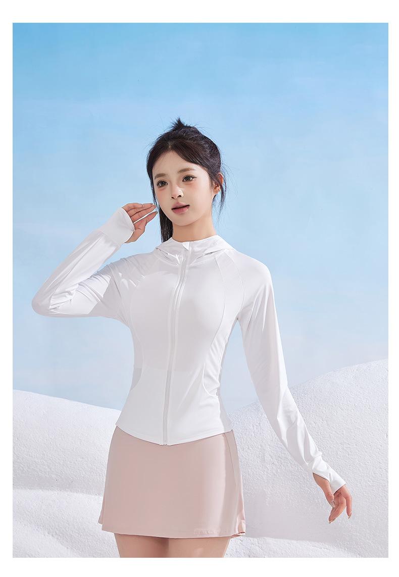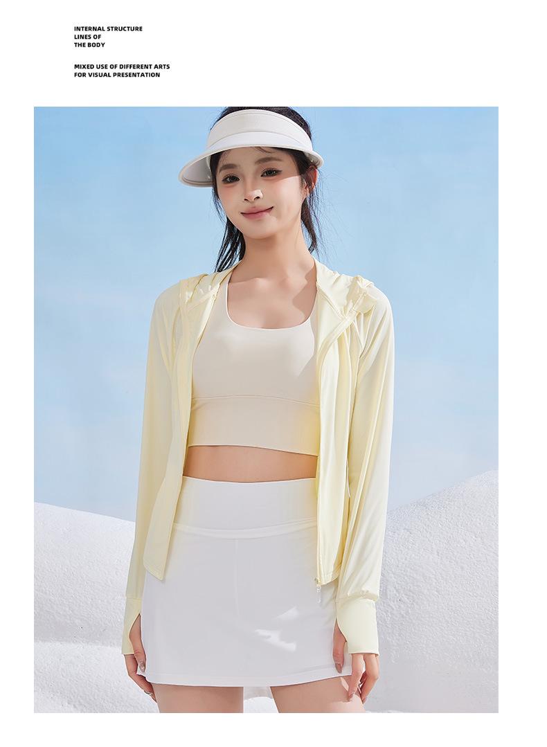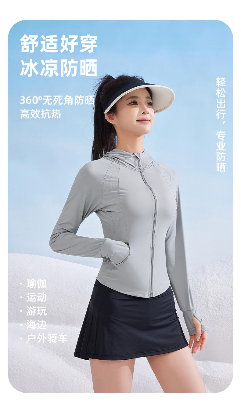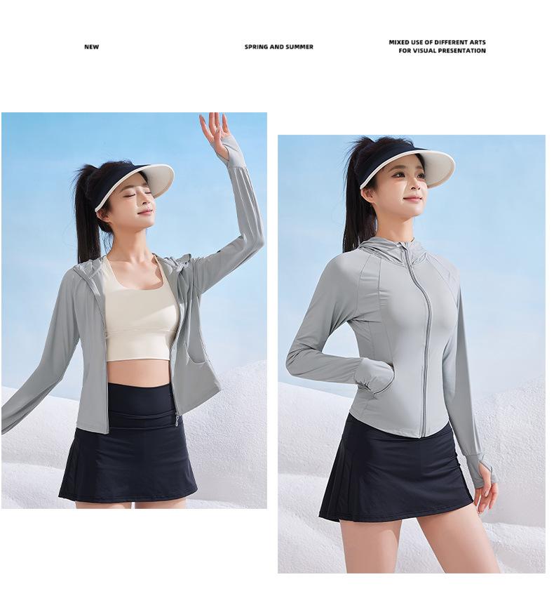 2025 Nuevo Abrigo Protector Solar de Yoga Ajustado para Mujer Verano Anti-ultravioleta Adelgazante Fresco Seda de Hielo Protector Solar