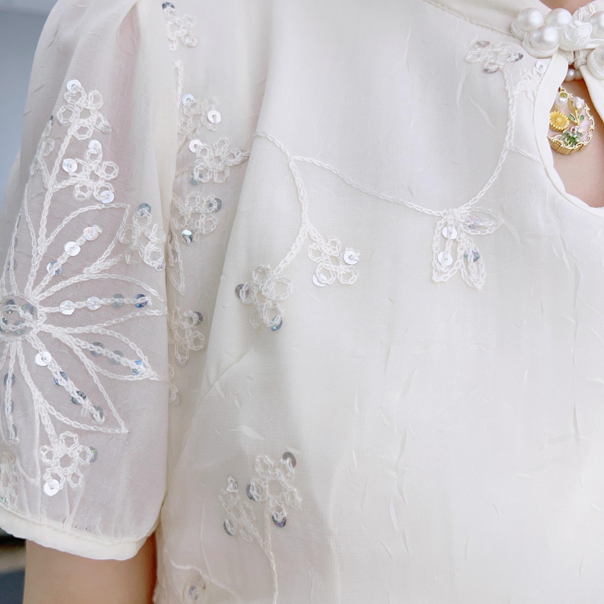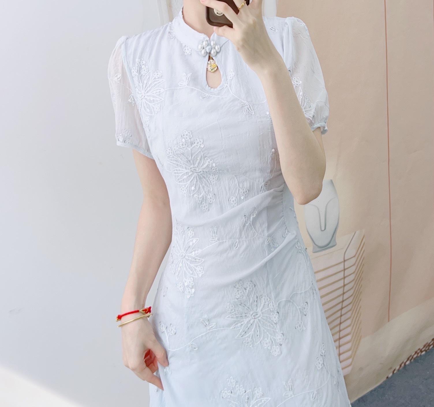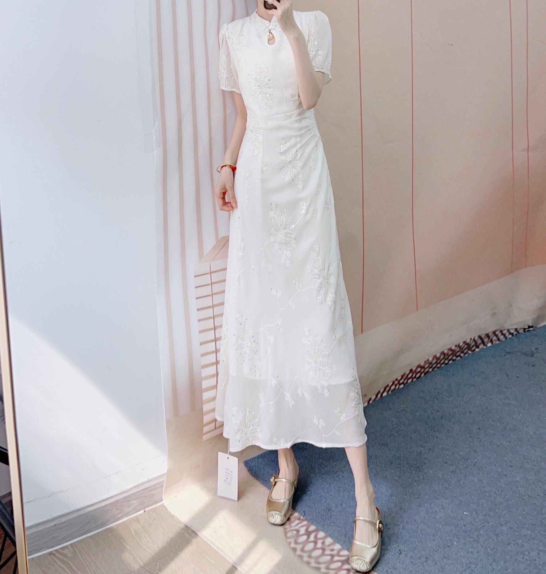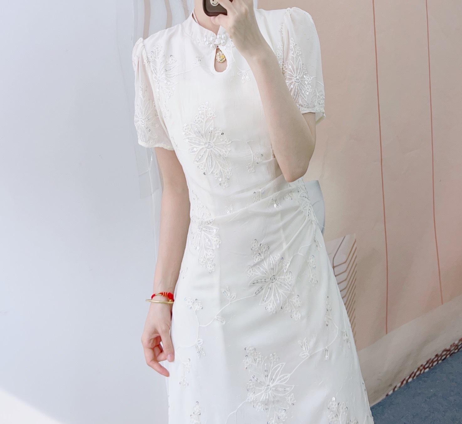 2025 Verano Temperamento Bordado Pesado Lentejuelas Cheongsam Mejorado de Manga Corta Vestido de Manga Corta 66