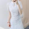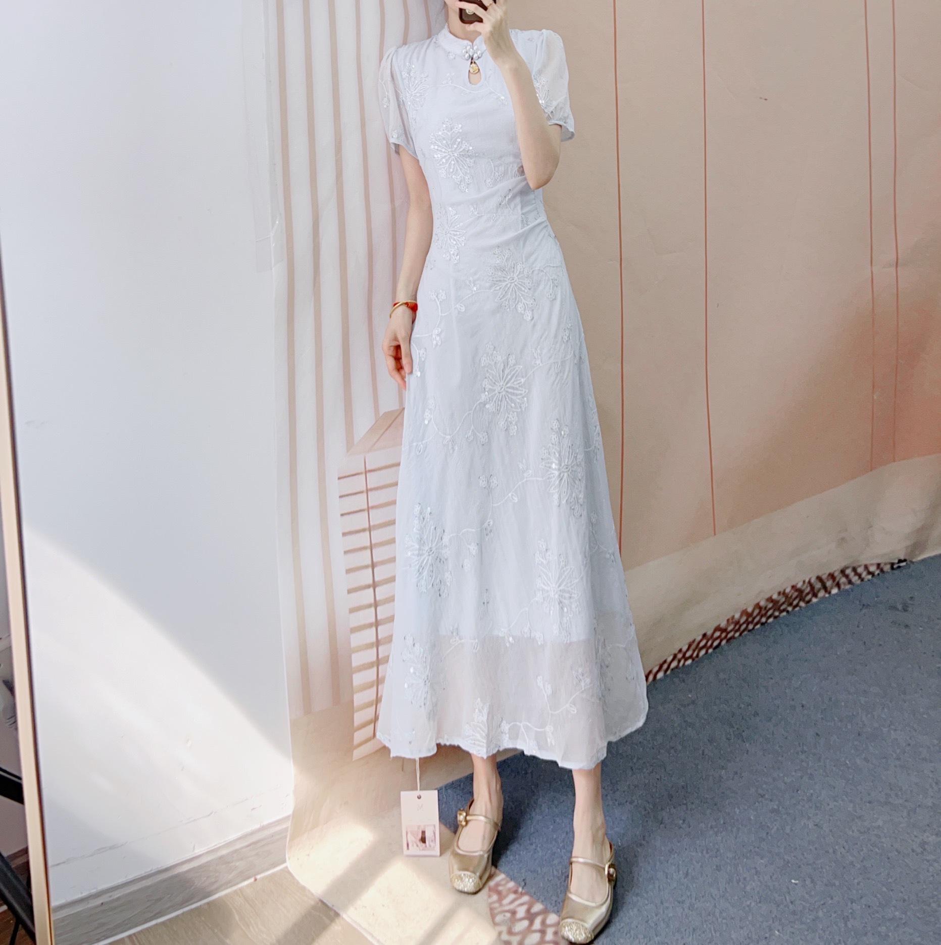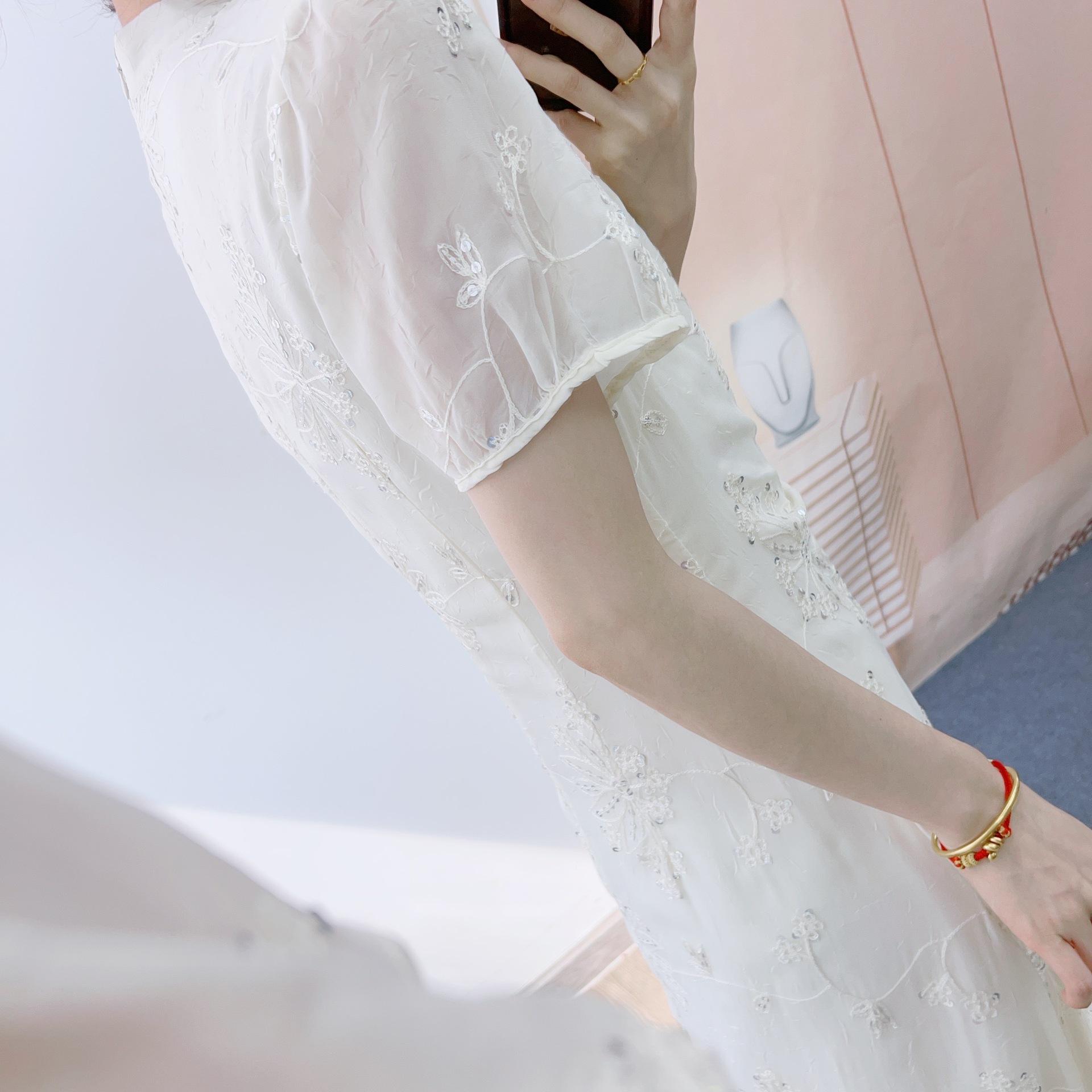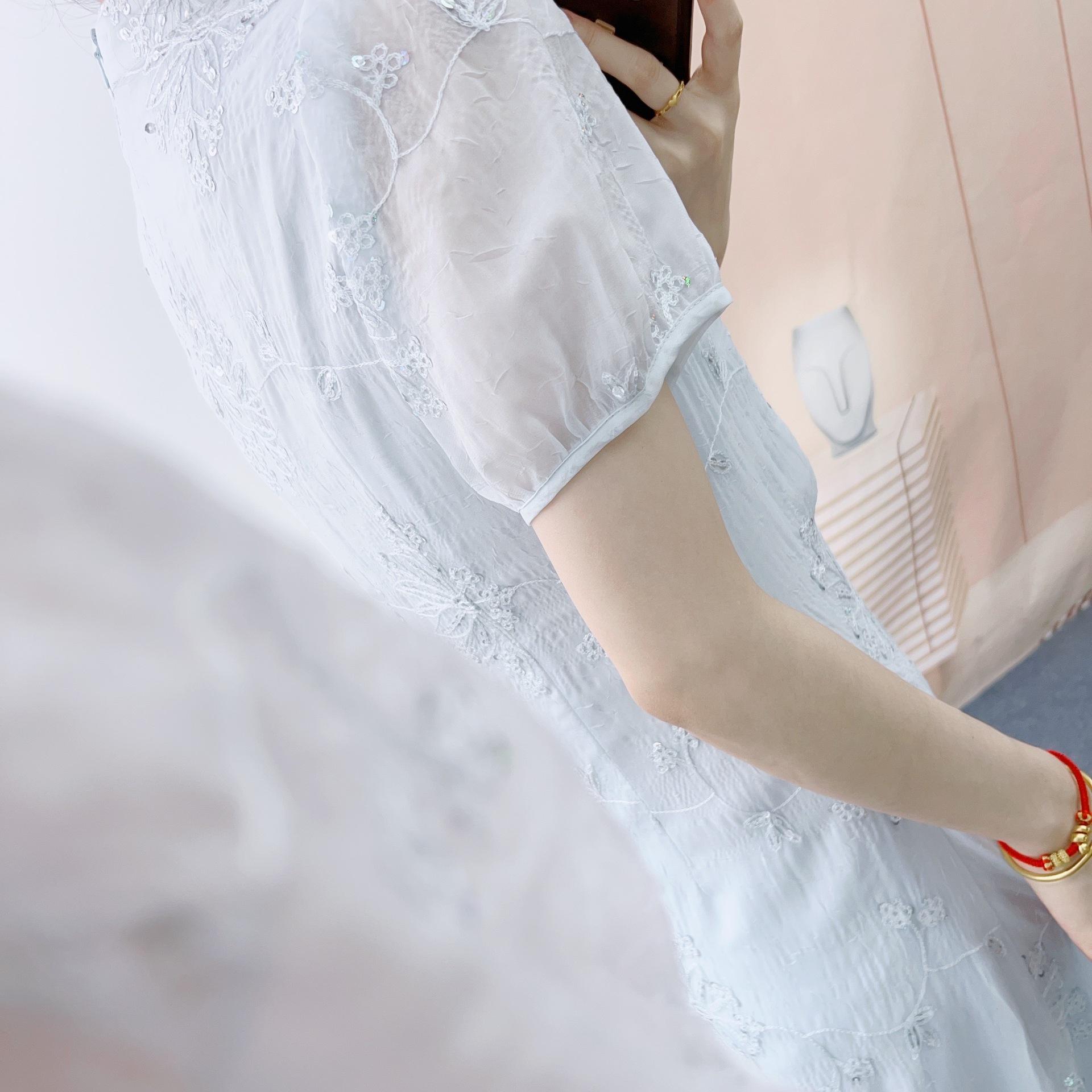 2025 Verano Temperamento Bordado Pesado Lentejuelas Cheongsam Mejorado de Manga Corta Vestido de Manga Corta 66