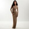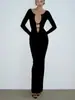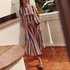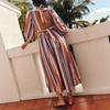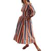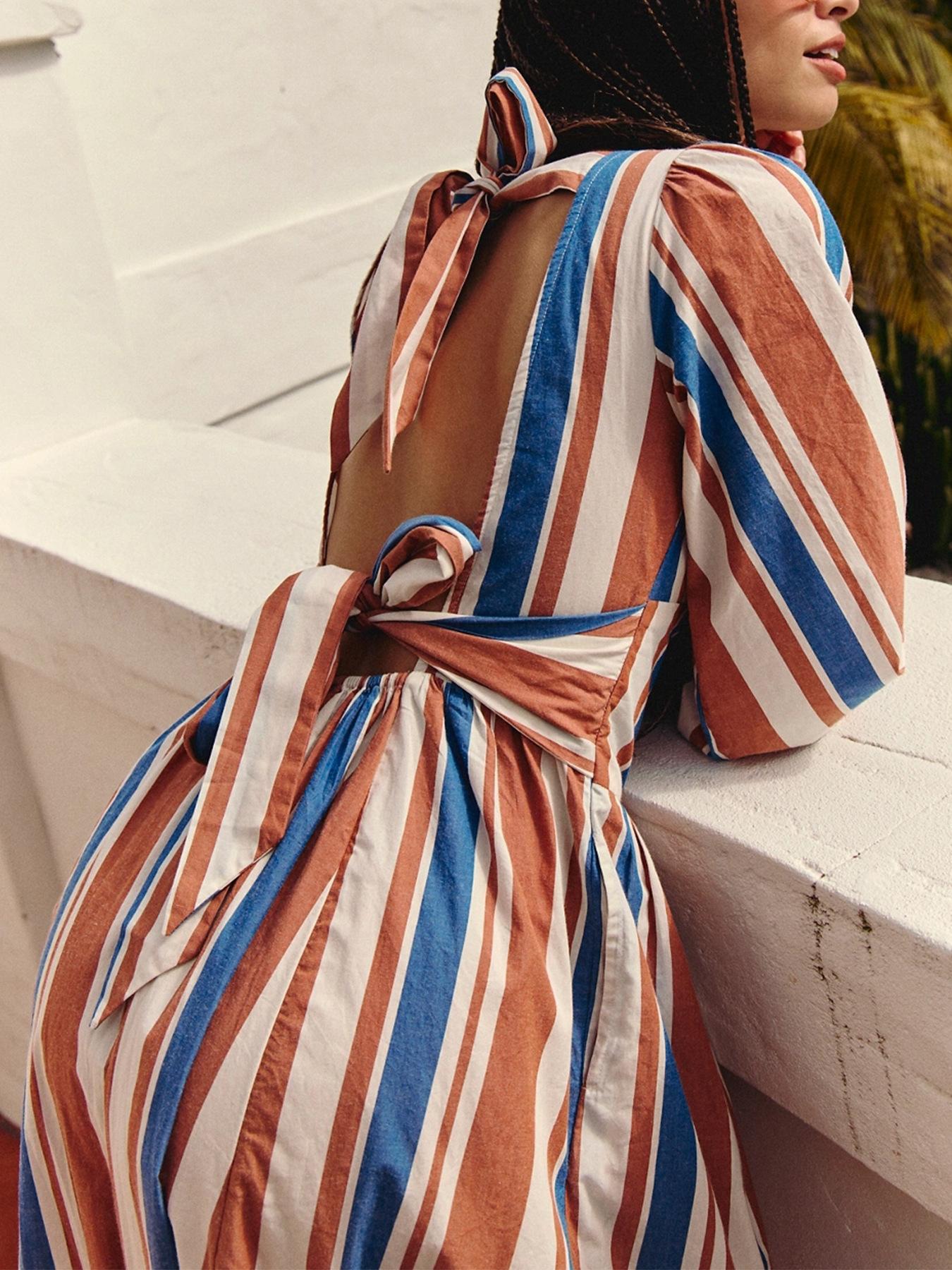 Europeo y Americano Transfronterizo Amazon Nuevo Vestido Sexy Elegante para Mujer Diseño de Cordones sin Espalda a Rayas Manga Larga Vestido Largo