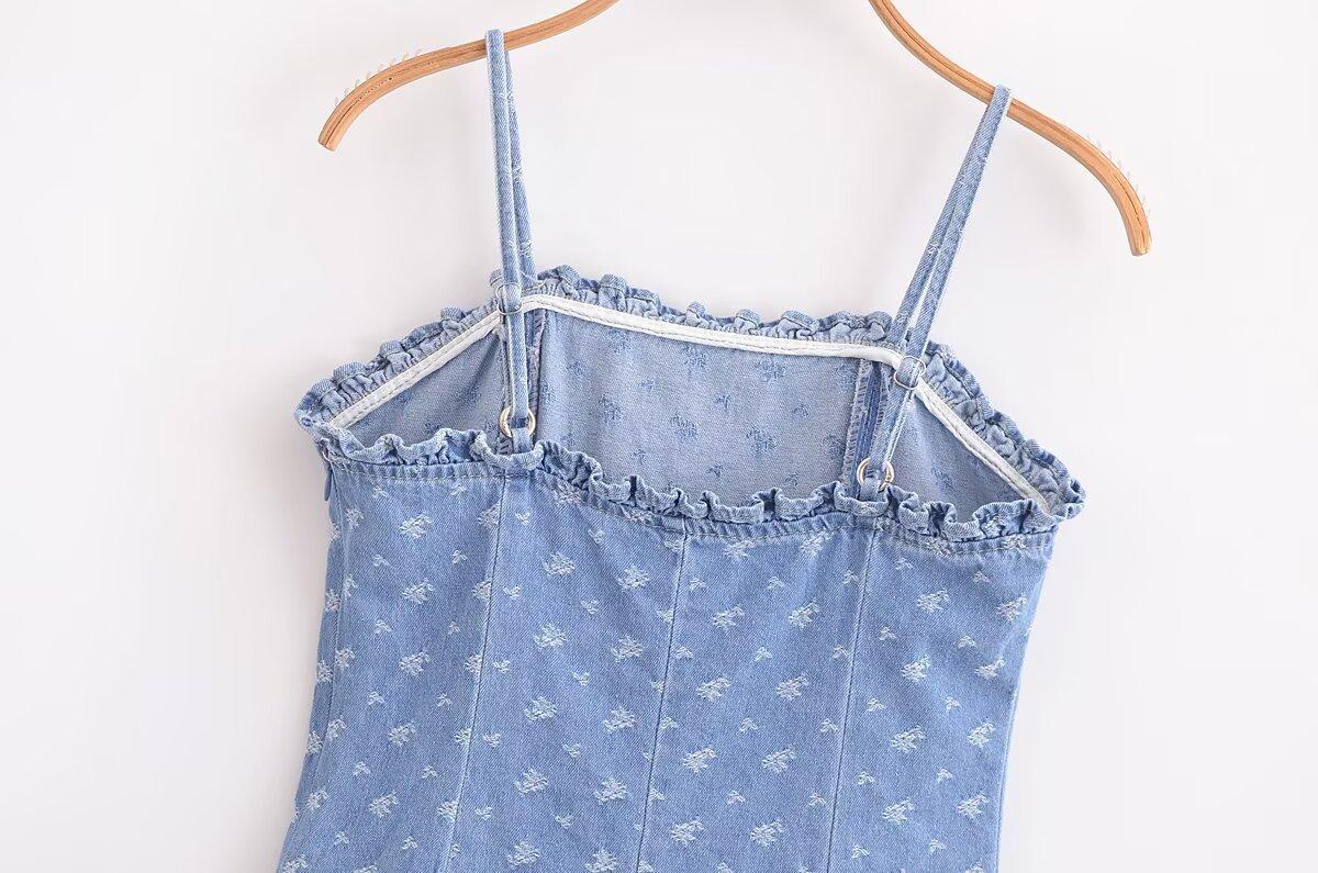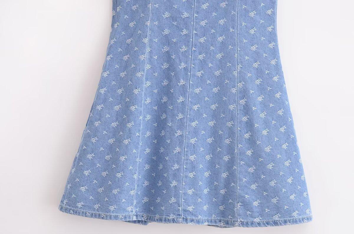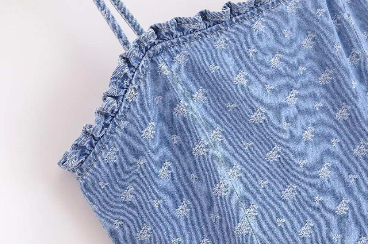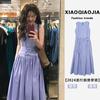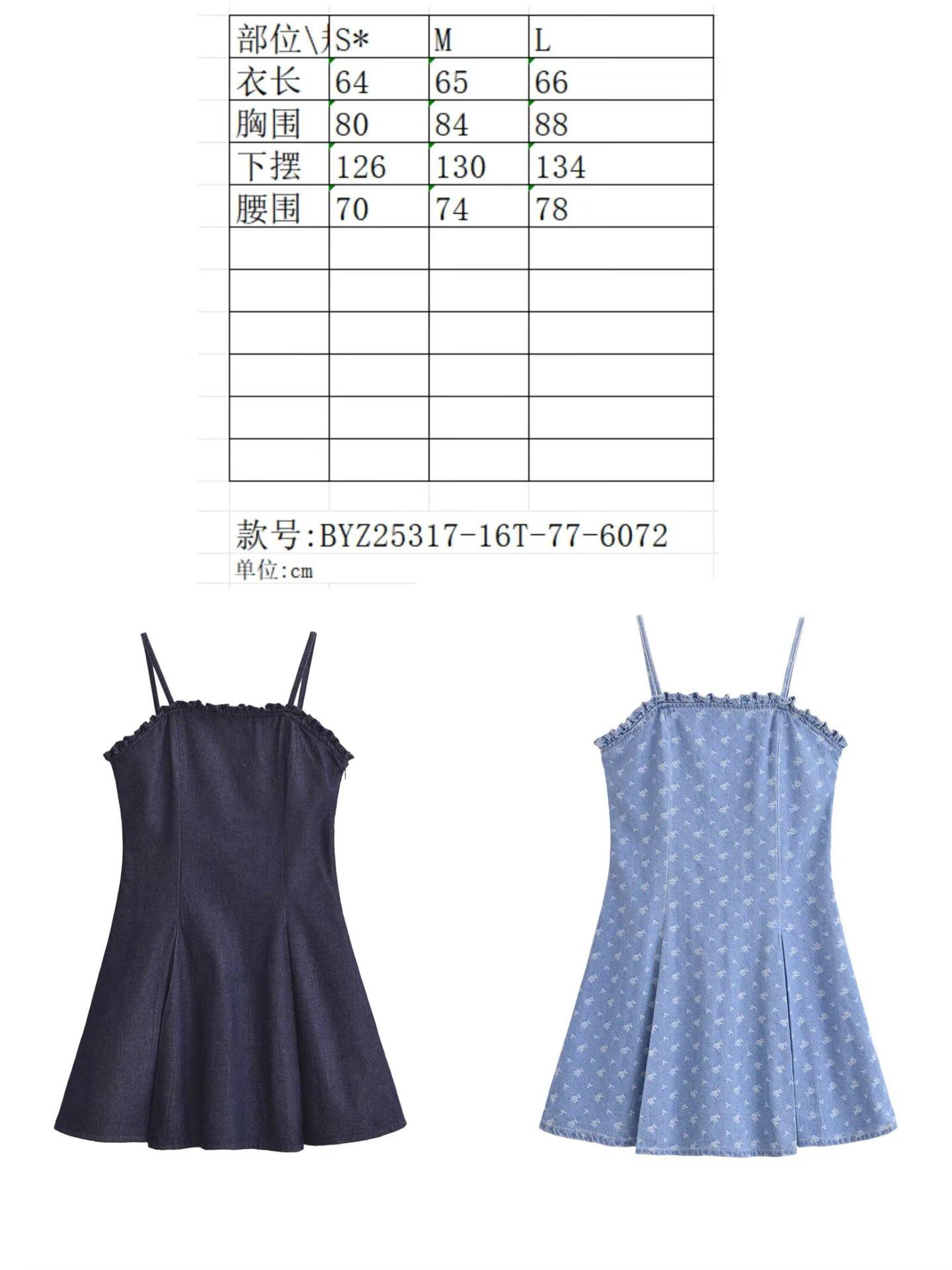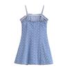 Vestido de Tirantes Azul Estilo Ins Transfronterizo 2025 Verano Nuevo Dulce Estilo Vacacional Estampado Look Adelgazante Línea A
