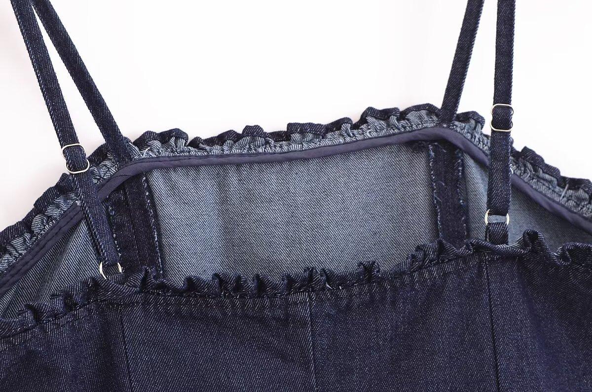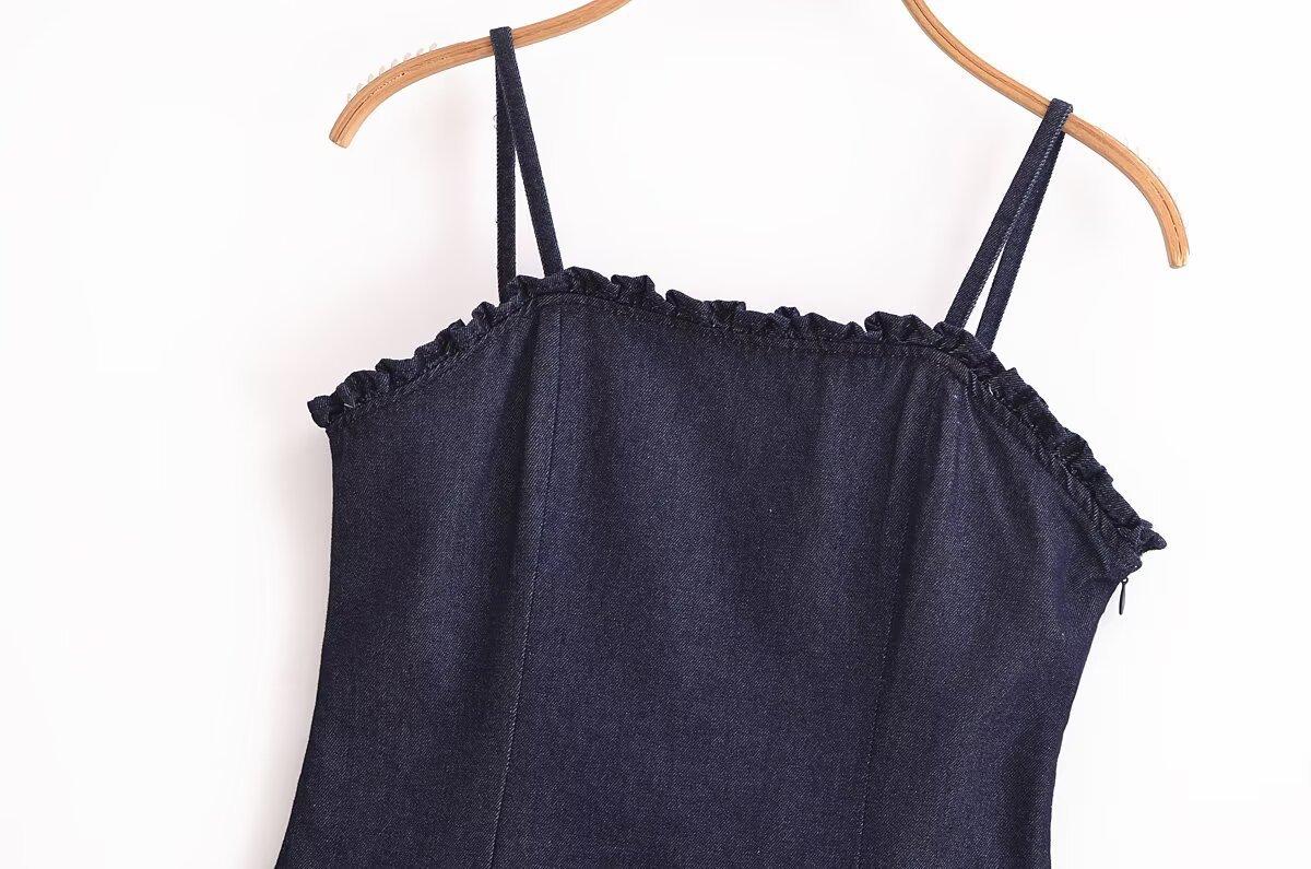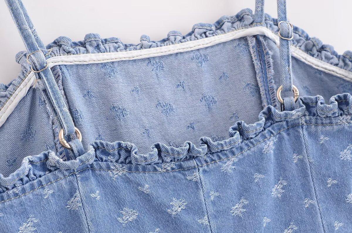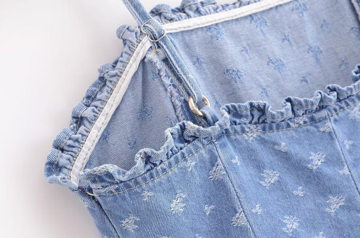 Vestido de Tirantes Azul Estilo Ins Transfronterizo 2025 Verano Nuevo Dulce Estilo Vacacional Estampado Look Adelgazante Línea A