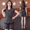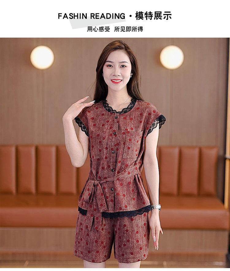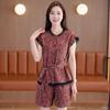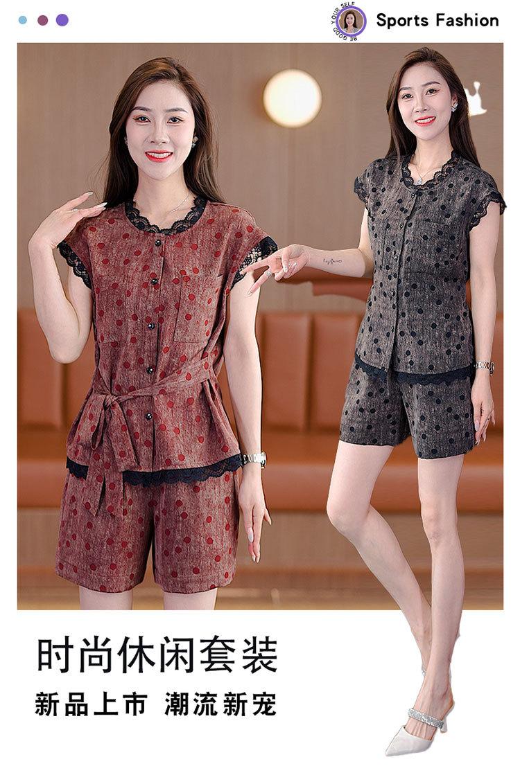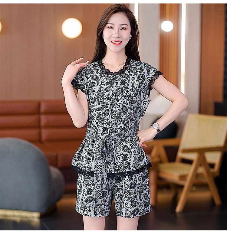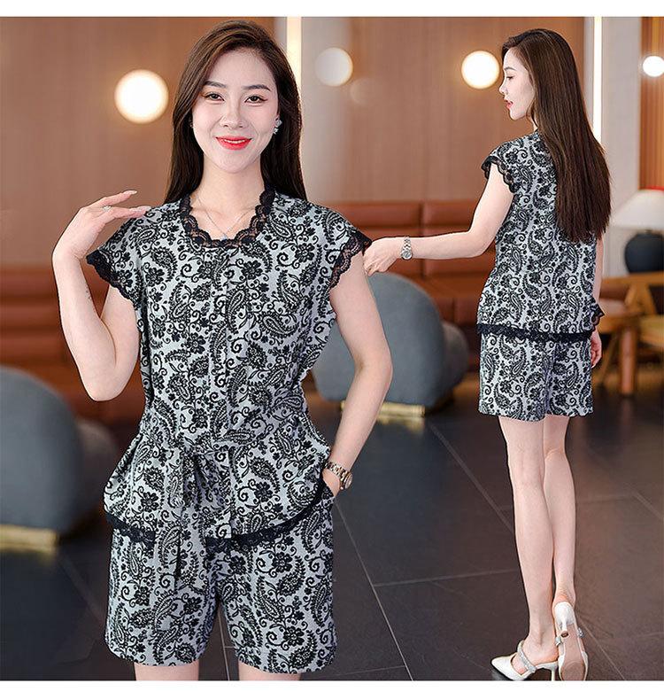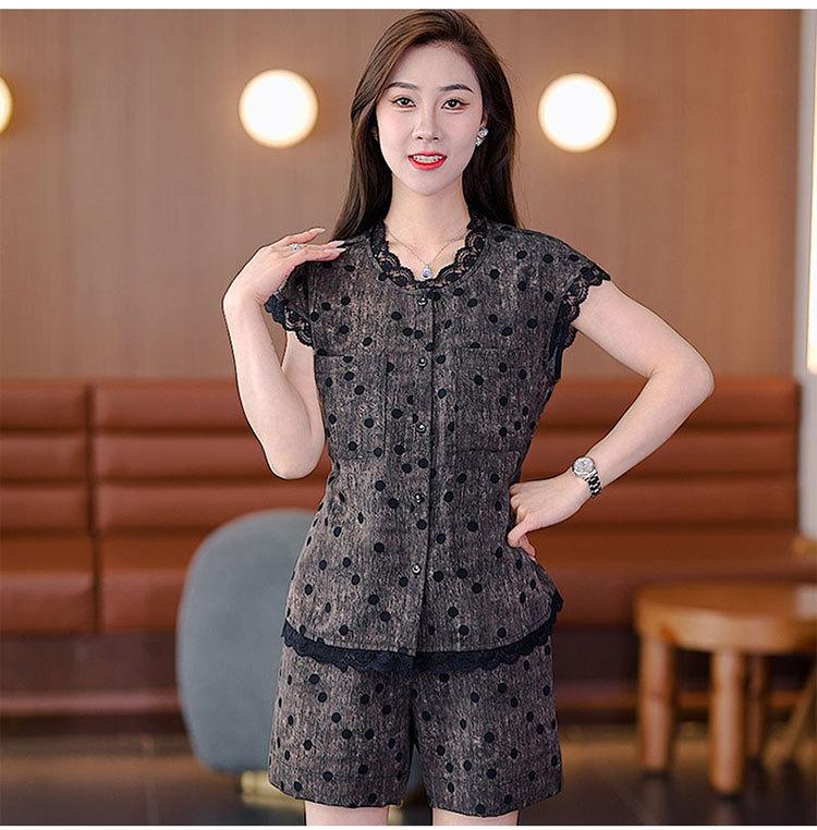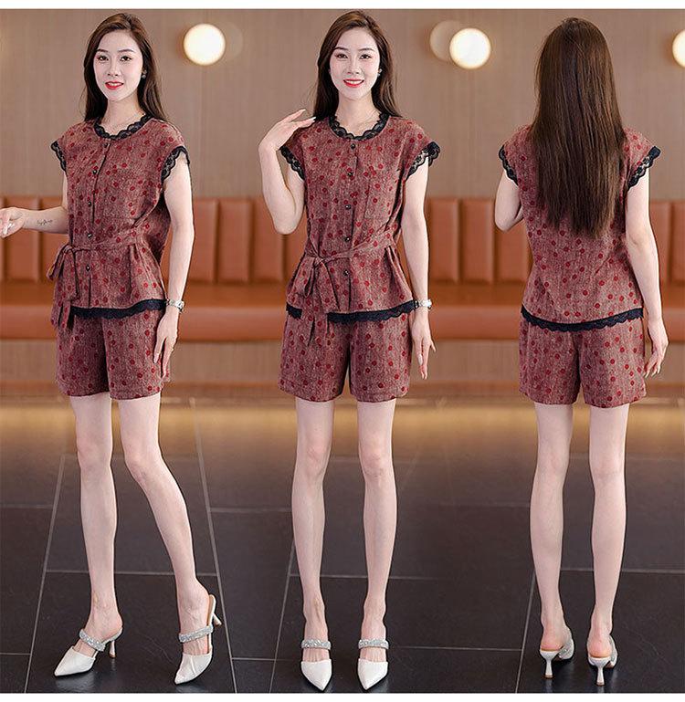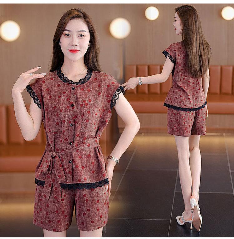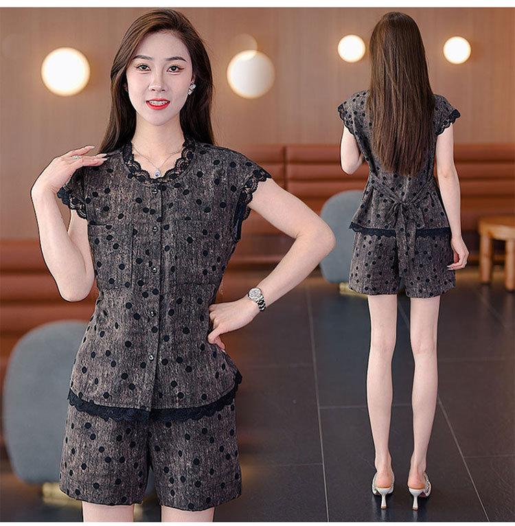 Traje de Mujer Moderno y Elegante 2025 Verano Nuevo Temperamento Adelgazante Encaje Empalmado Manga Corta Shorts Reductor de Edad Conjunto de Dos Piezas