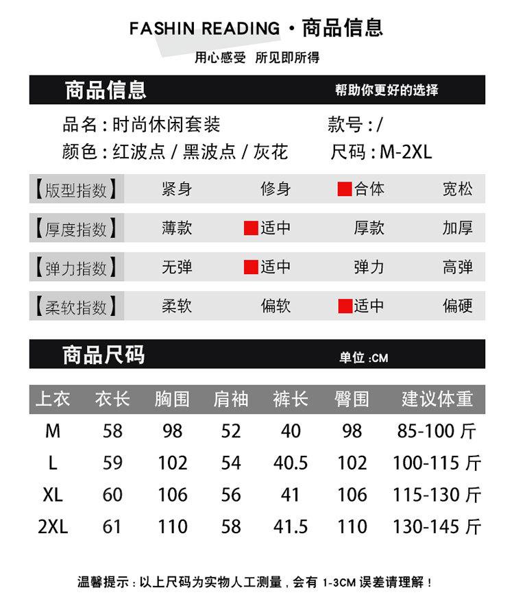 Red polka dots [two-piece set], Black polka dots [two-piece set], Gray flower [two-piece set]