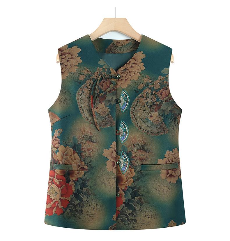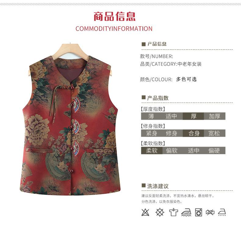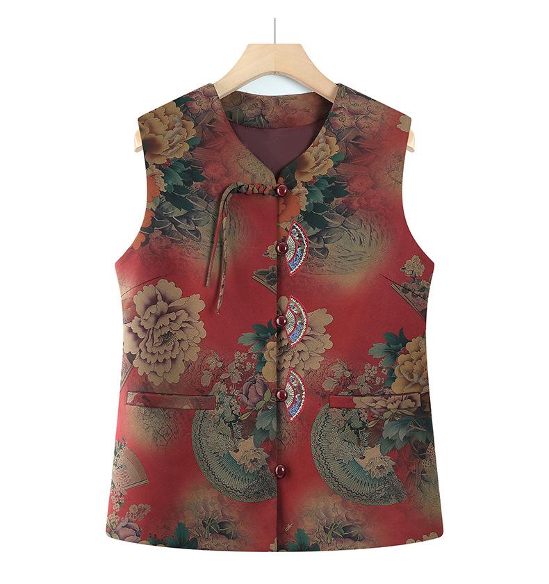 Chaleco de estilo chino nuevo para abuela de mediana edad y anciana, chaleco para señora de primavera y otoño, chaleco estampado de estilo nacional, abrigo, cabello generacional