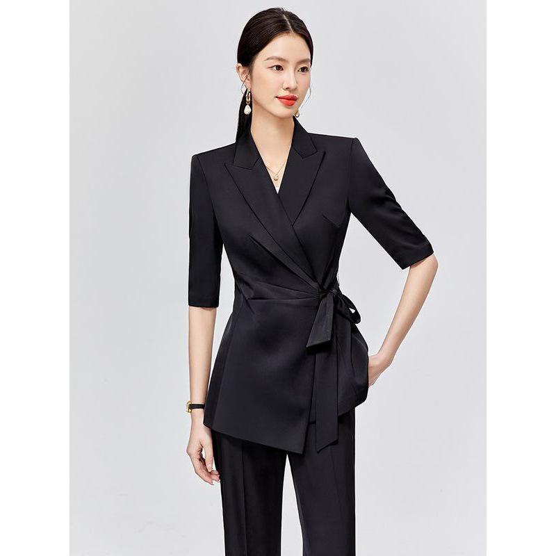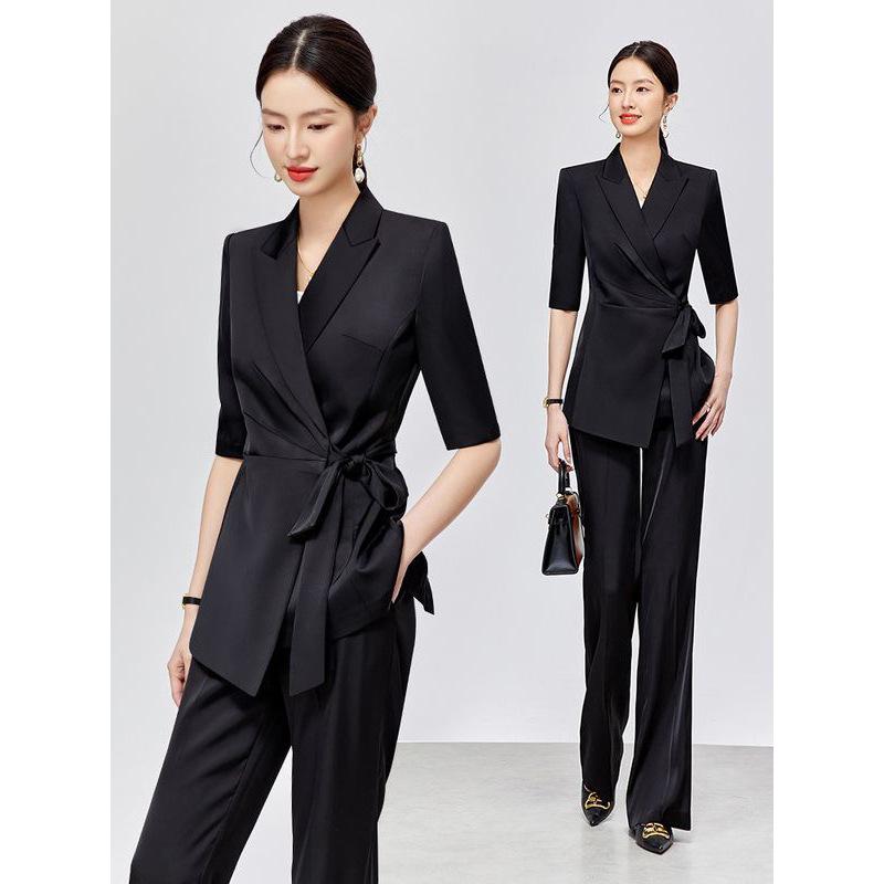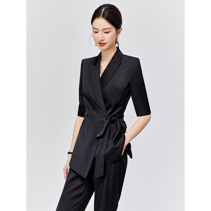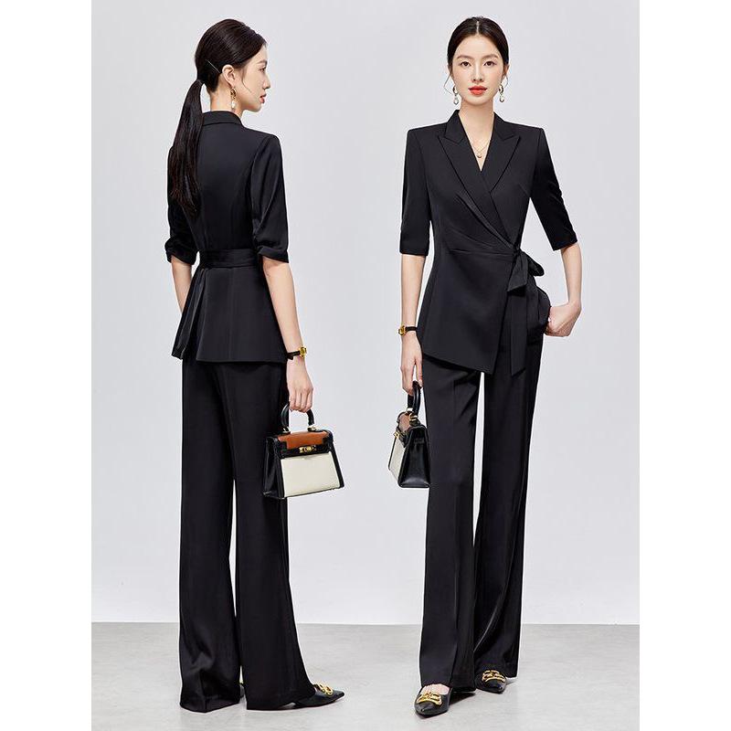Traje de Moda para Mujer Verano Nuevo Negro Ropa Profesional Otoño Casual Estilo Británico Traje Conjunto de Dos Piezas