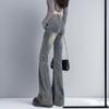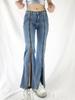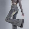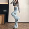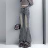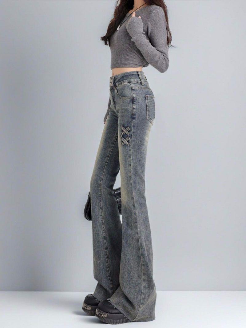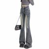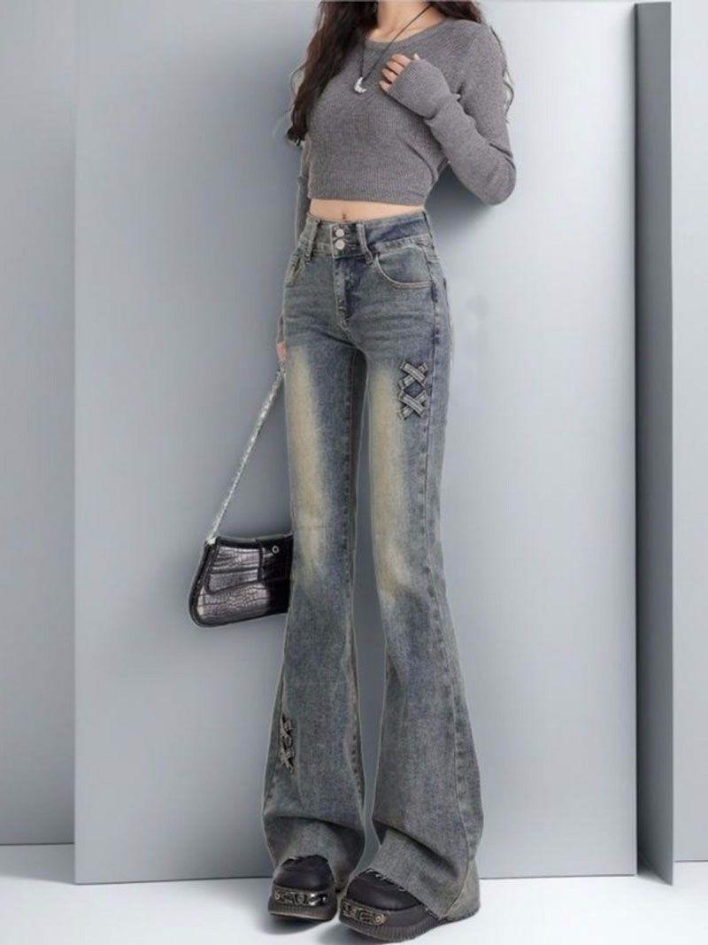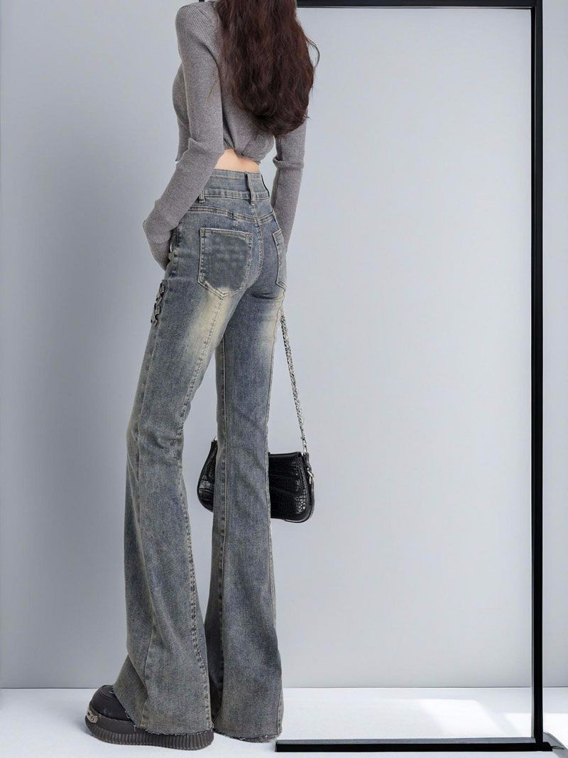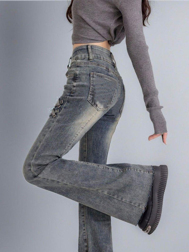 Jeans Acampanados de Diseño Elástico con Doble Botón para Mujer, Cintura Alta, Corte Slim, Talla Grande, Pantalones Retro de Campana