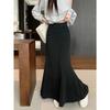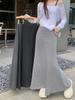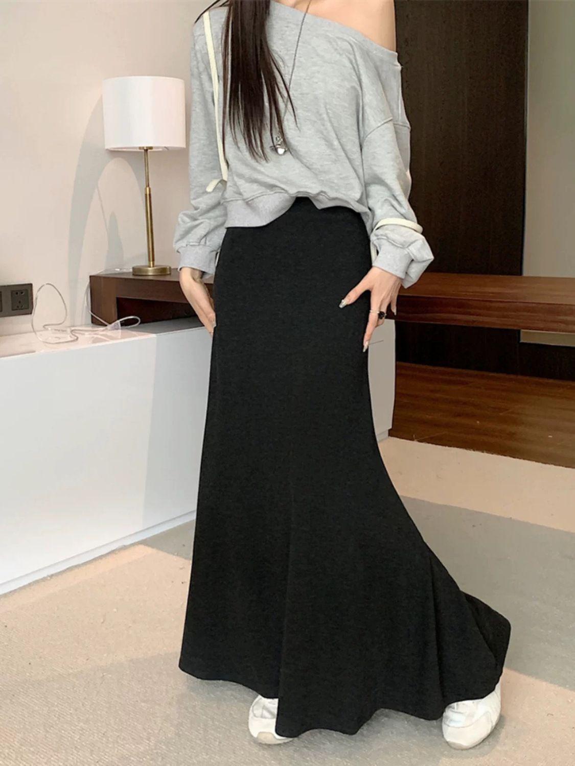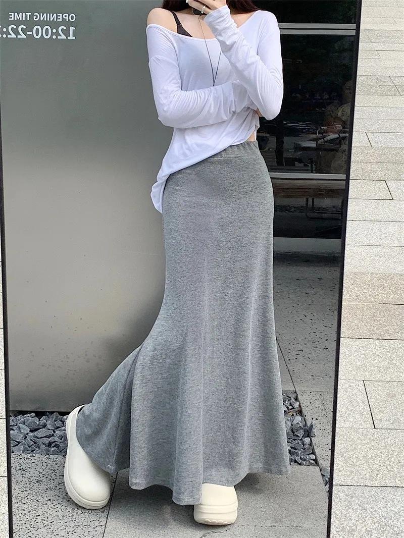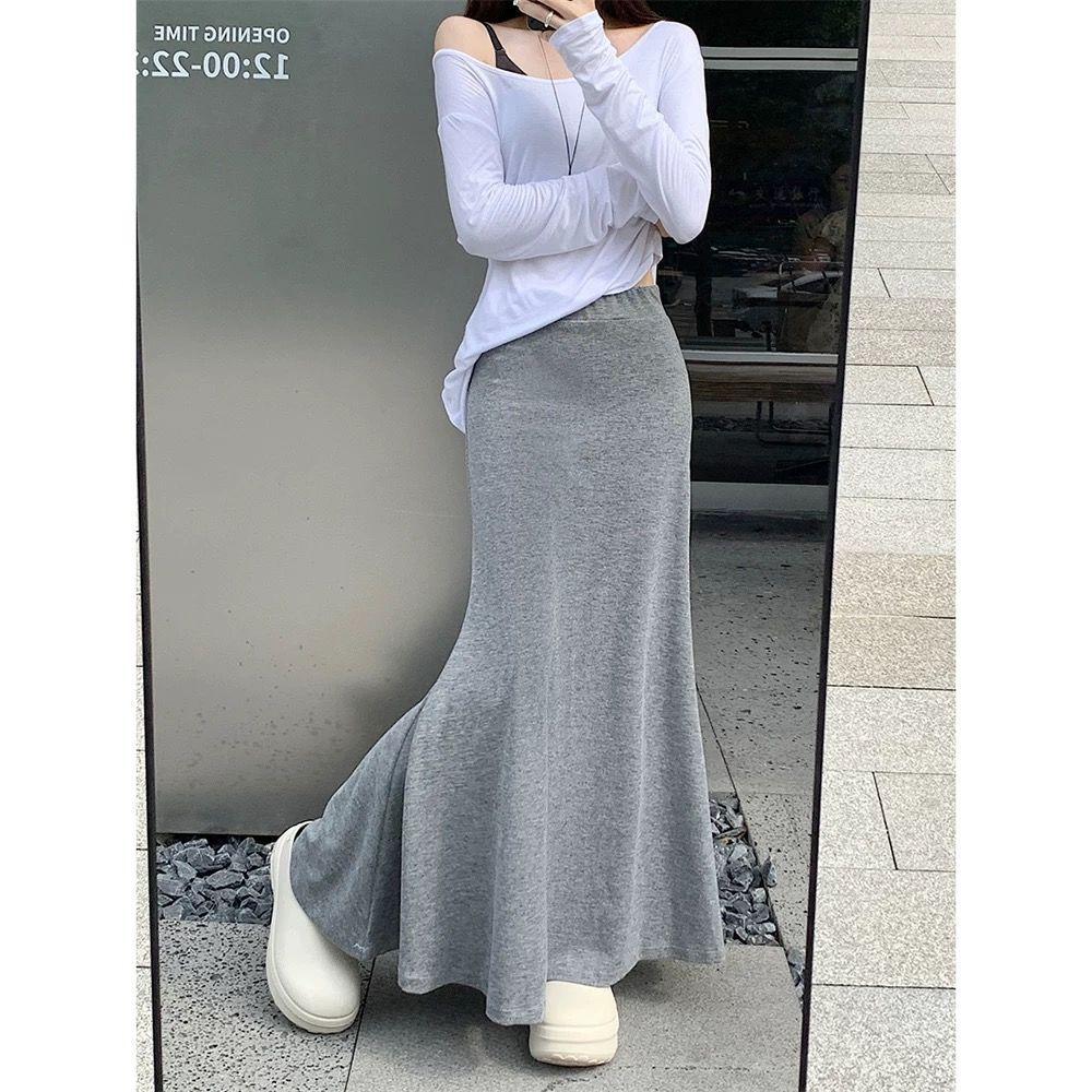 Perezoso Gris Elástico Cintura Alta Primavera y Verano Simple Drapeado Nuevo Falda Cola de Pescado Falda Casual Ajustada Falda Larga