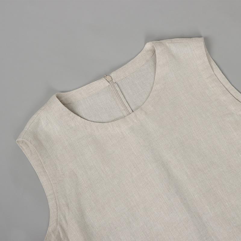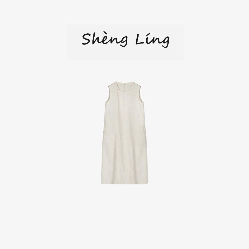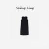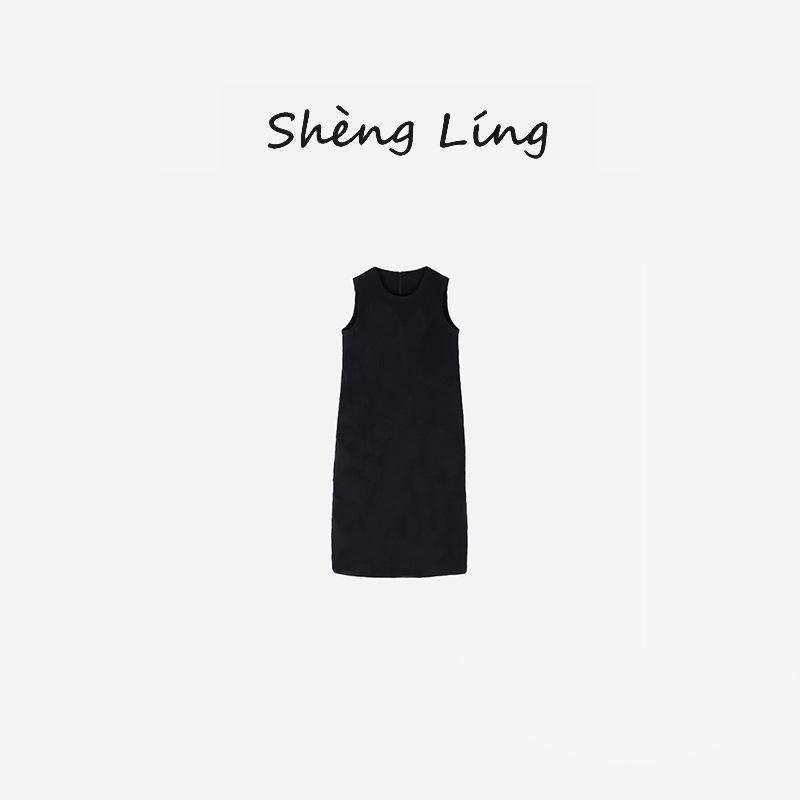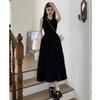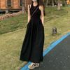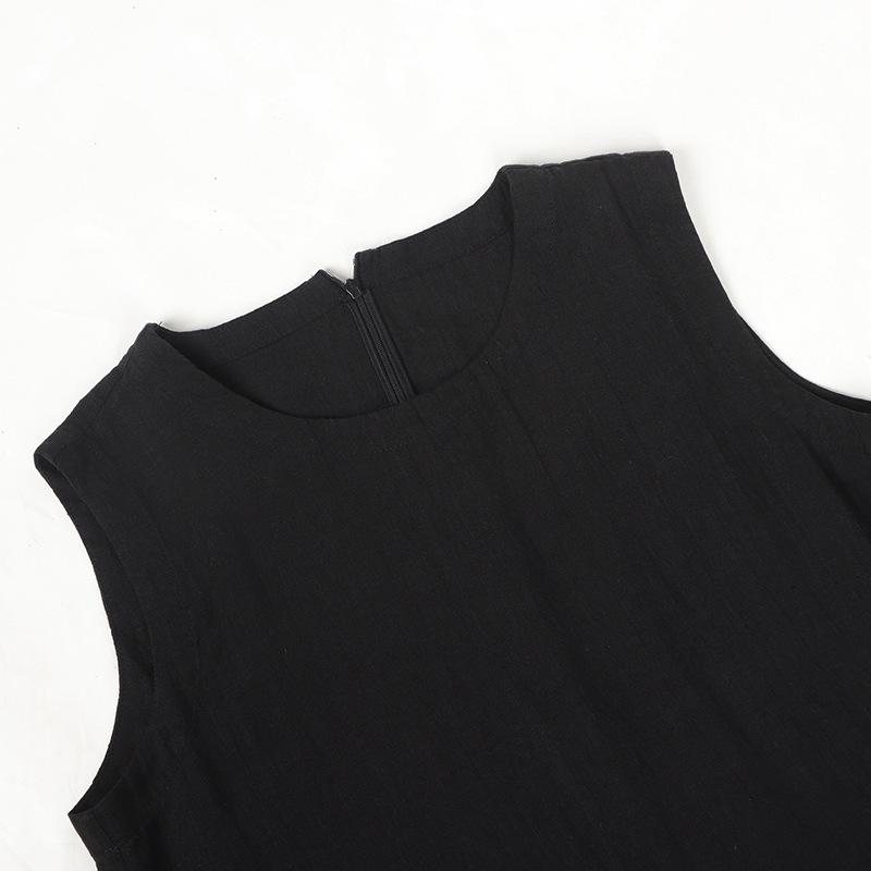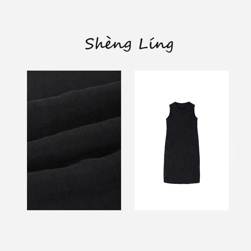 [Falda Hepburn] Falda chaleco de cáñamo sin mangas minimalista adelgazante vestido largo negro moda casual verano