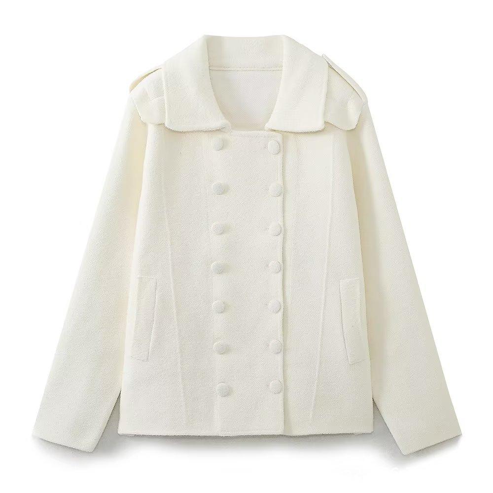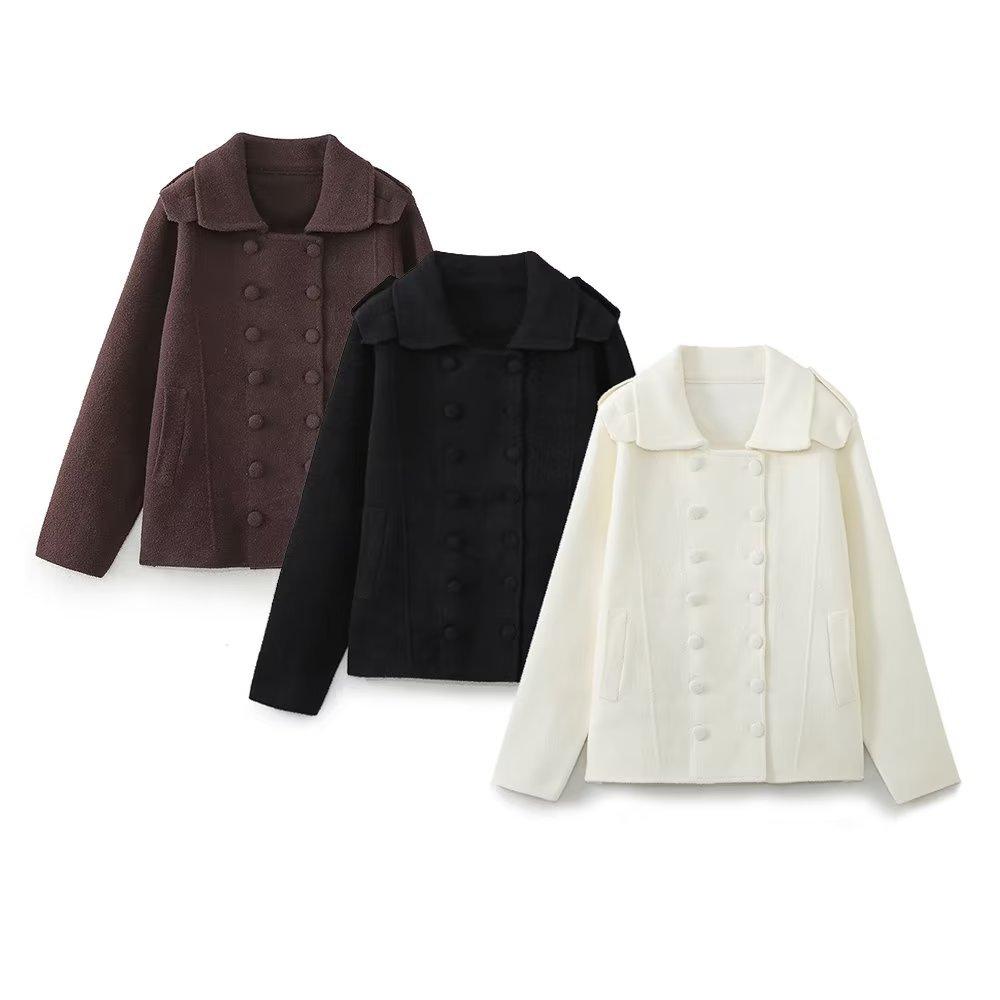 Venta al por mayor transfronteriza Otoño e Invierno 2023 Nuevo Abrigo casual de moda de solapa grande suelto de manga larga con doble botonadura europeo y americano