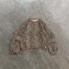 Suéter de moda europea y americana transfronteriza para damas, cuello redondo, manga hombro, rama, leopardo, impresión digital 3D, fábrica de origen