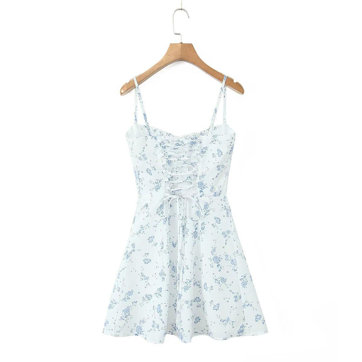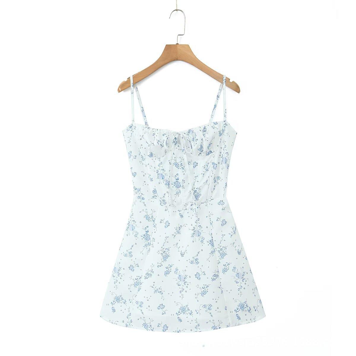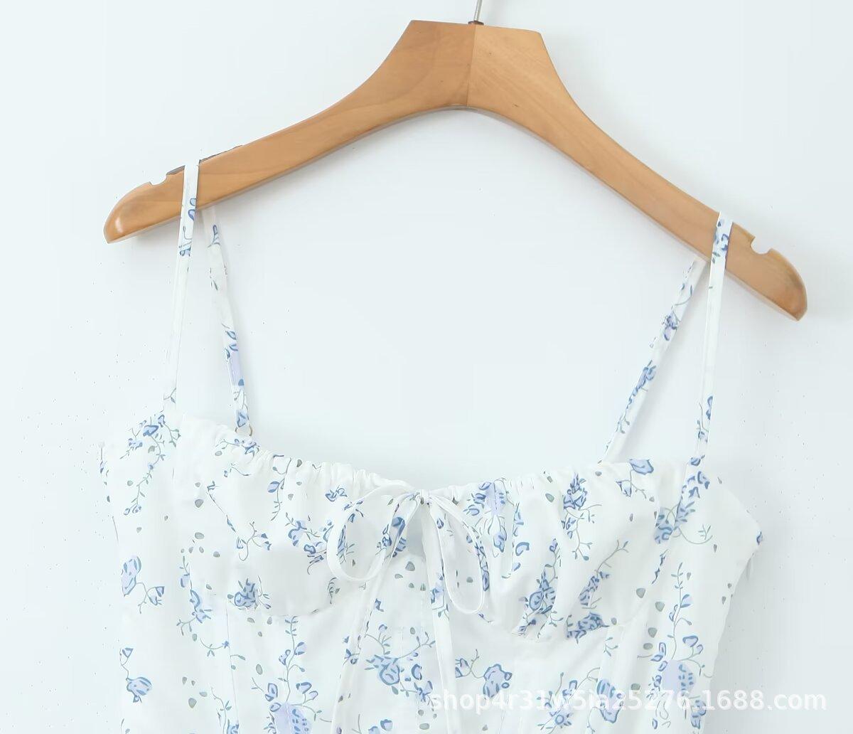 Moda de Verano 2024 Europea y Americana Nuevo Vestido de Tirantes con Ballenas Decorado con Lazo Sexy Francés para Mujer