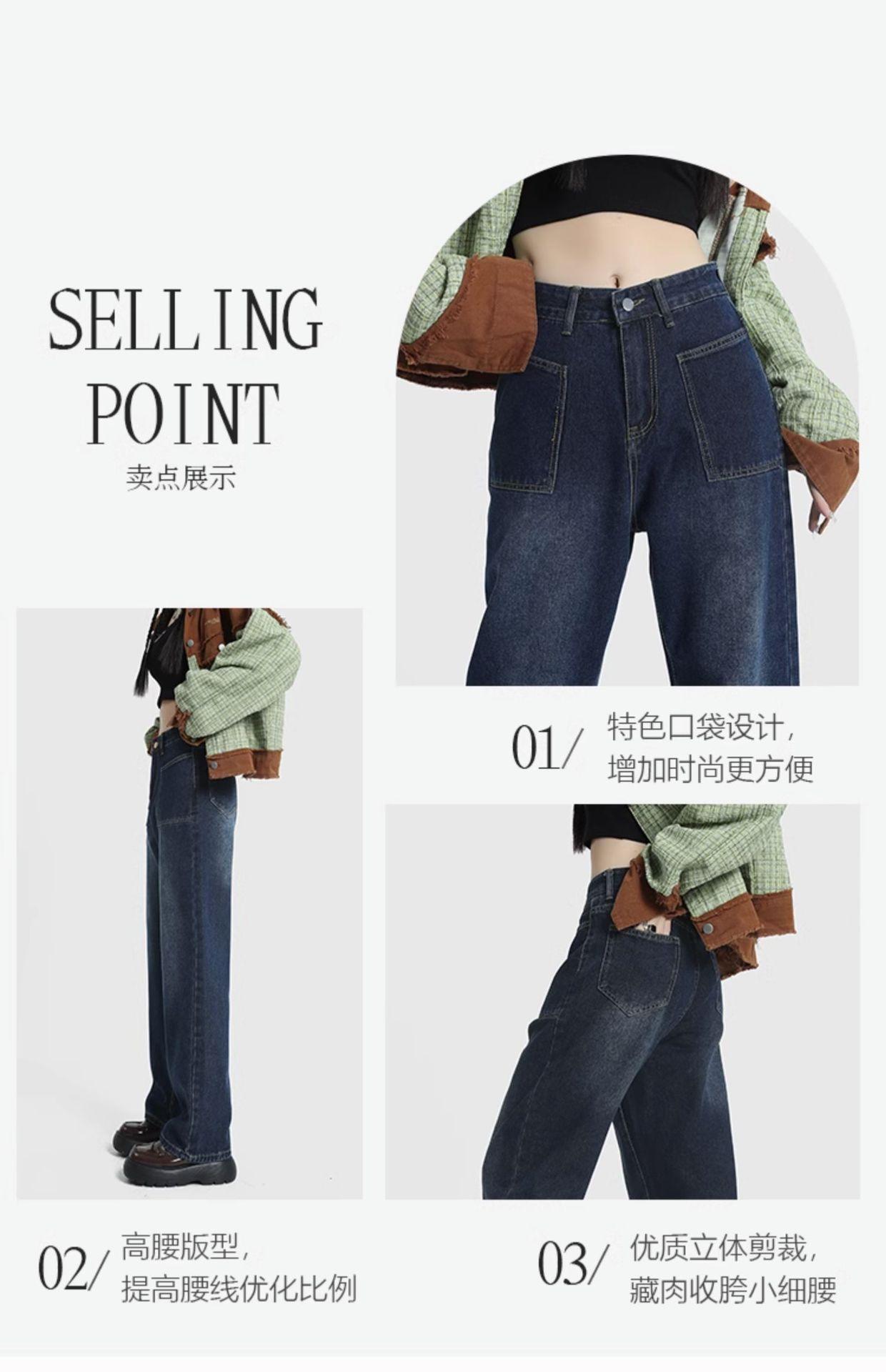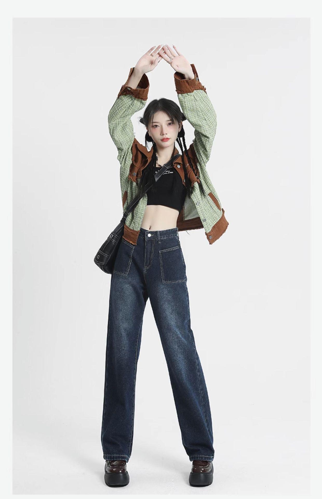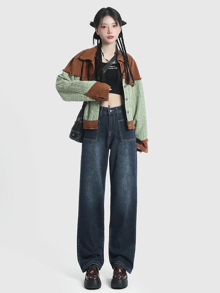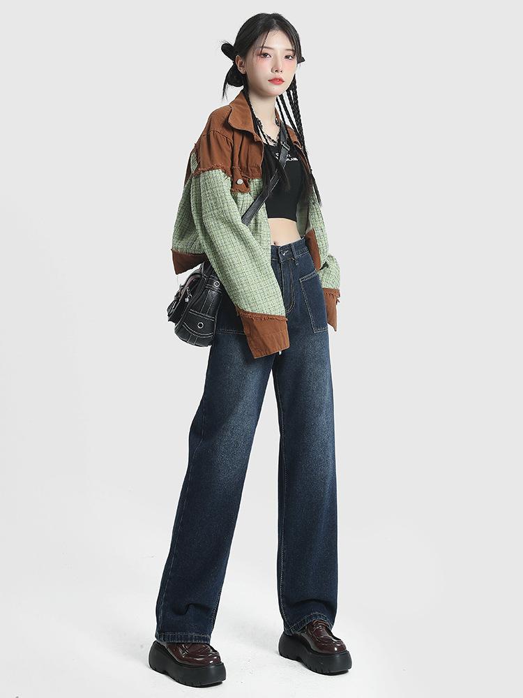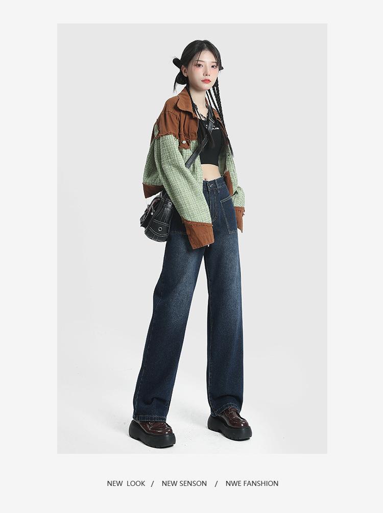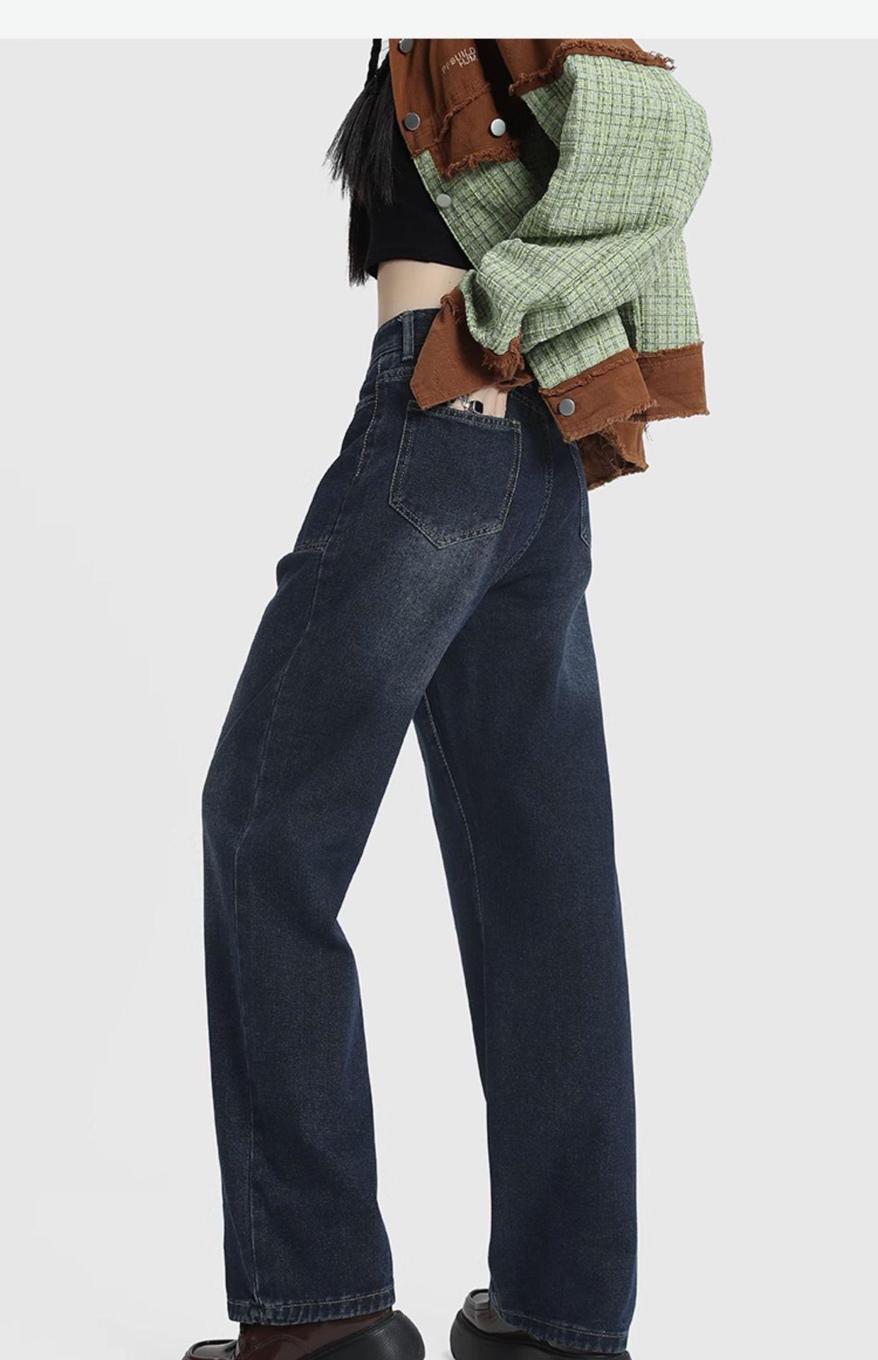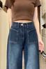 Jeans de Pierna Ancha de Cintura Alta para Mujer Primavera y Verano 2025 Nuevo Diseño Slim Azul Retro Pantalones Rectos Pantalones Largos hasta el Piso