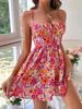Europeo y Americano Transfronterizo 2025 Primavera y Verano Nuevo Vestido Sexy de Tirantes Finos con Nudo de un Hombro y Espalda Descubierta con Estampado Floral