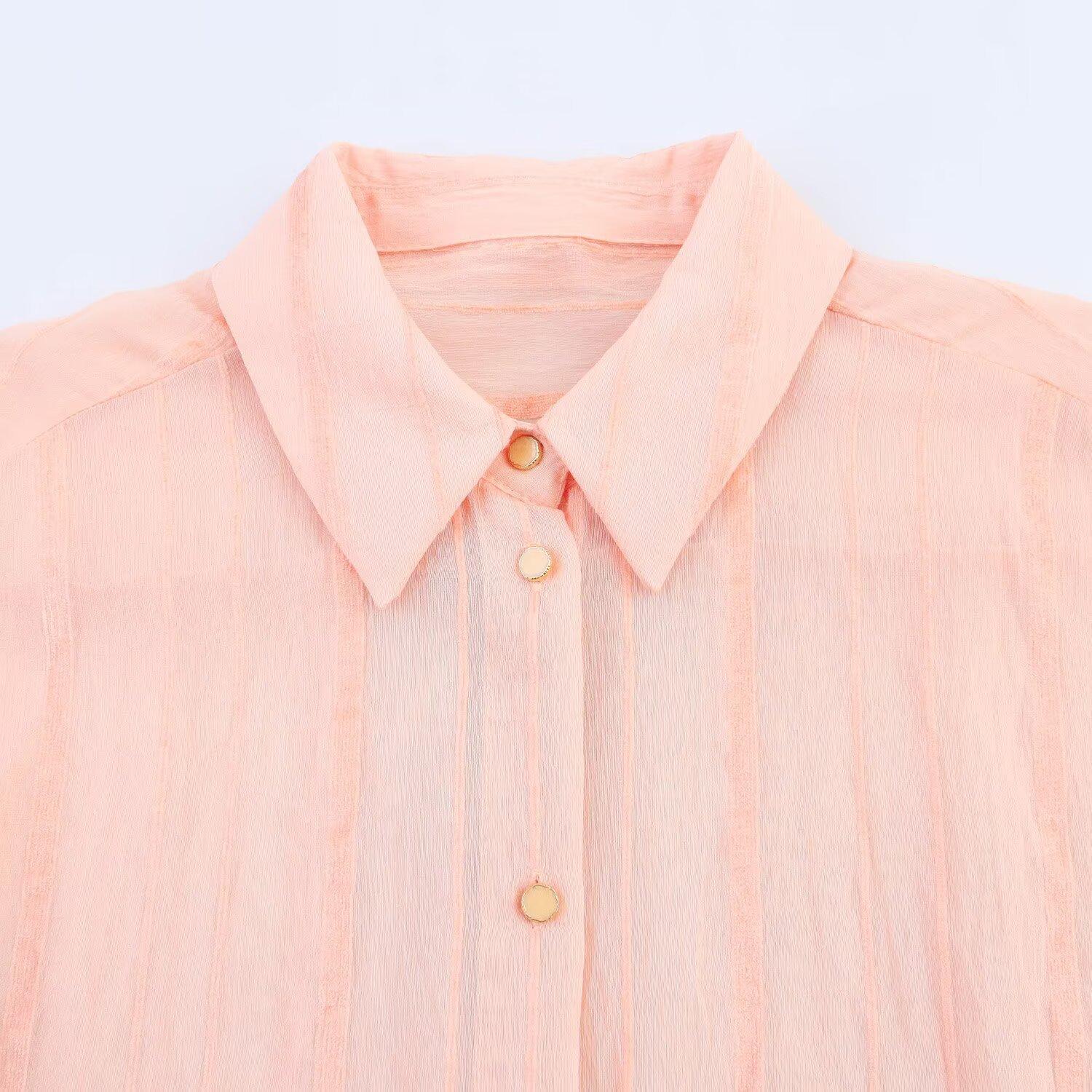 Camisa de manga larga a rayas informal de moda urbana para mujer, estilo transfronterizo europeo y americano, novedad de verano 2025, W025 11505