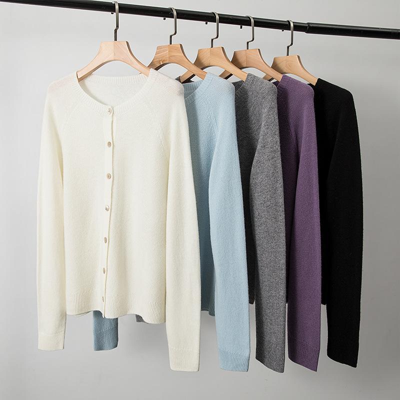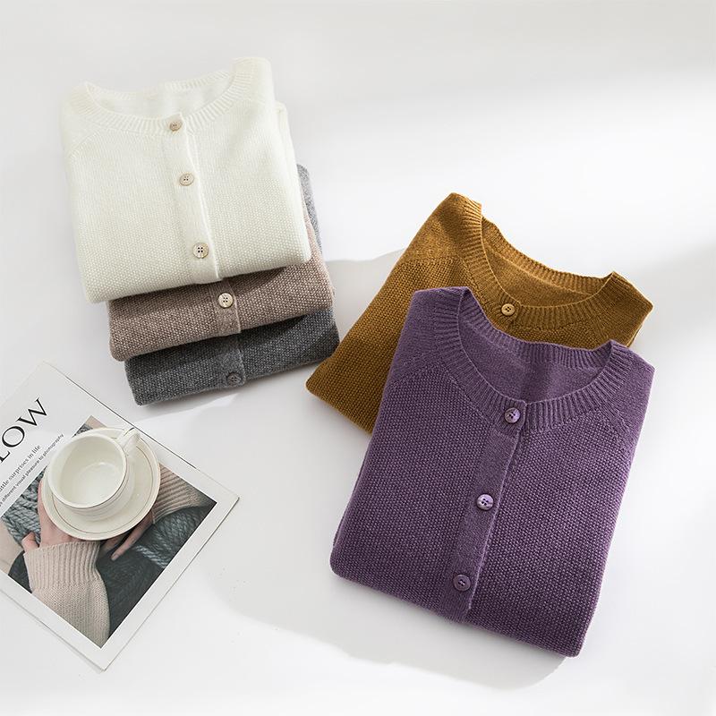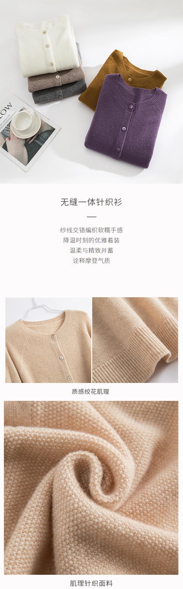 [Hengjia Hj] Suéter de Punto de Cuello Redondo para Otoño e Invierno Cárdigan de Punto para Mujer de Una Pieza Sin Costuras con Botonadura Sencilla 100