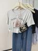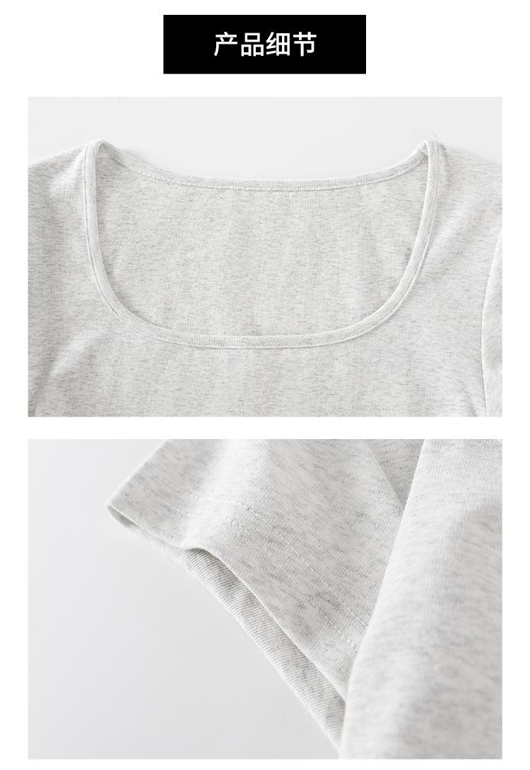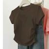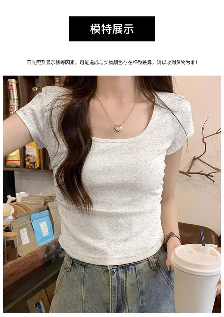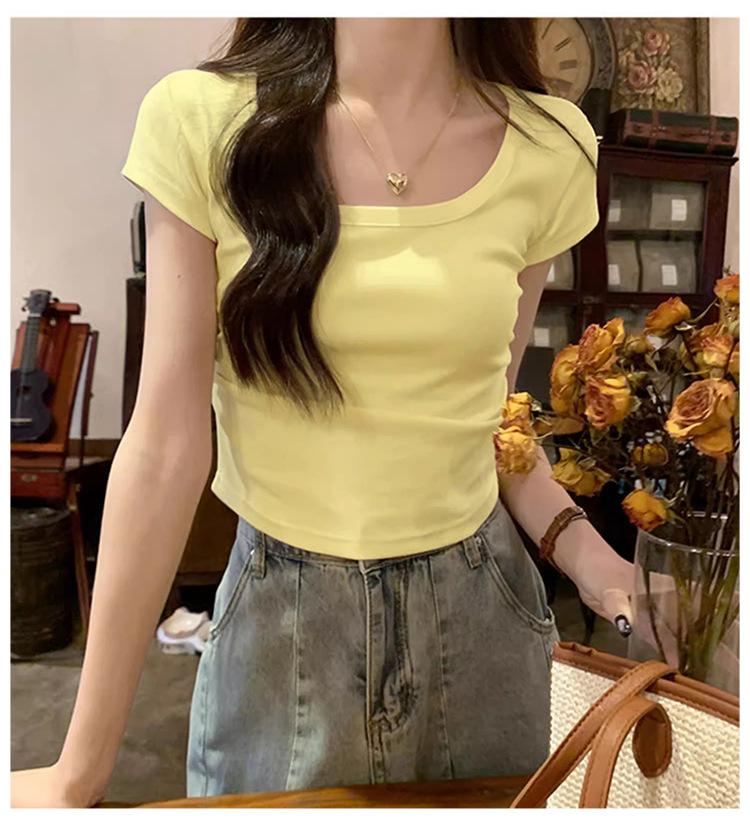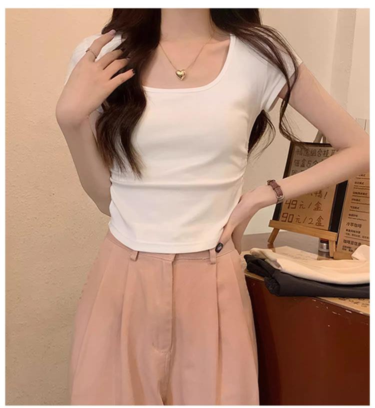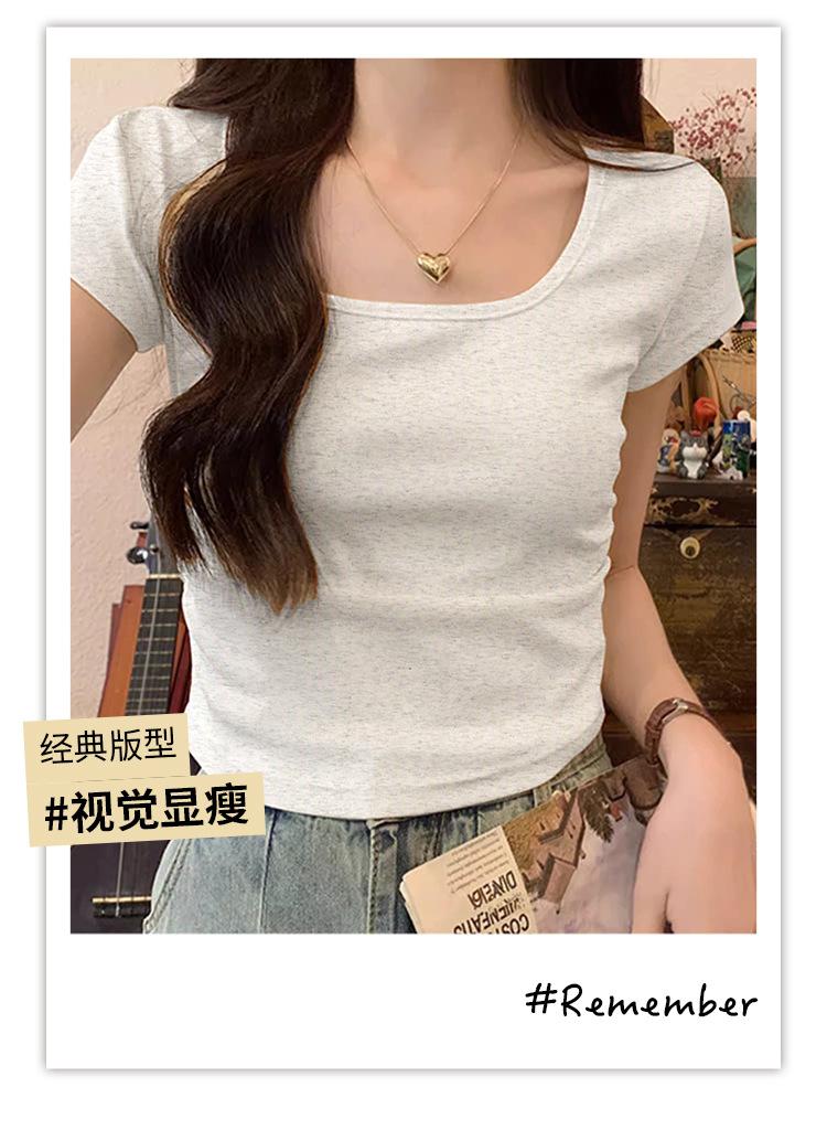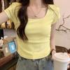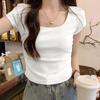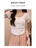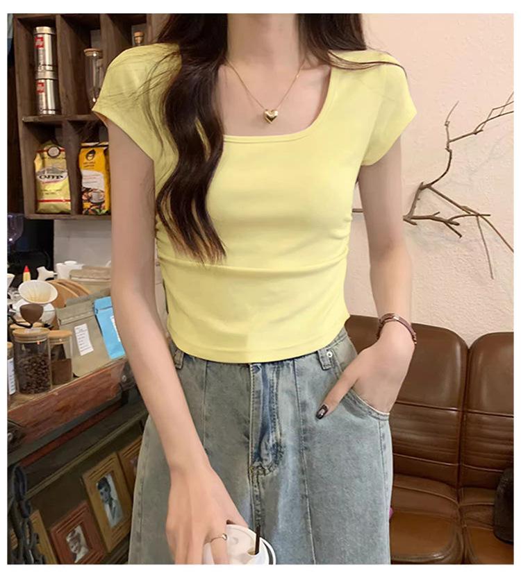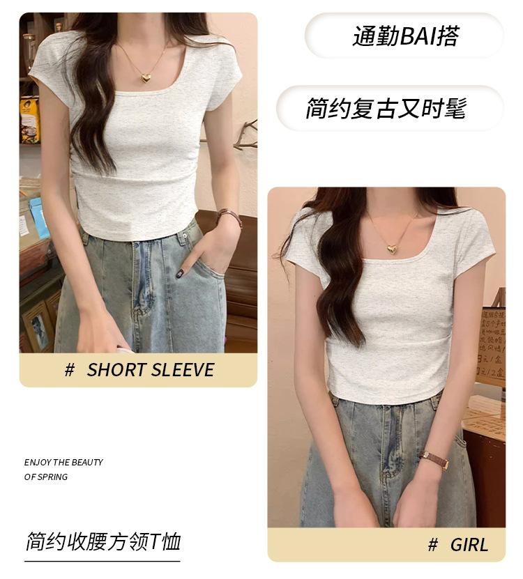 Camiseta de Hombro Derecho Cuello Cuadrado Manga Corta para Mujer Verano 2025 Nuevo Diseño Nicho Look Adelgazante Top Corto Plisado