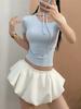 Deseo Puro Chica Caliente Color Sólido Halter Cuello Cordones Manga Corta Camiseta Mujer Verano 2025 Nuevo Estilo Hombro Inclinado Slim Top Corto