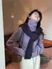 Suéter de Cuello Alto Morado Estilo Coreano para Mujer Otoño e Invierno Holgado Grueso Ropa Exterior Suéter Tejido Pequeño Top