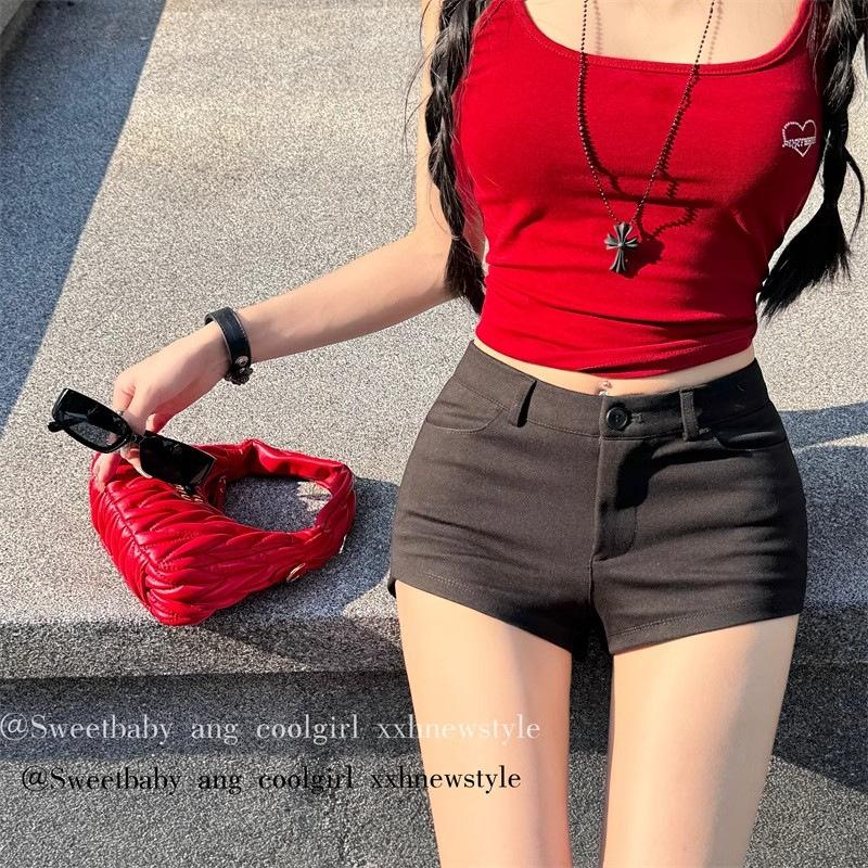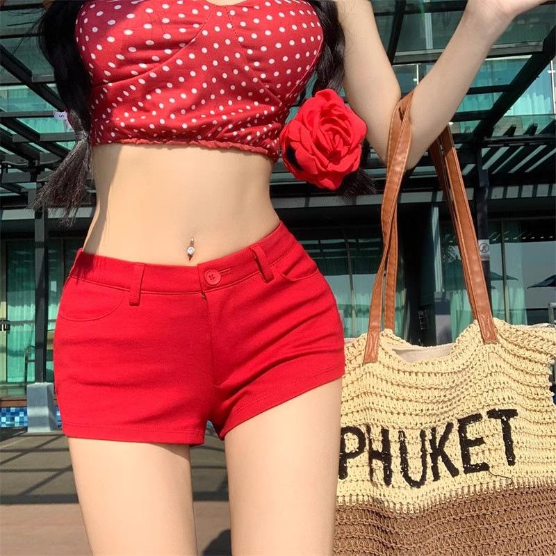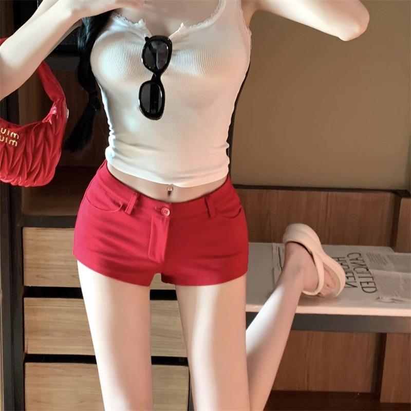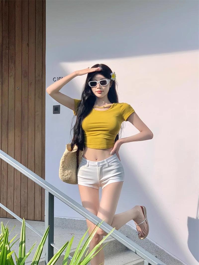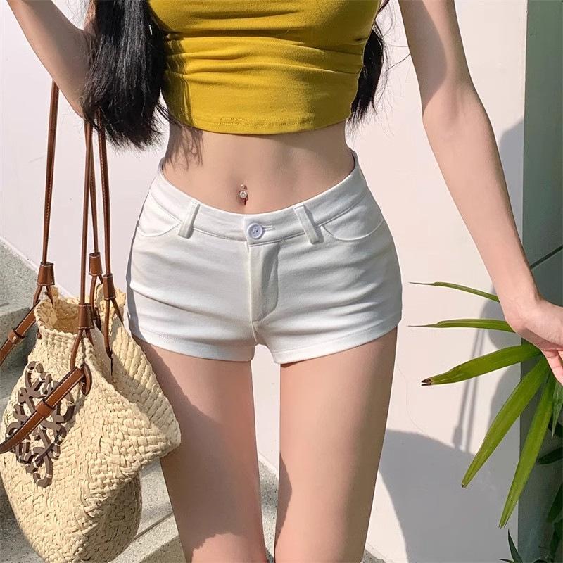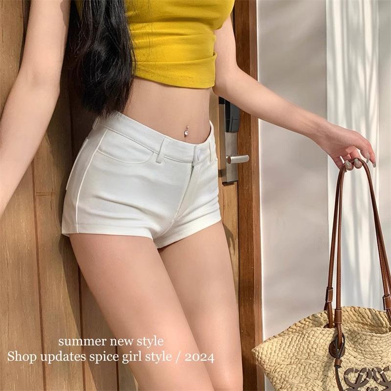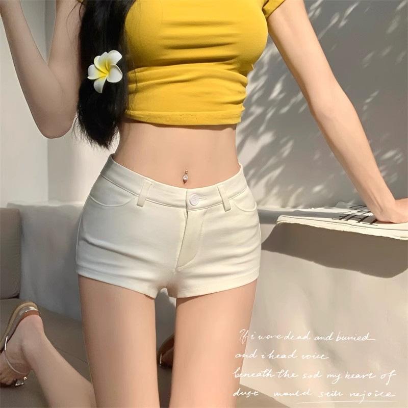 Super Shorts Casuales Ajustados Blancos para Sexys en Verano, Pantalones Rectos Ajustados Versátiles, Hot Pants A-line Ajustados de Cintura Baja
