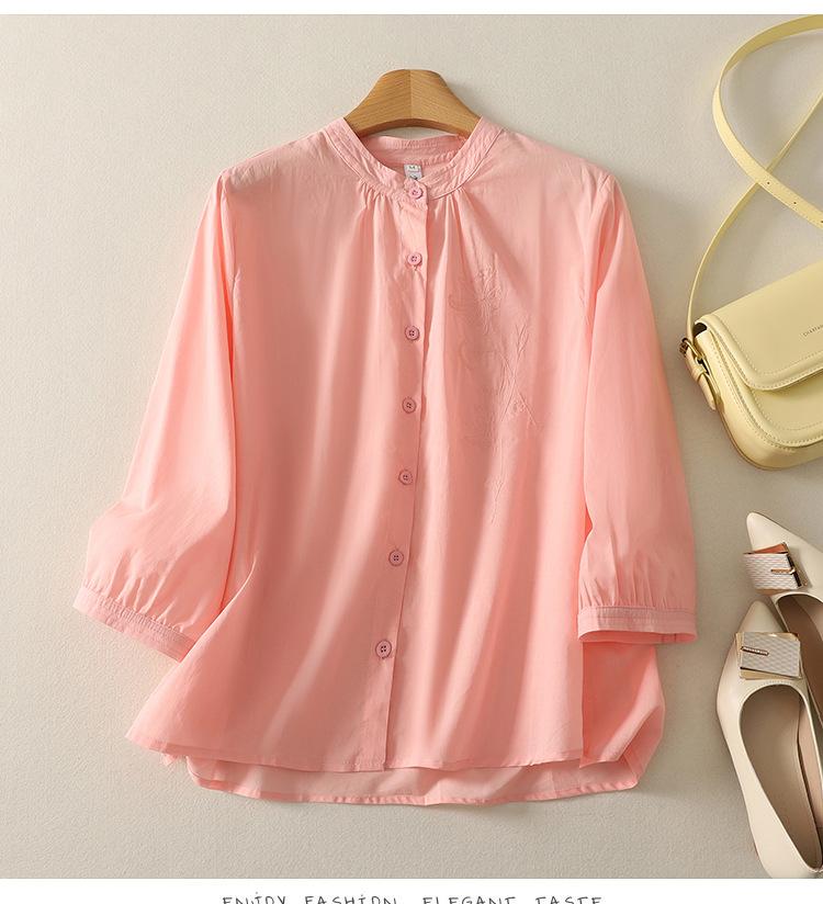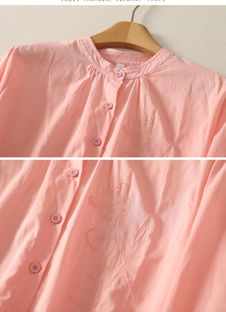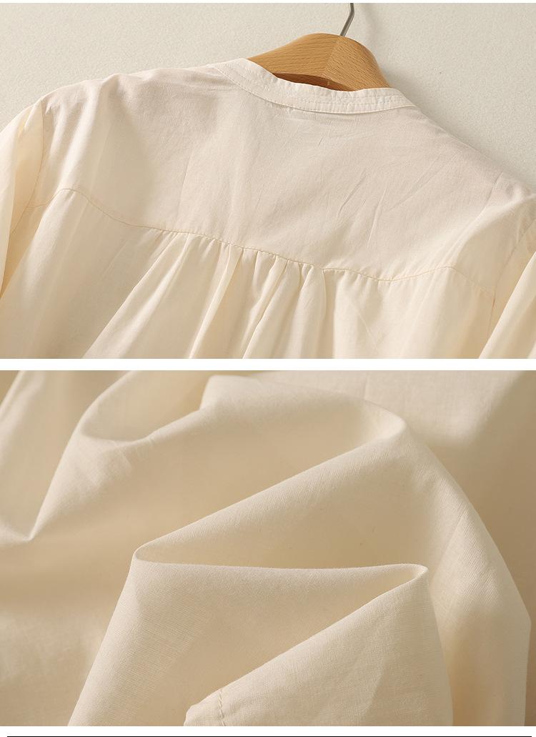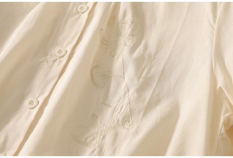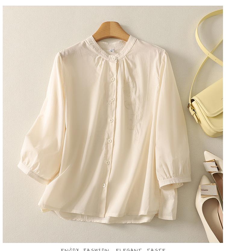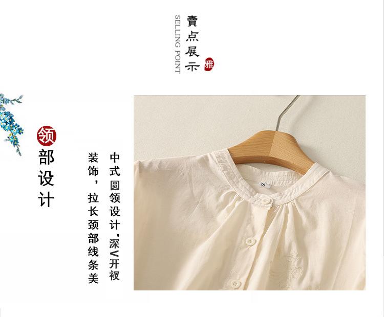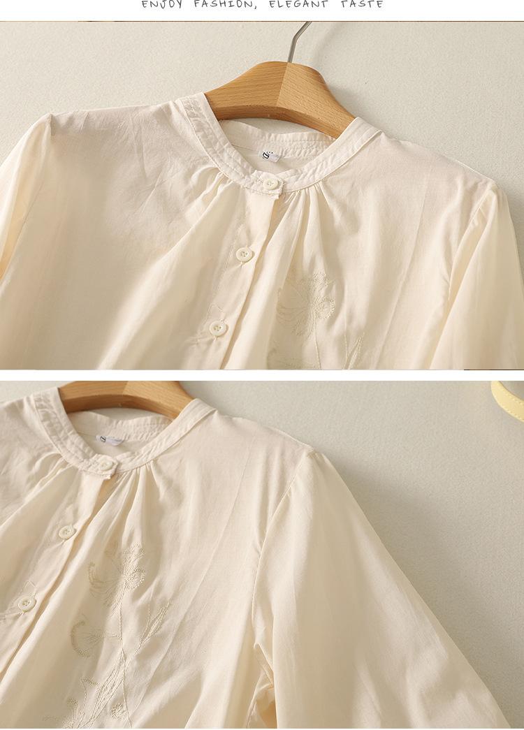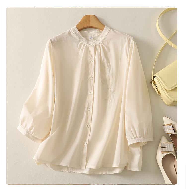 Primavera/Verano 2025 Nueva Camisa de Algodón de Cuello Redondo Bordada Blusa Casual Holgada Top Elegante Artístico para Mujer