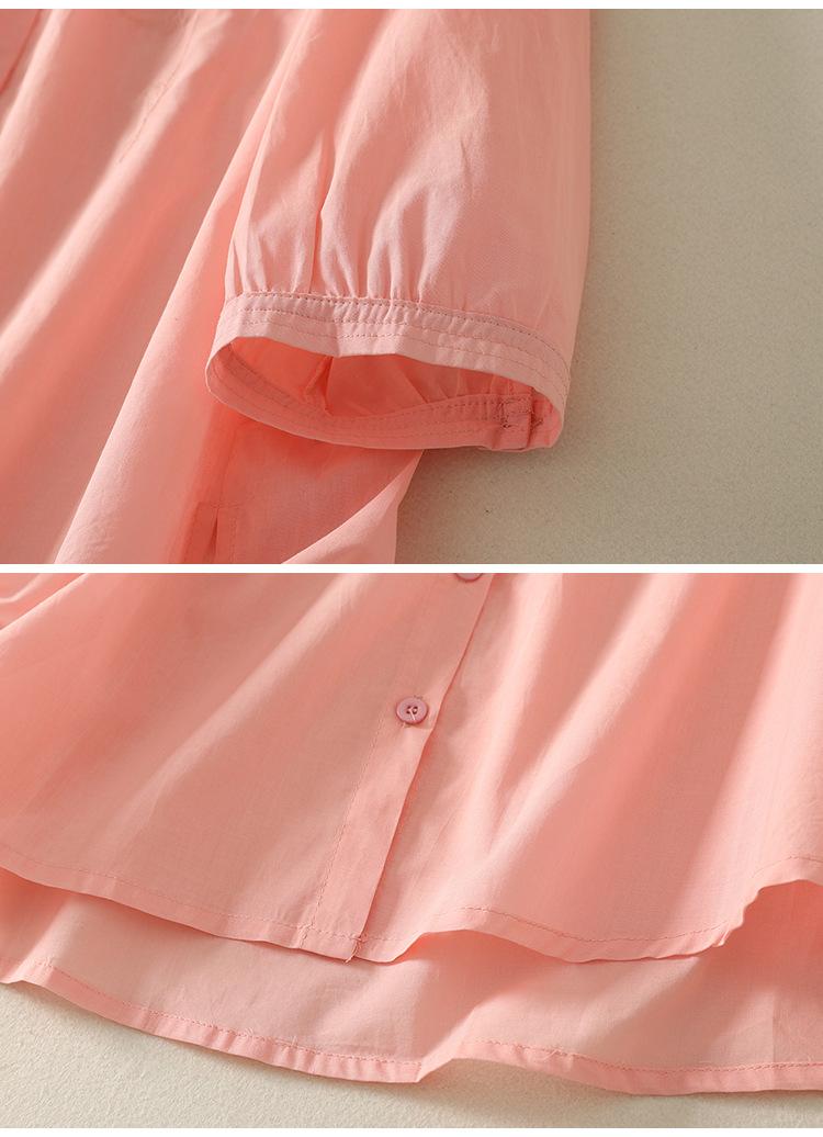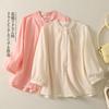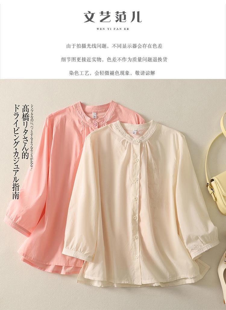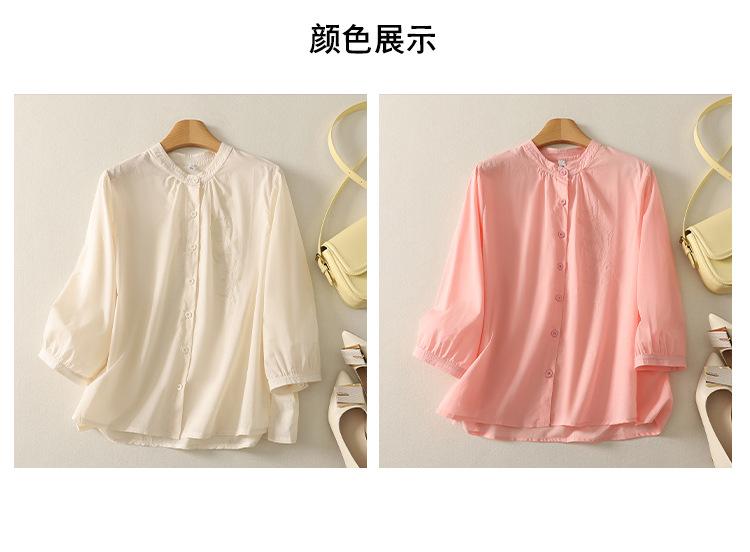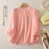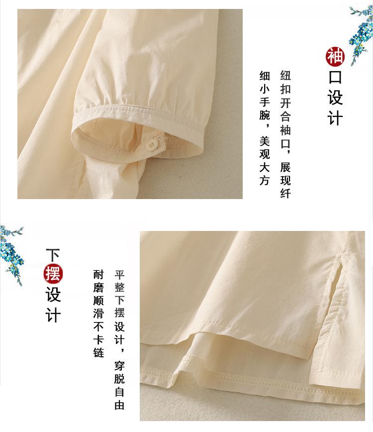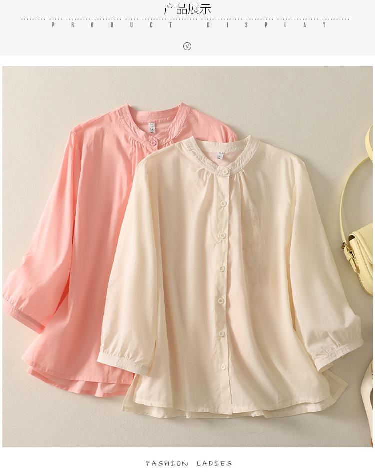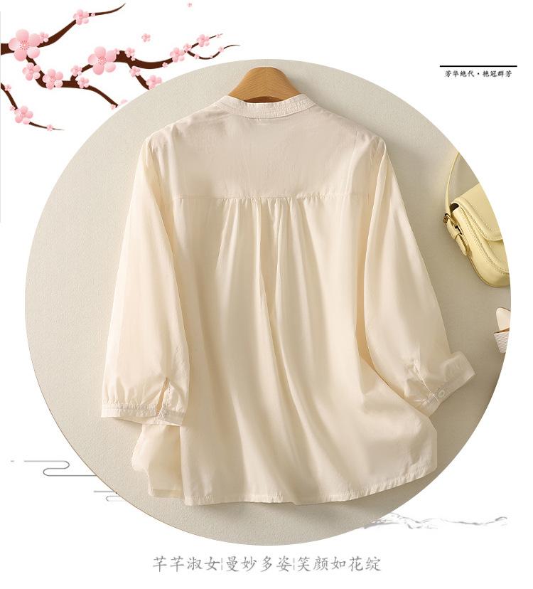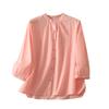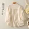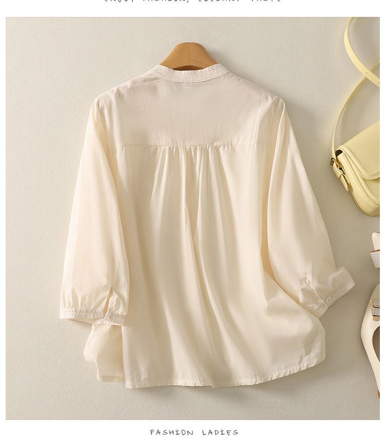 Primavera/Verano 2025 Nueva Camisa de Algodón de Cuello Redondo Bordada Blusa Casual Holgada Top Elegante Artístico para Mujer