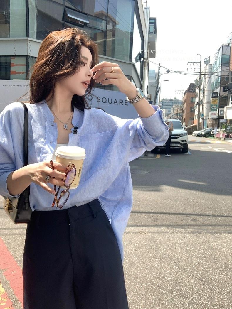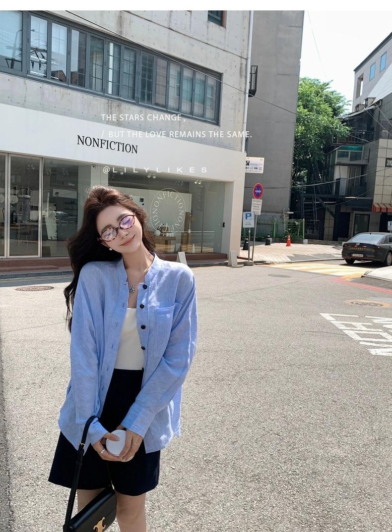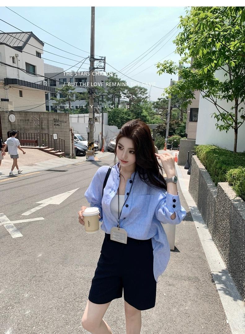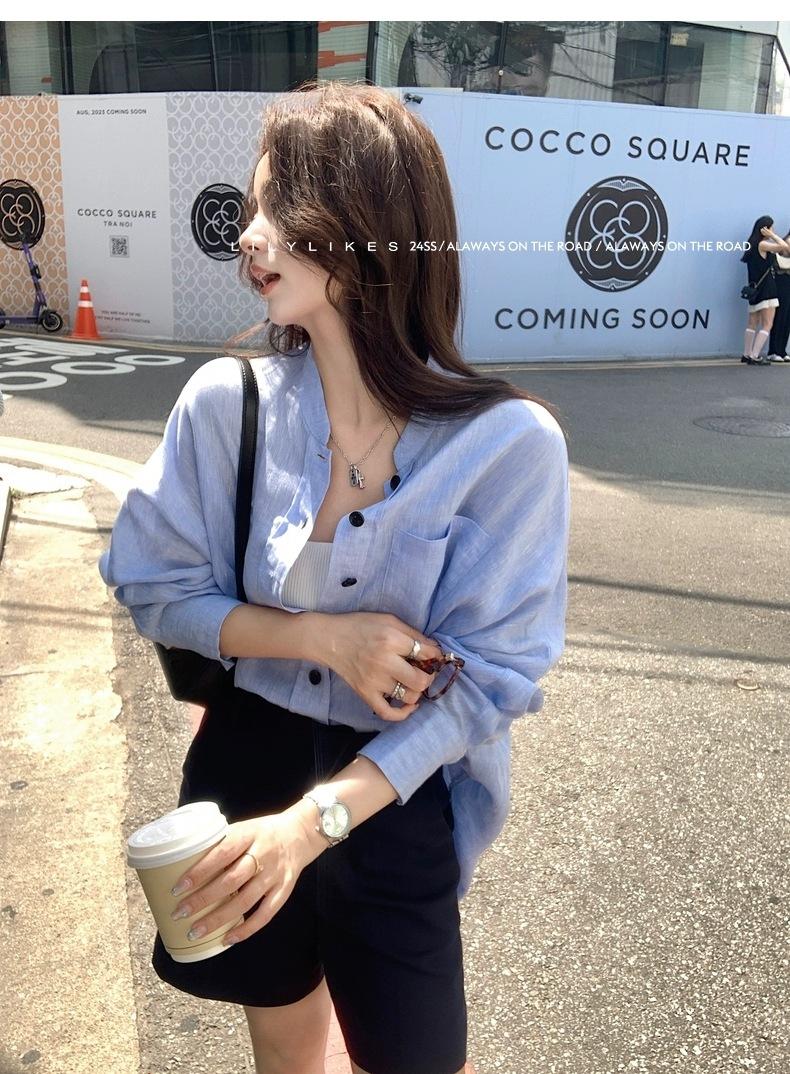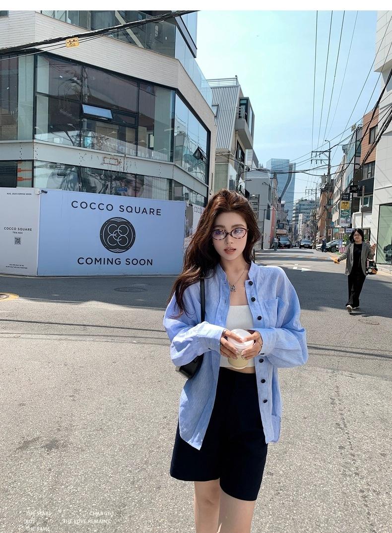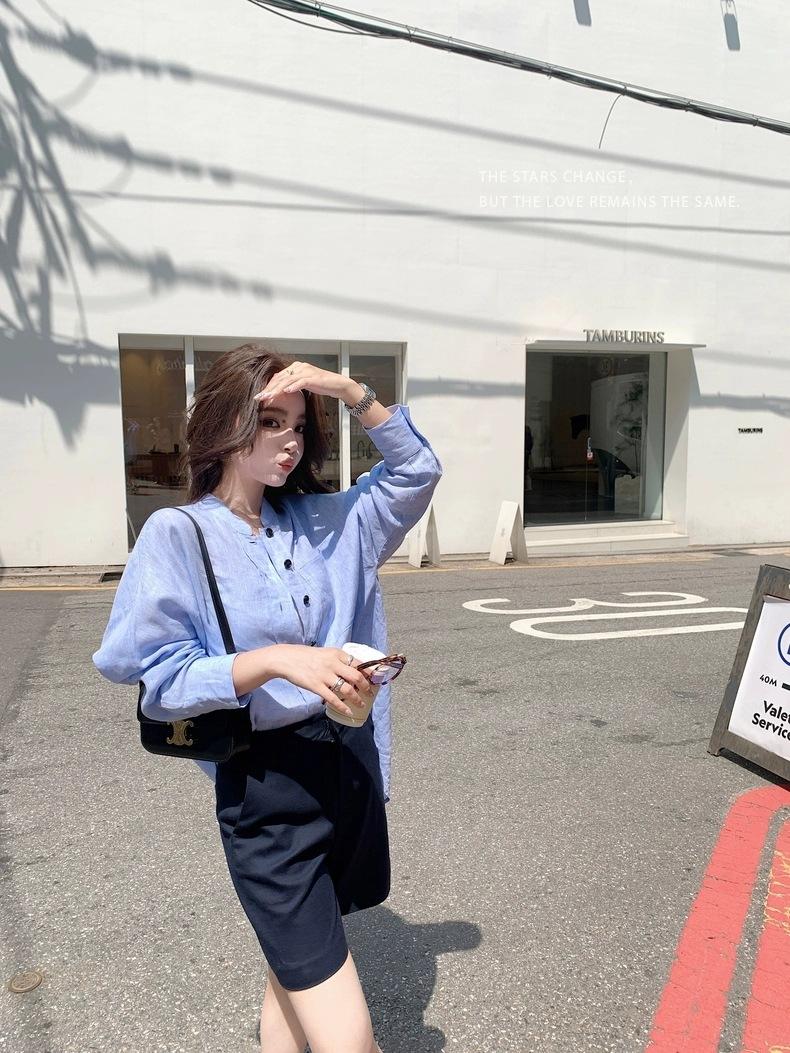 En Stock Verano 2025 Nuevo Coreano Dongdaemun Estilo Sal Fresco Transpirable Bloque de Color Color Sólido Camisa Top de Manga Larga