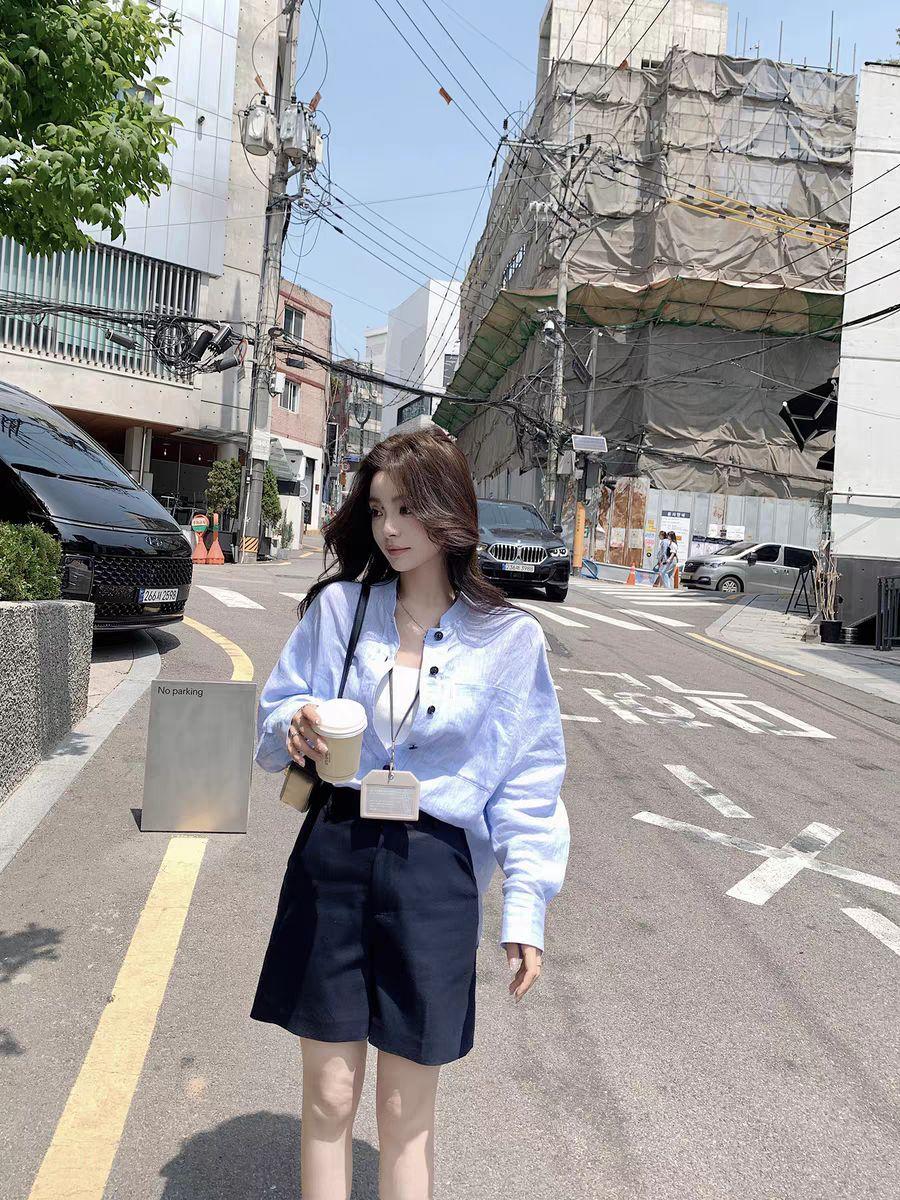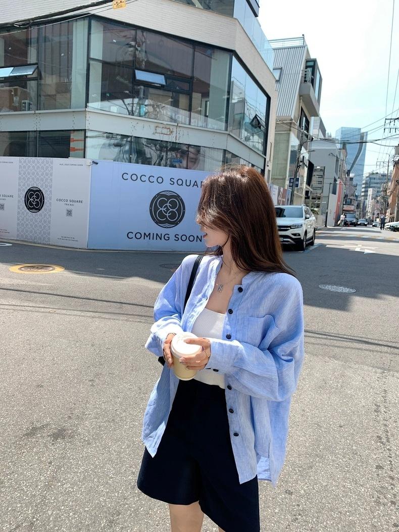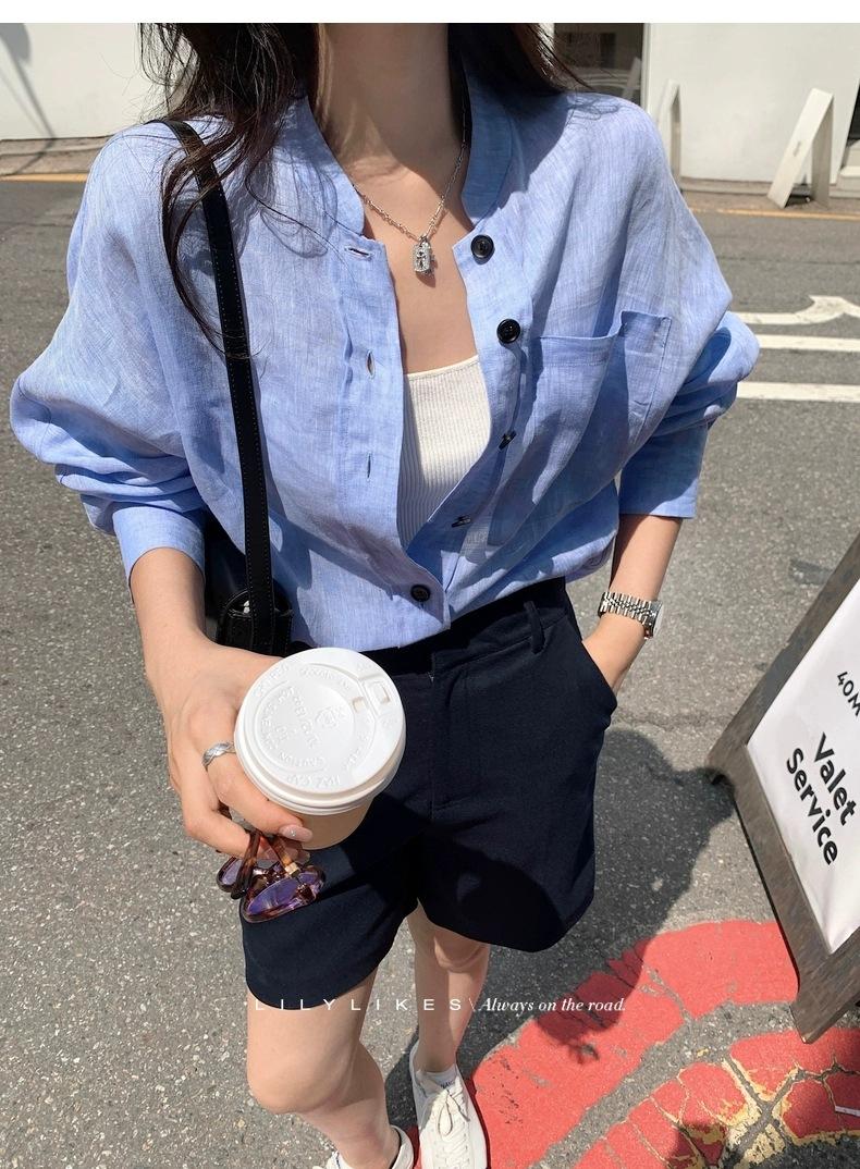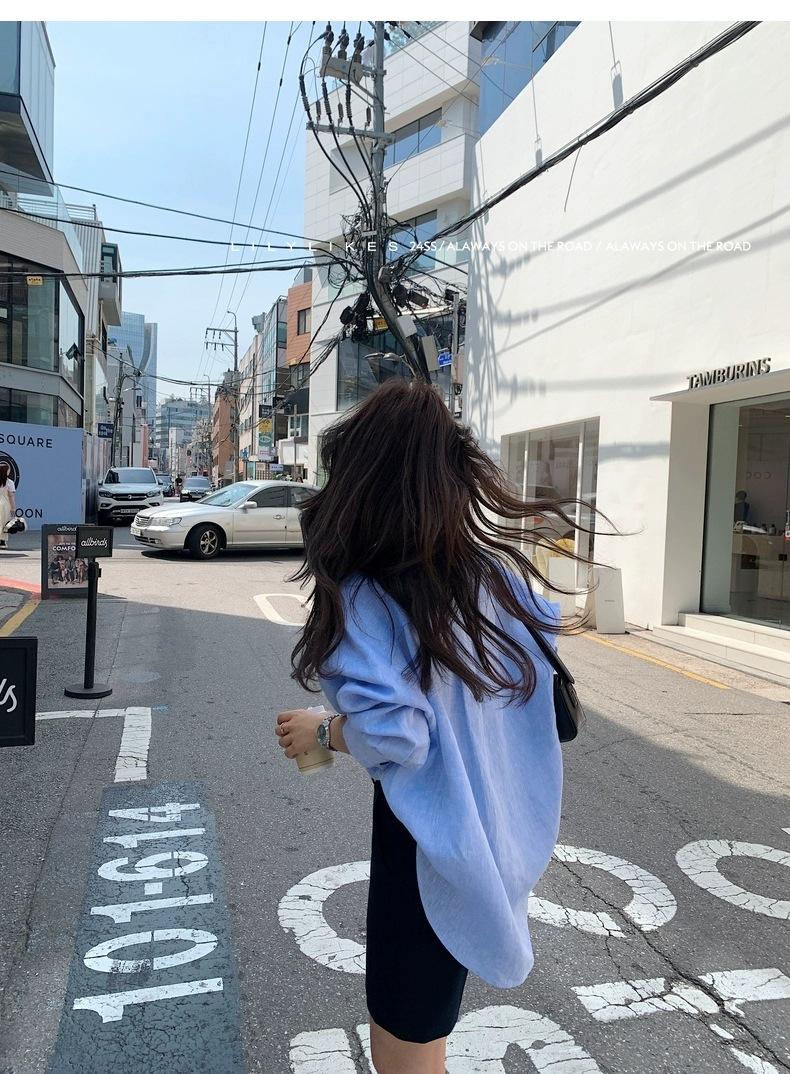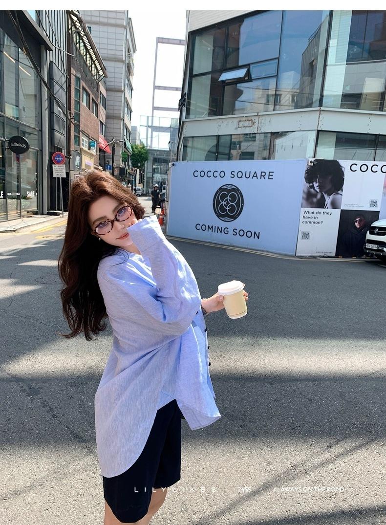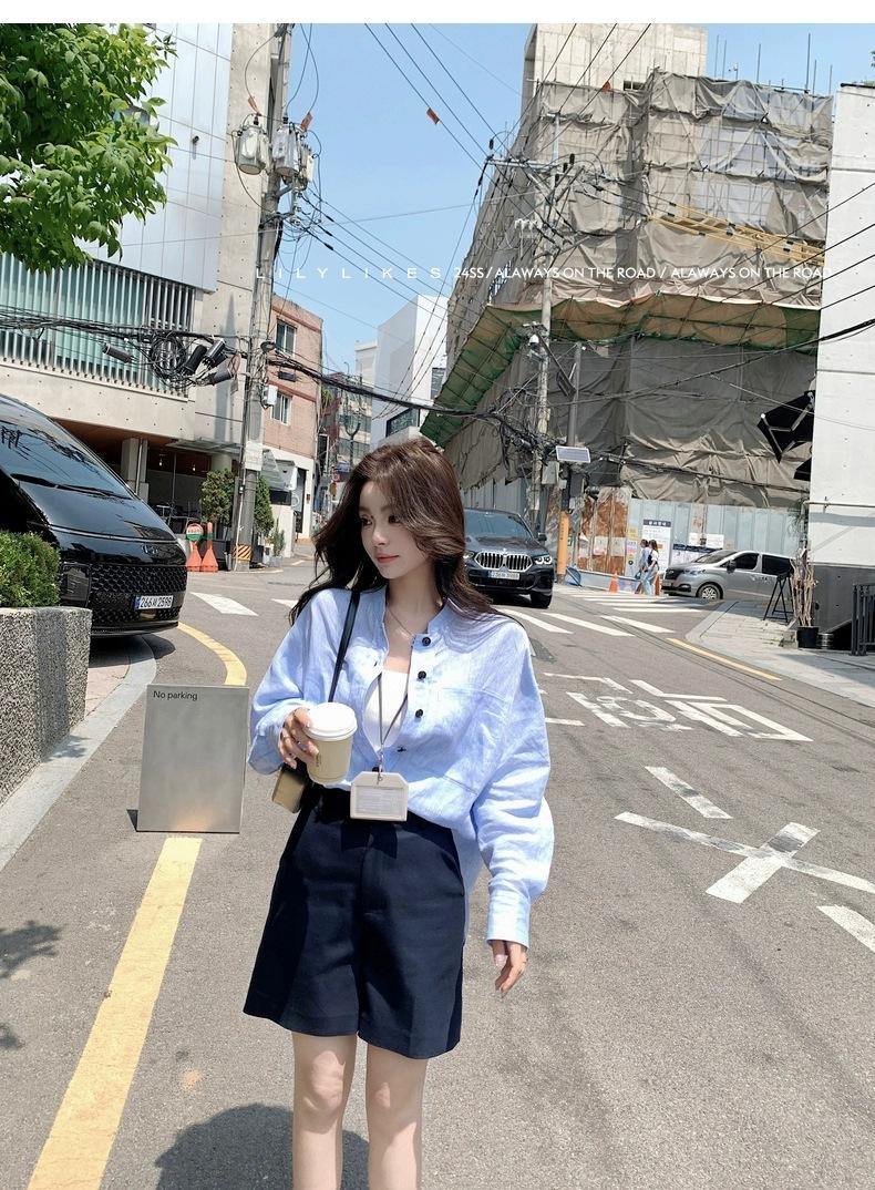 En Stock Verano 2025 Nuevo Coreano Dongdaemun Estilo Sal Fresco Transpirable Bloque de Color Color Sólido Camisa Top de Manga Larga