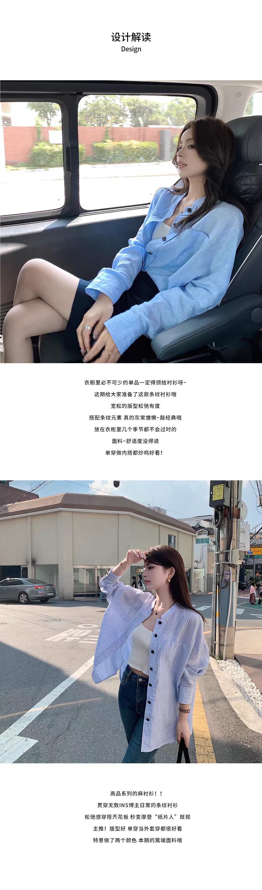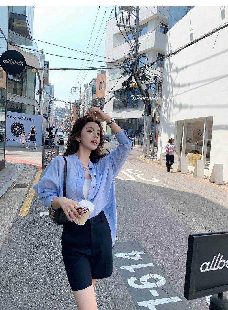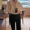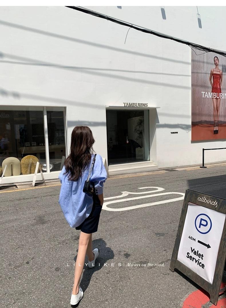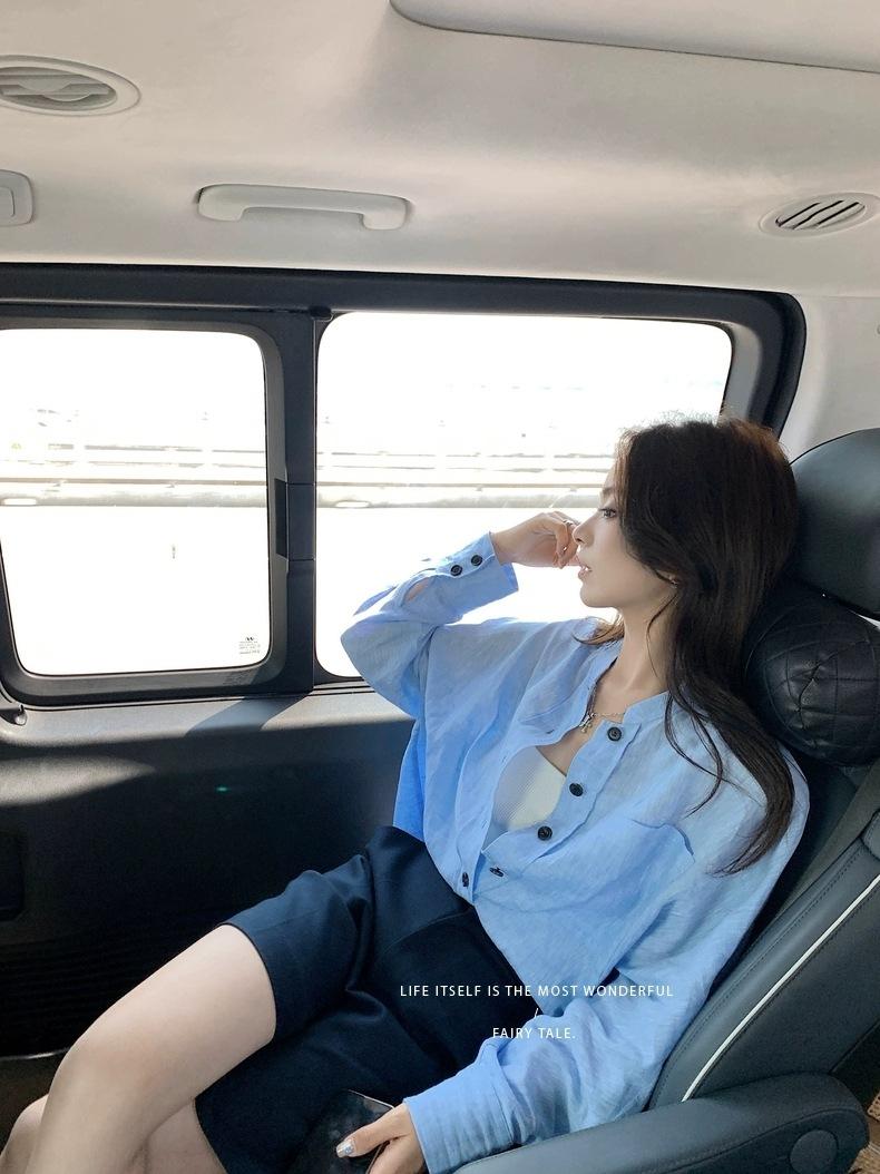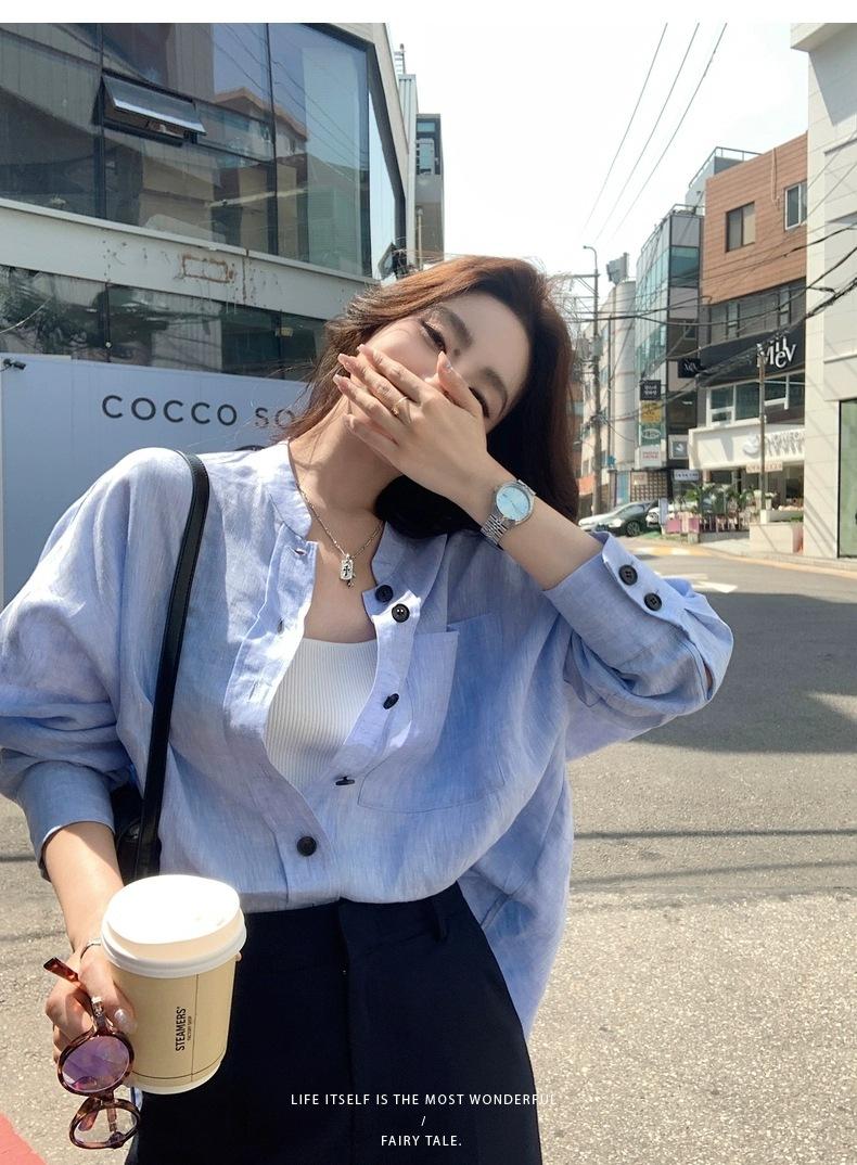 En Stock Verano 2025 Nuevo Coreano Dongdaemun Estilo Sal Fresco Transpirable Bloque de Color Color Sólido Camisa Top de Manga Larga